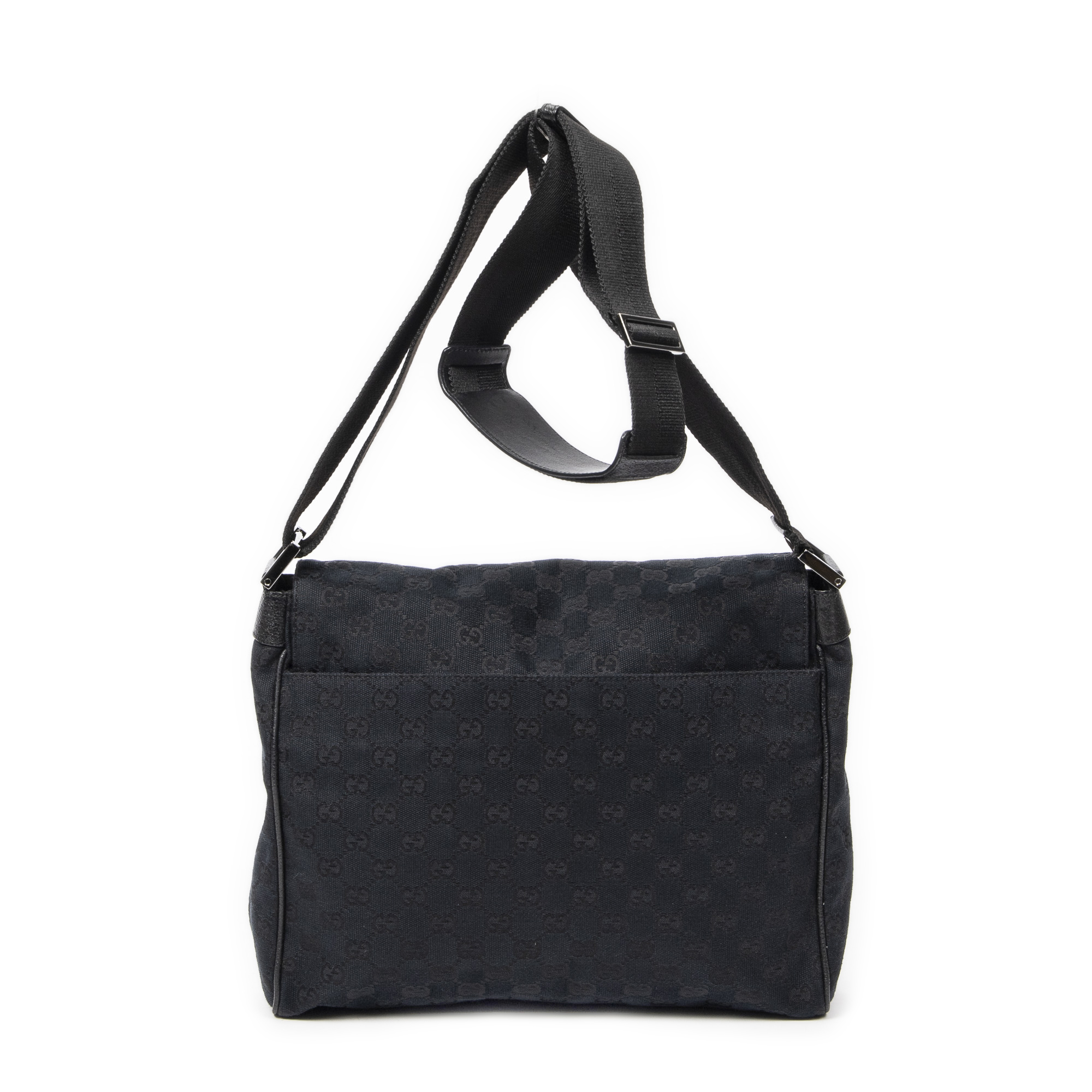 Gucci Sac à bandoulière Flap Messenger en Noir et Argent. Le produit est en Parfait état (AA).
