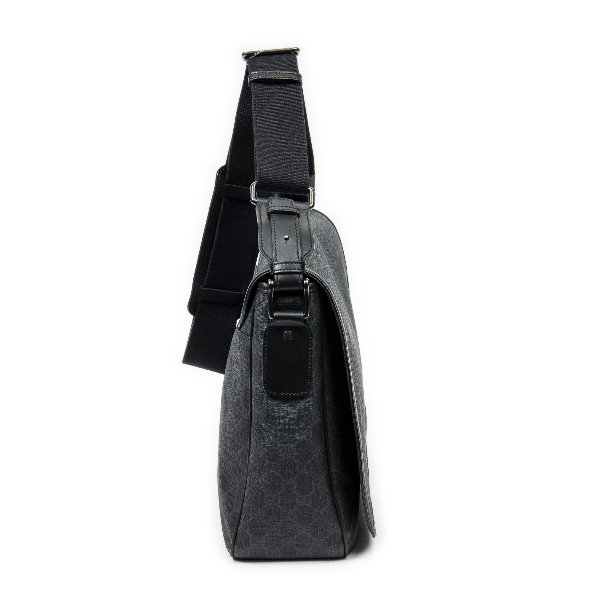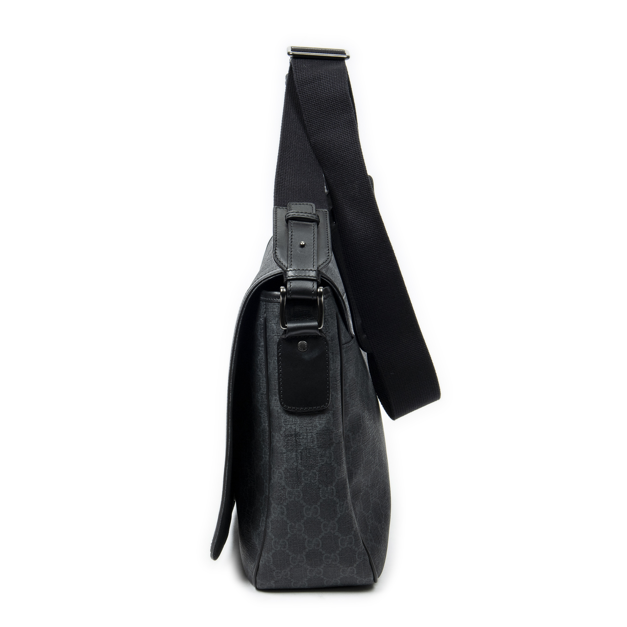Gucci Sac à bandoulière Flap Messenger en Noir et Argent. Le produit est en Excellent état (A).