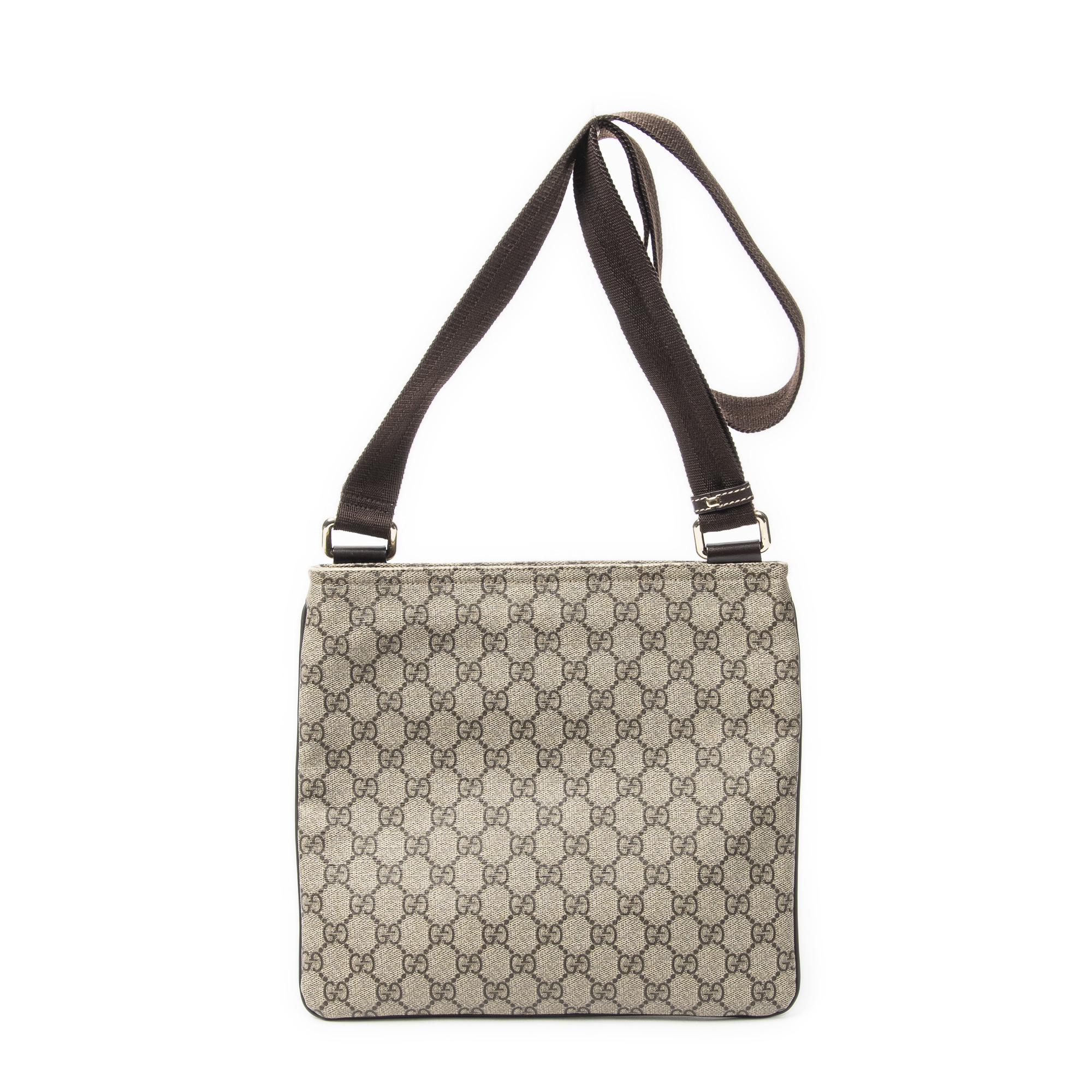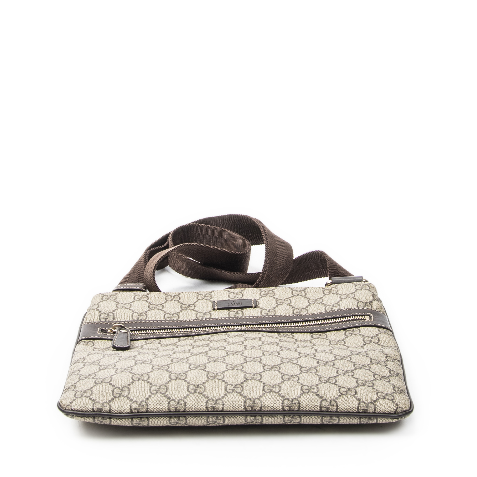 Gucci Sac à bandoulière Front Pocket Messenger en Beige/Marron et Gold. Le produit est en Excellent état (A).