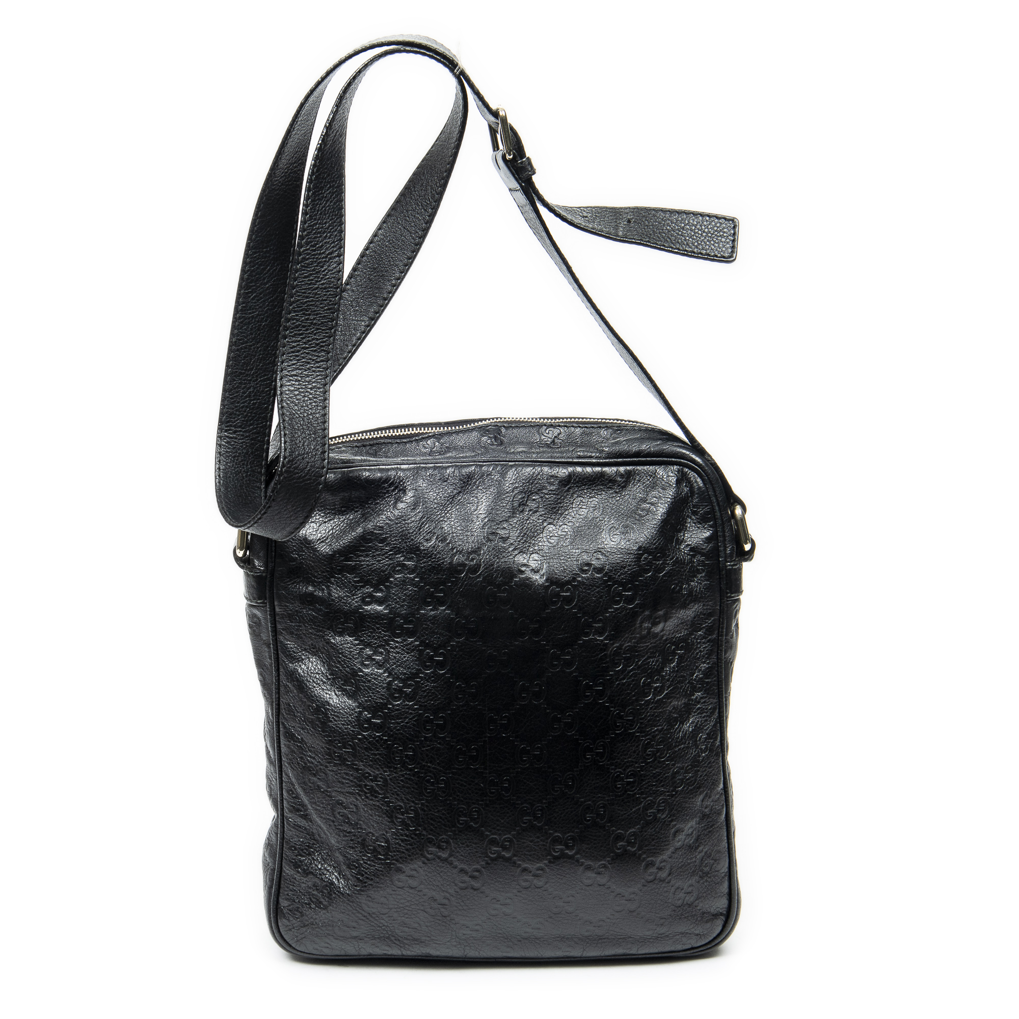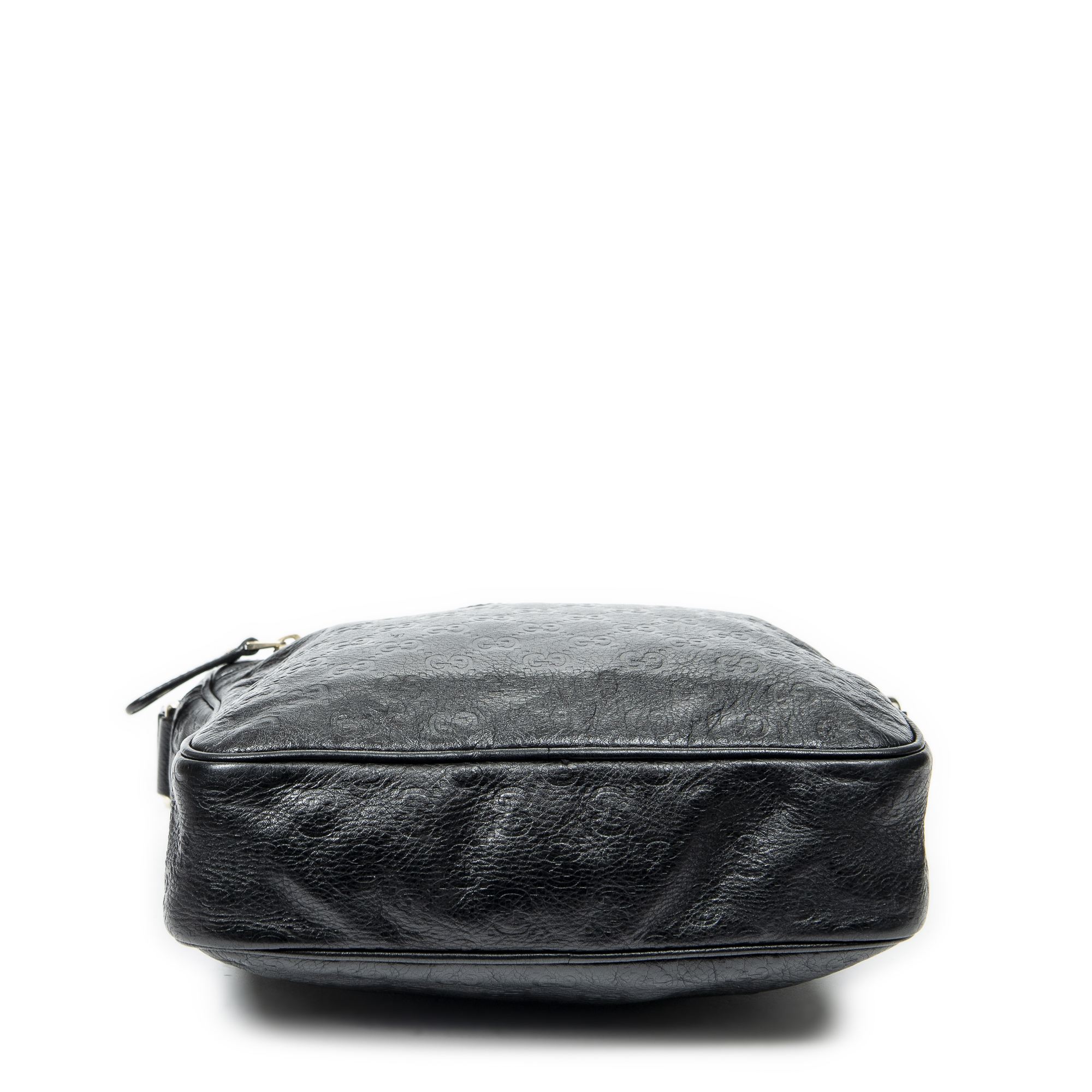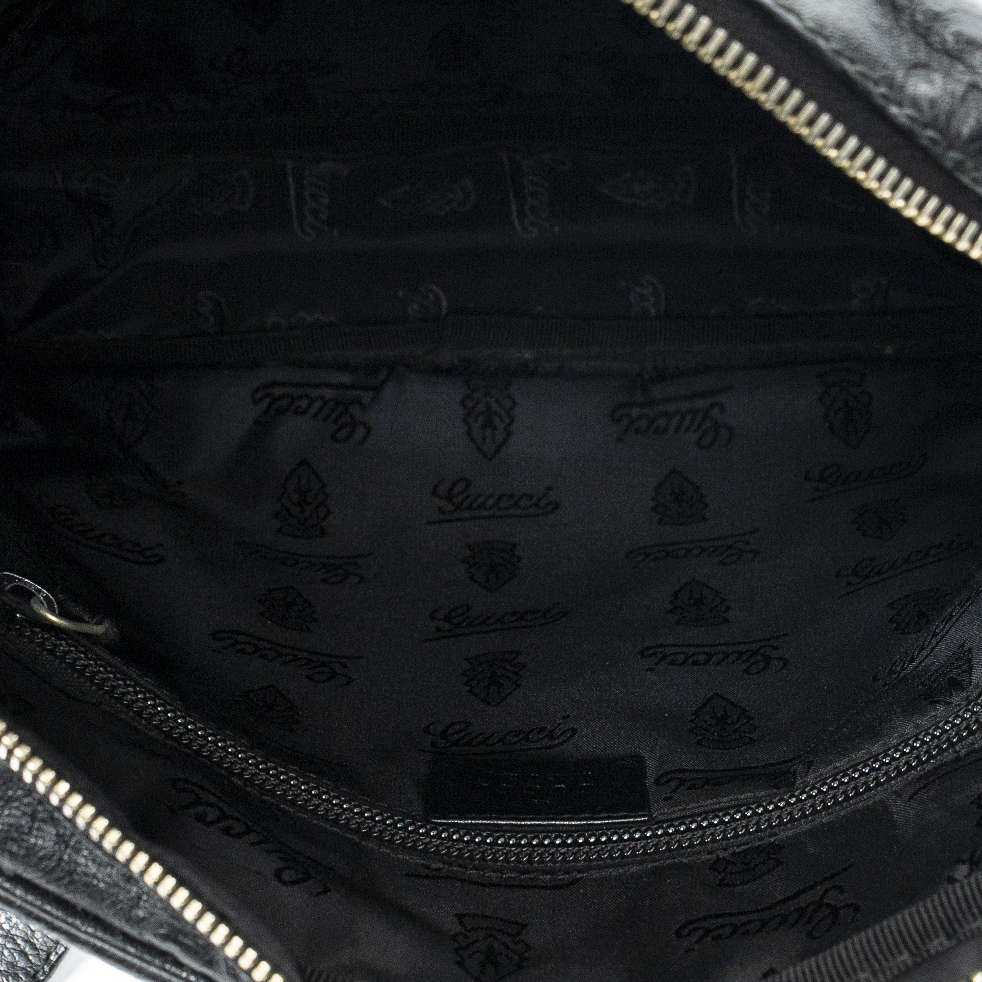 Gucci Sac à bandoulière Front Zip Messenger en Black et Gold. Le produit est en Excellent état (A).
