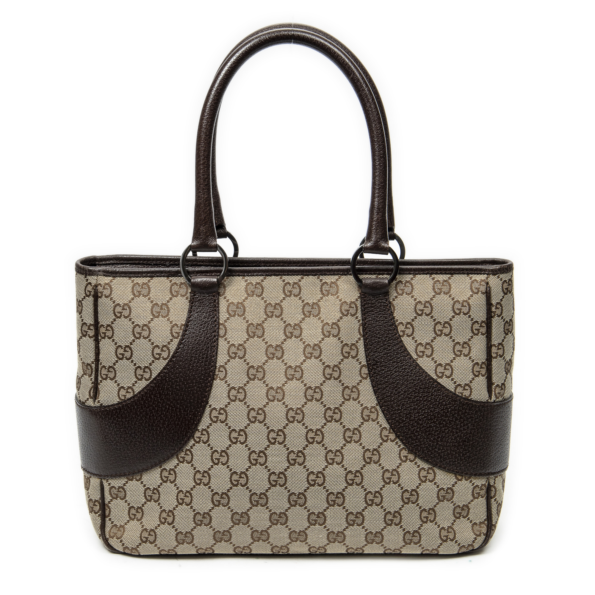Gucci Sac à bandoulière Jacquard Tote en Beige et Argent. Le produit est en Excellent état (A).