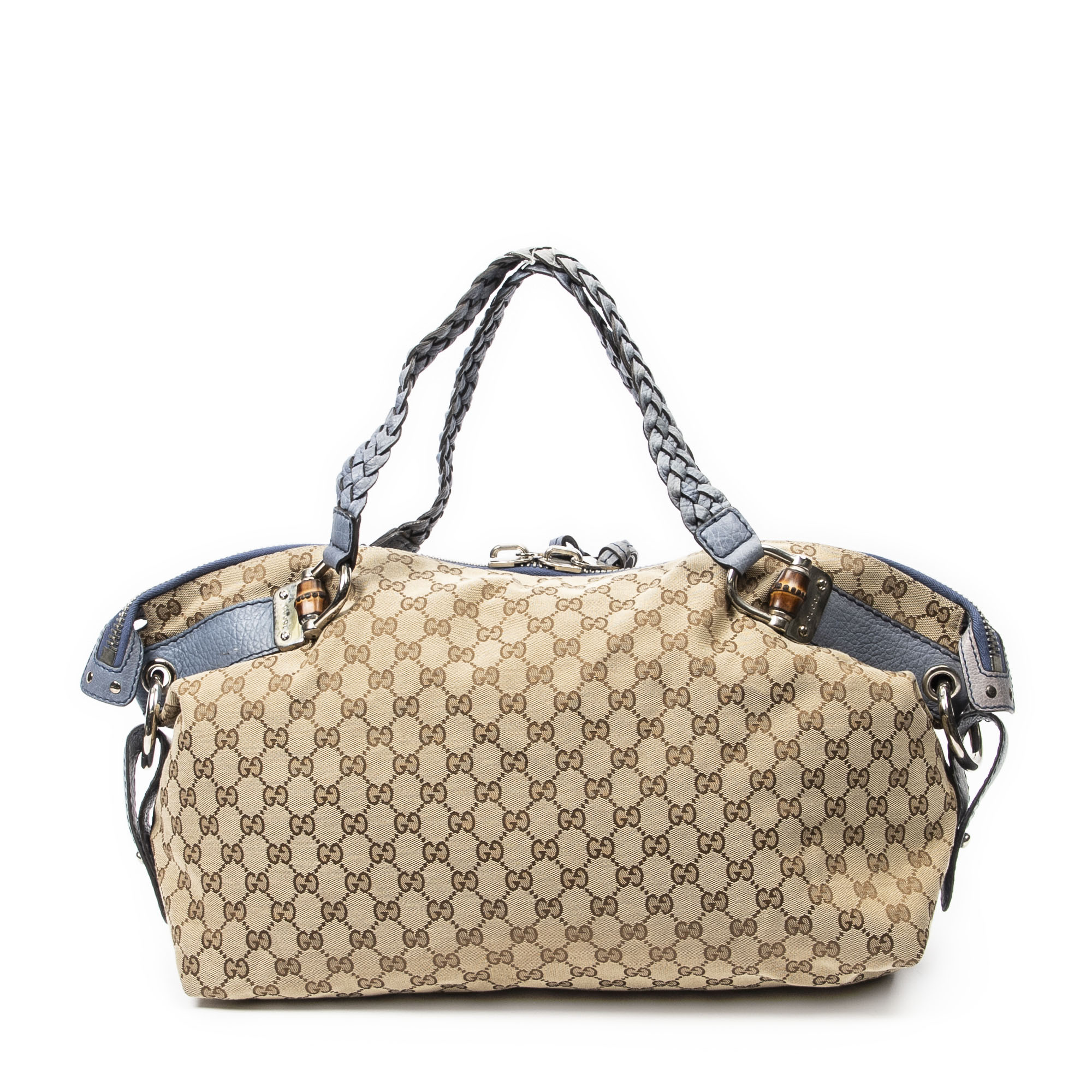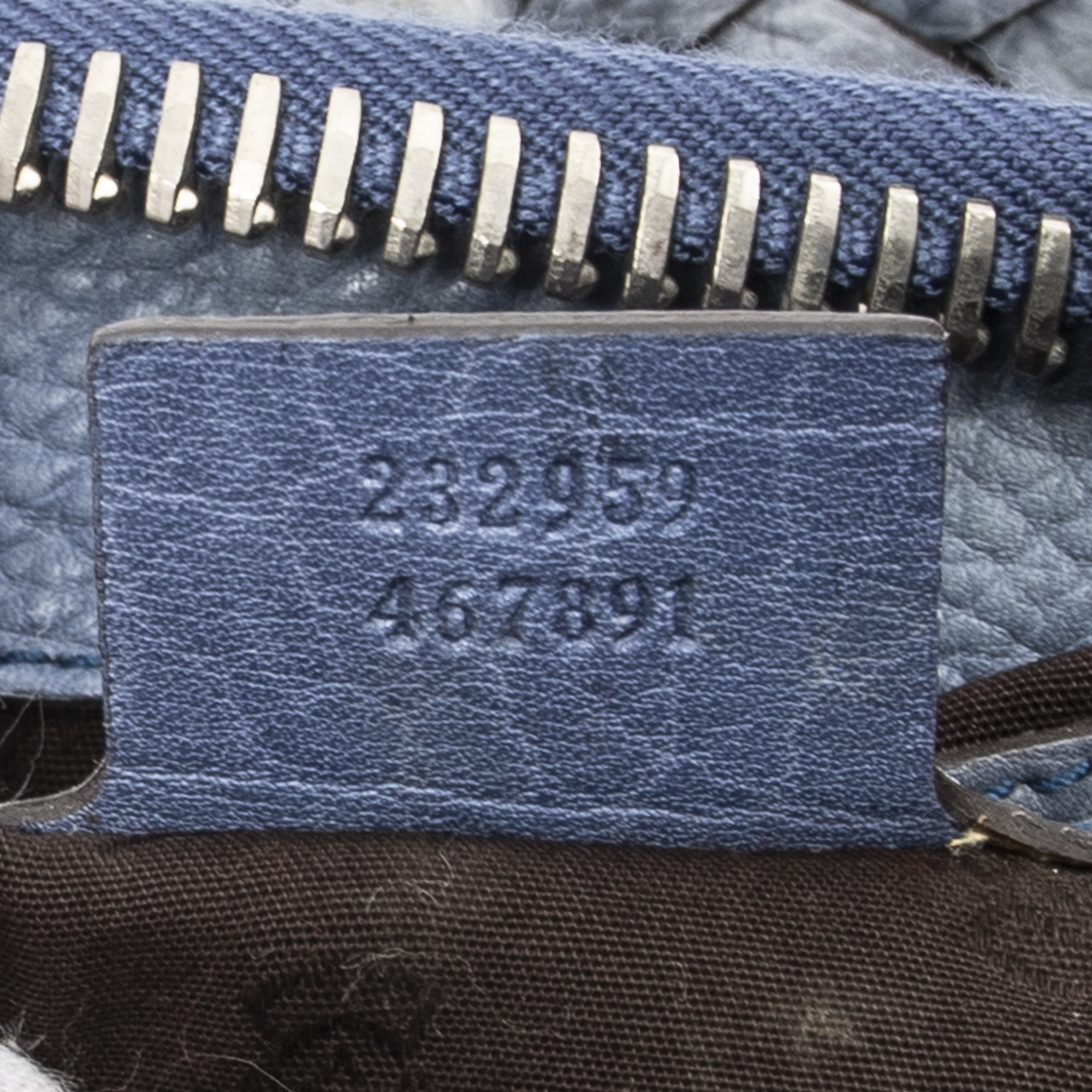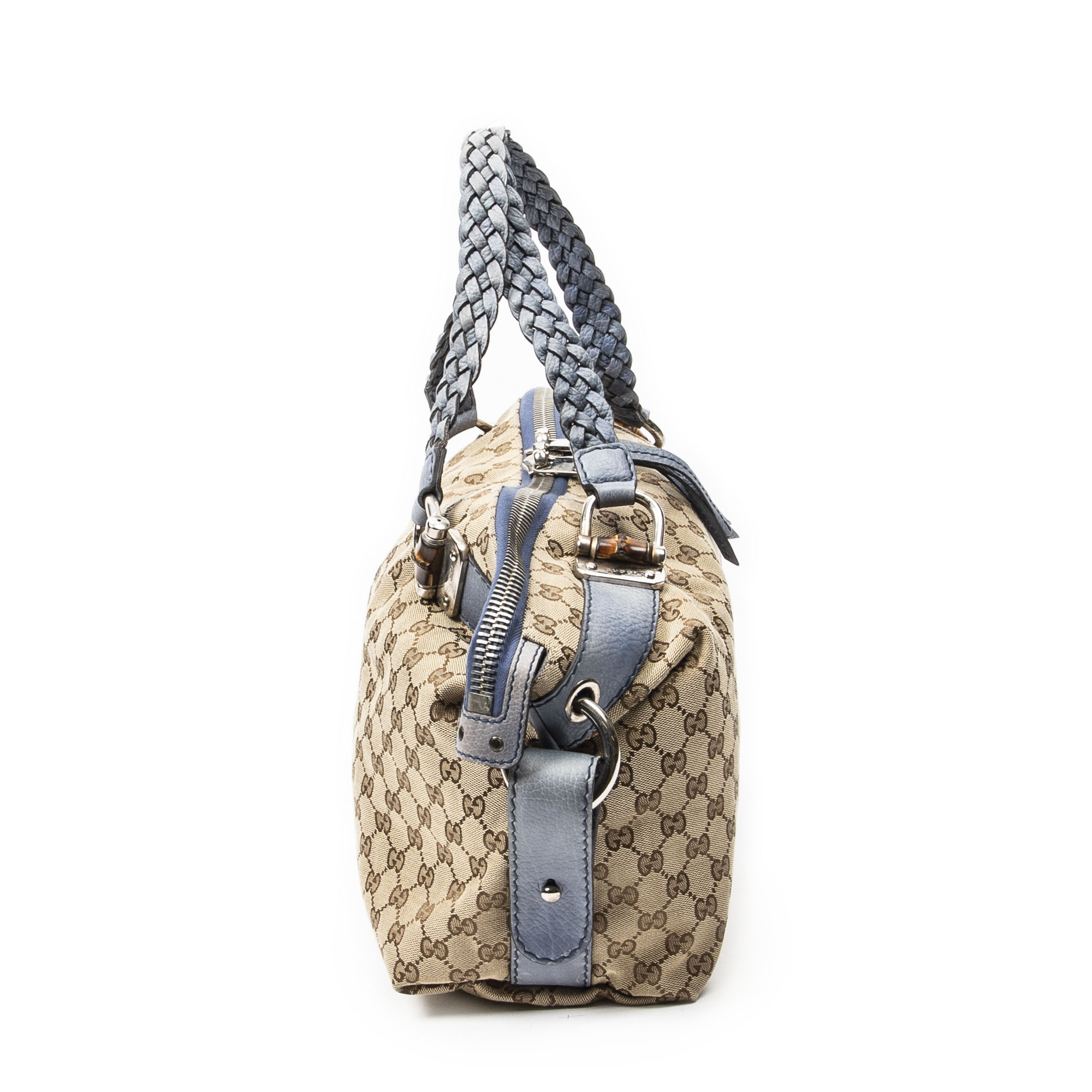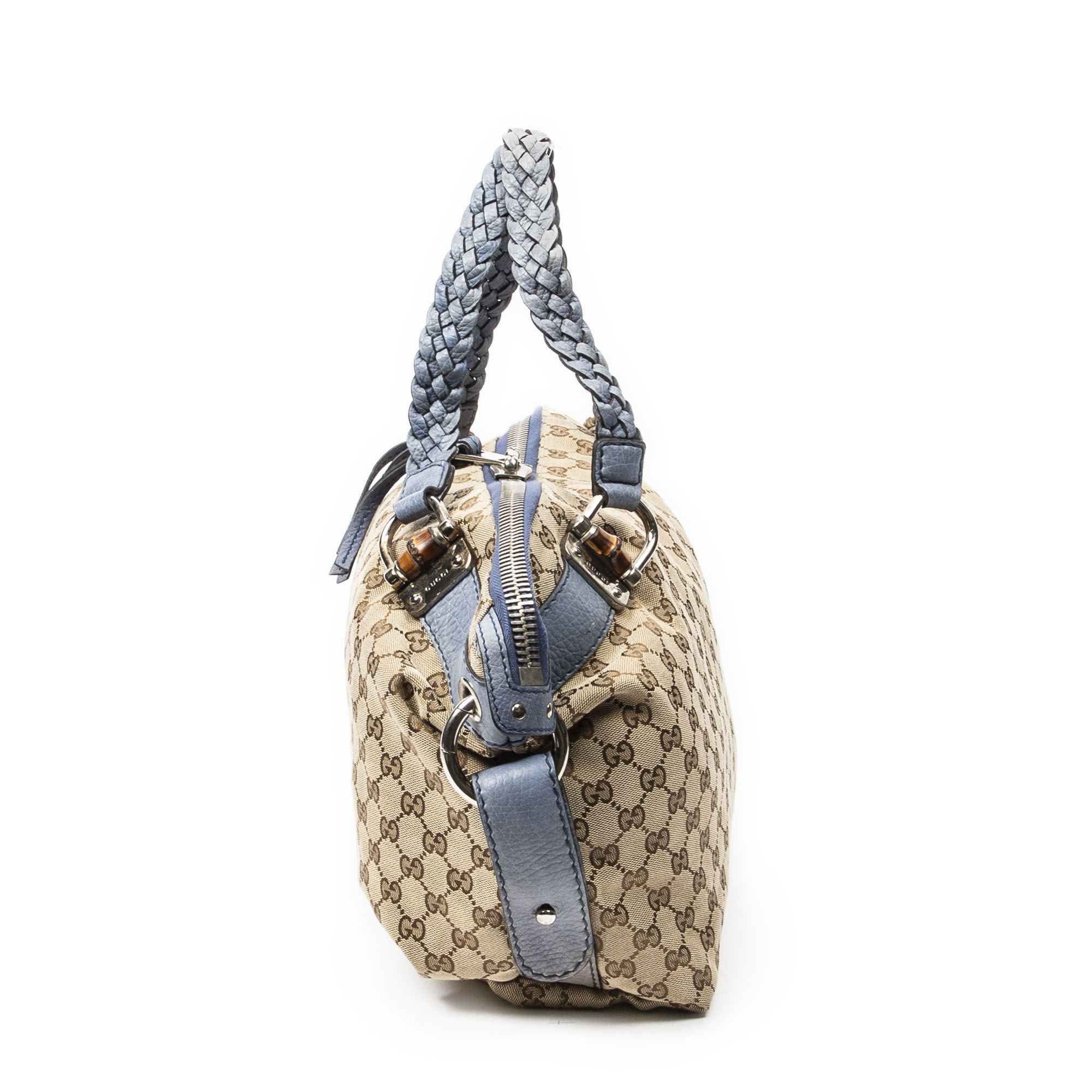 Gucci Sac à bandoulière Large Bamboo Bar Boston en Bleu et Argent. Le produit est en Très Bon état (AB).