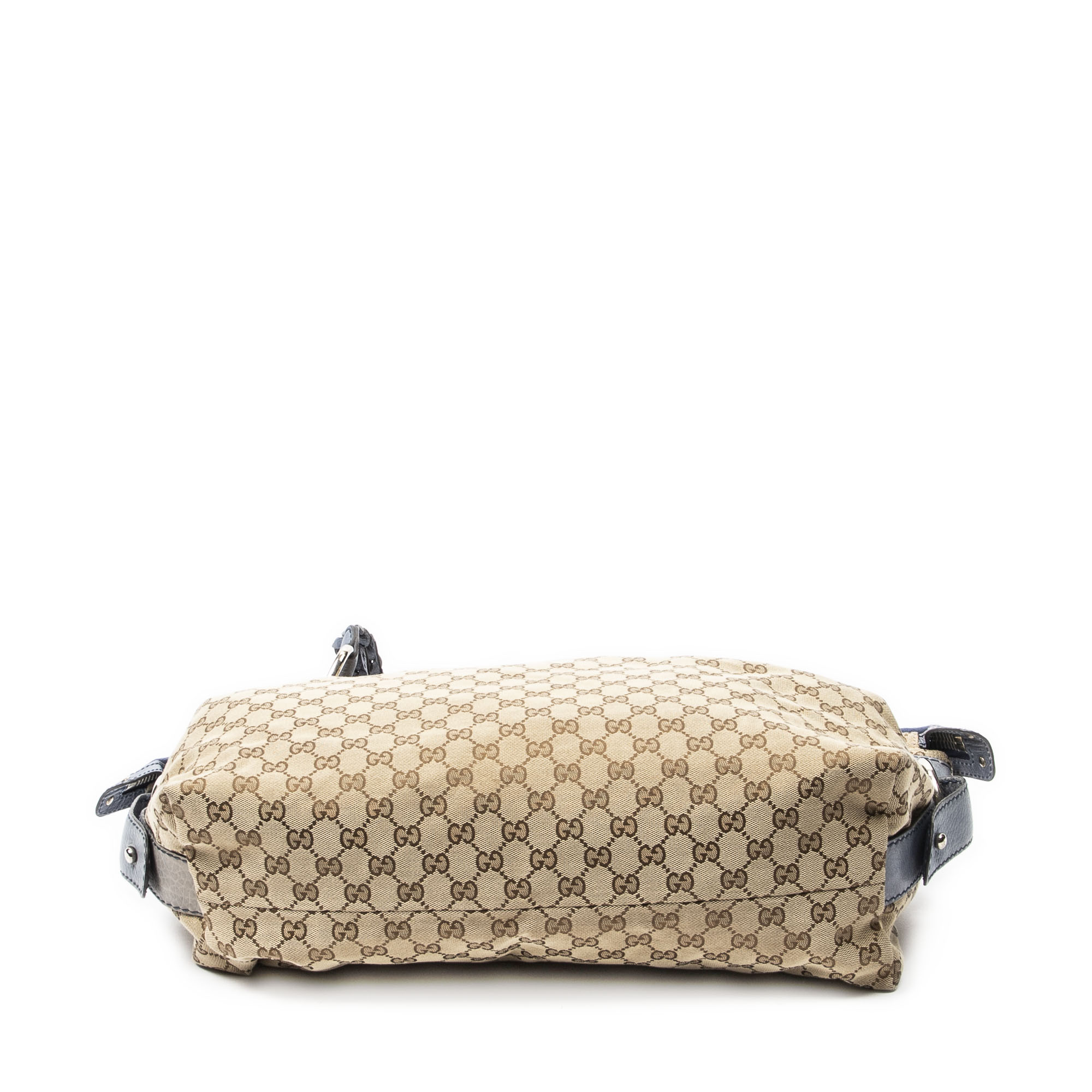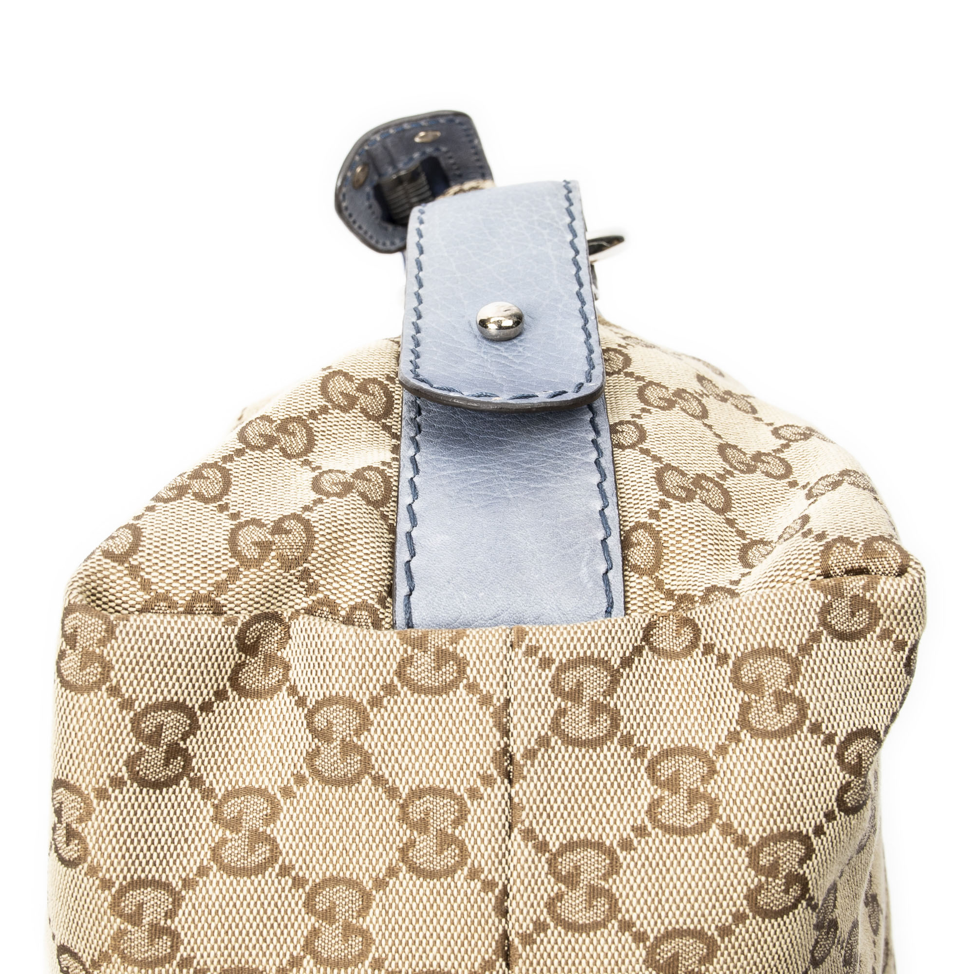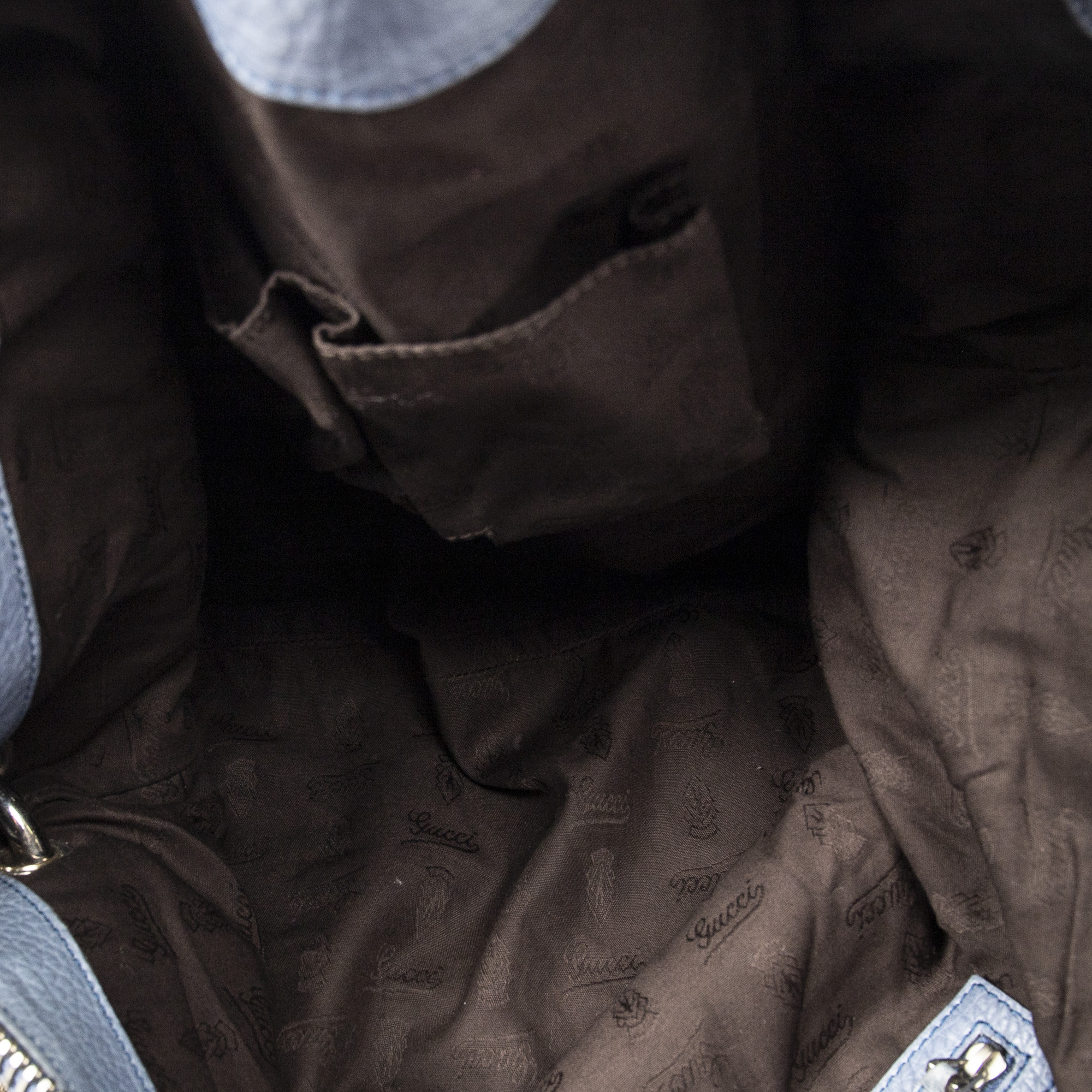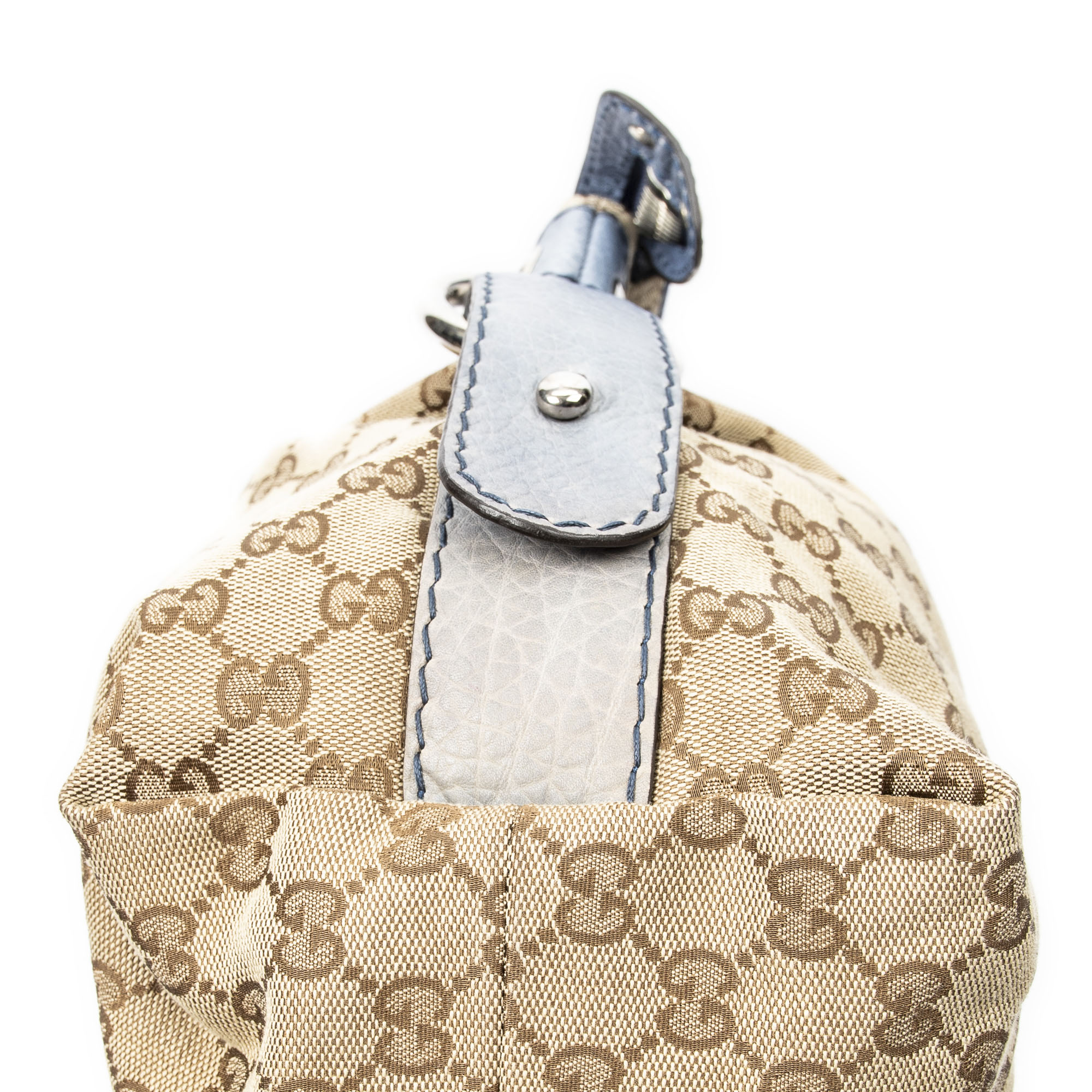 Gucci Sac à bandoulière Large Bamboo Bar Boston en Bleu et Argent. Le produit est en Très Bon état (AB).
