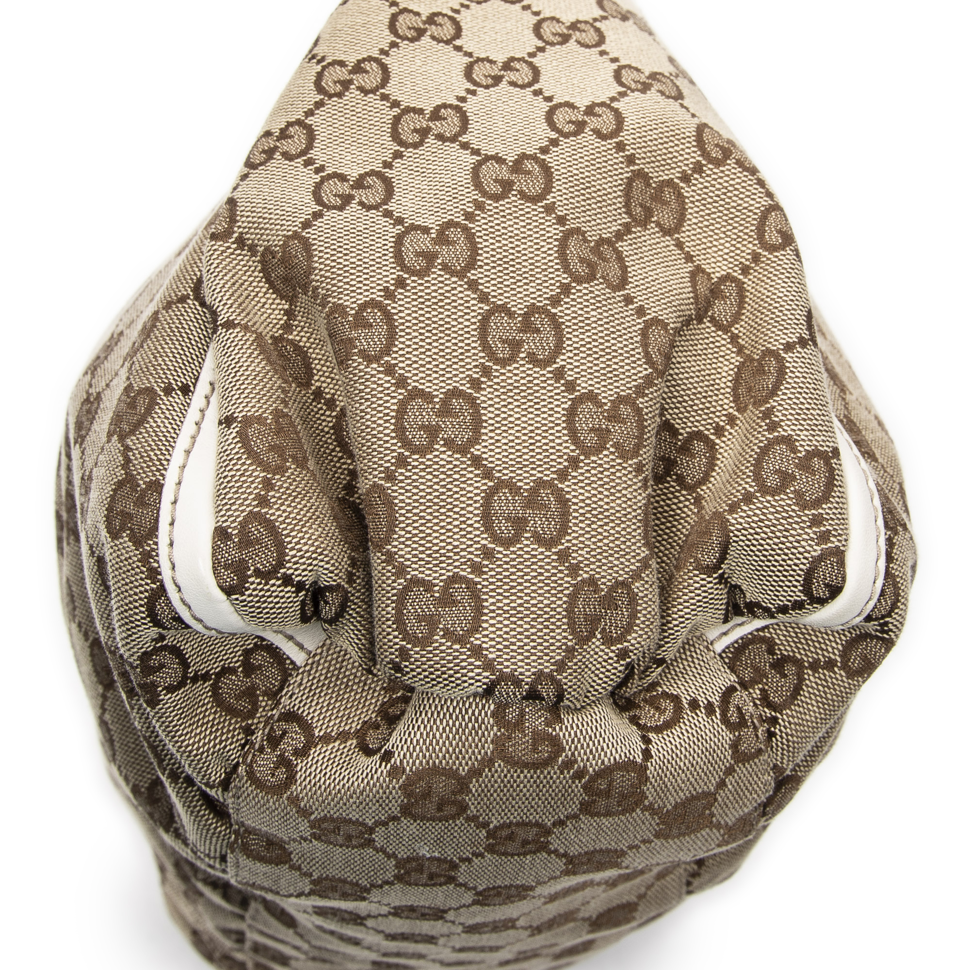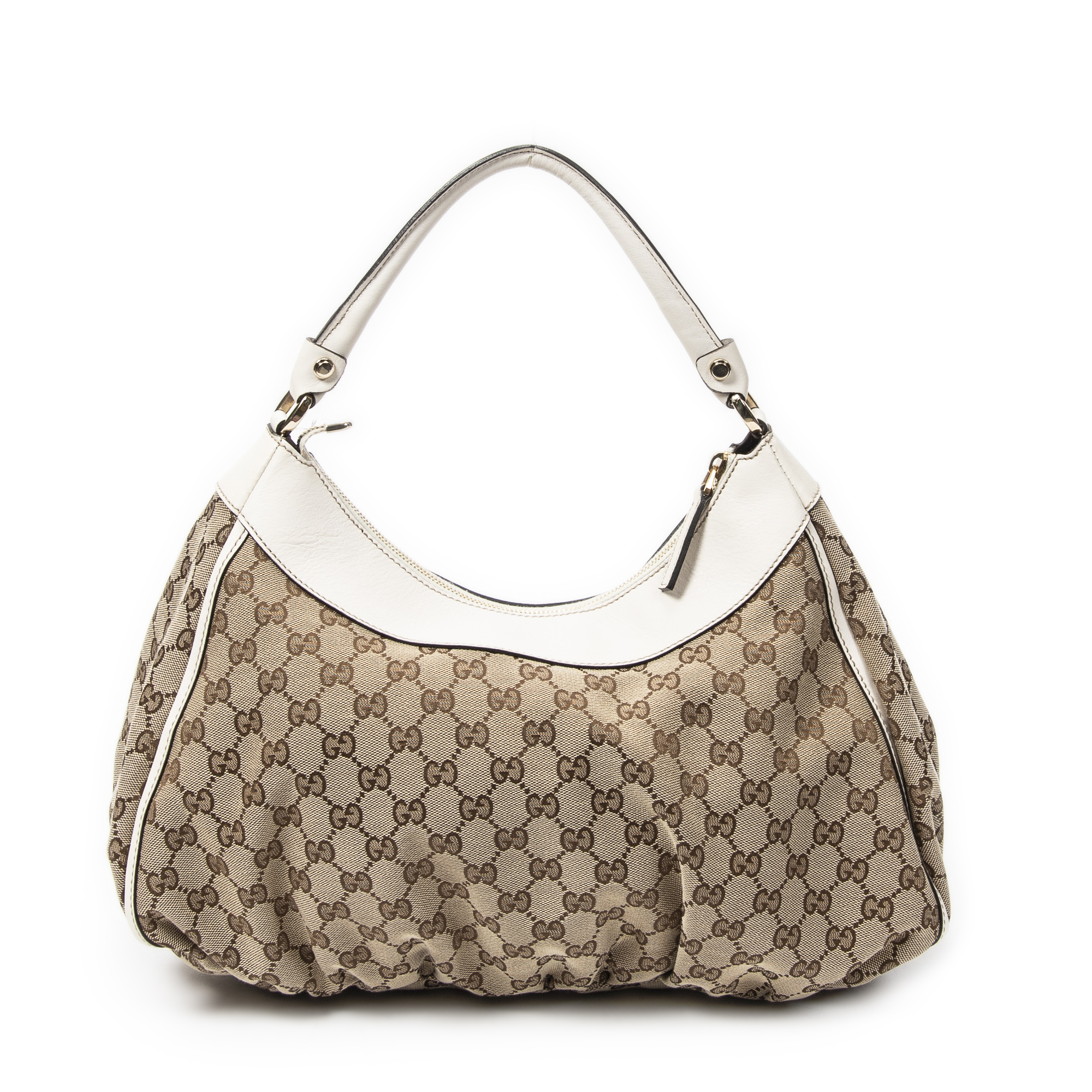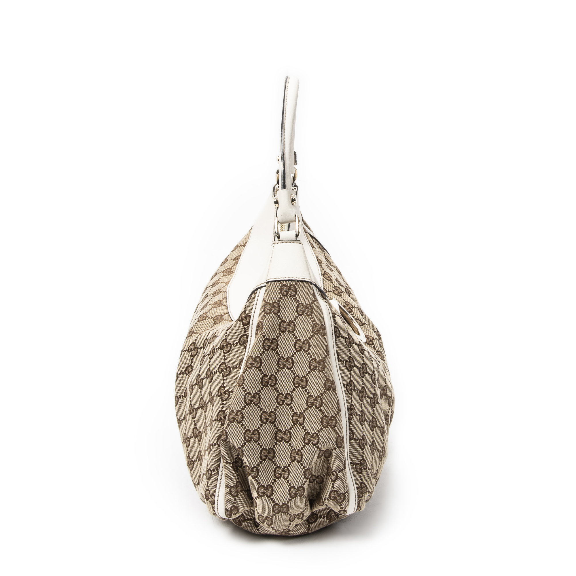 Gucci Sac à bandoulière Large D-Ring Hobo en Beige/Ivoire et Gold. Le produit est en Parfait état (AA).