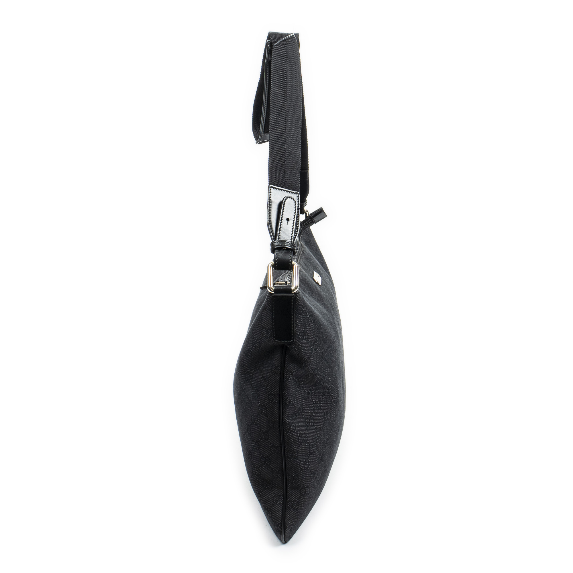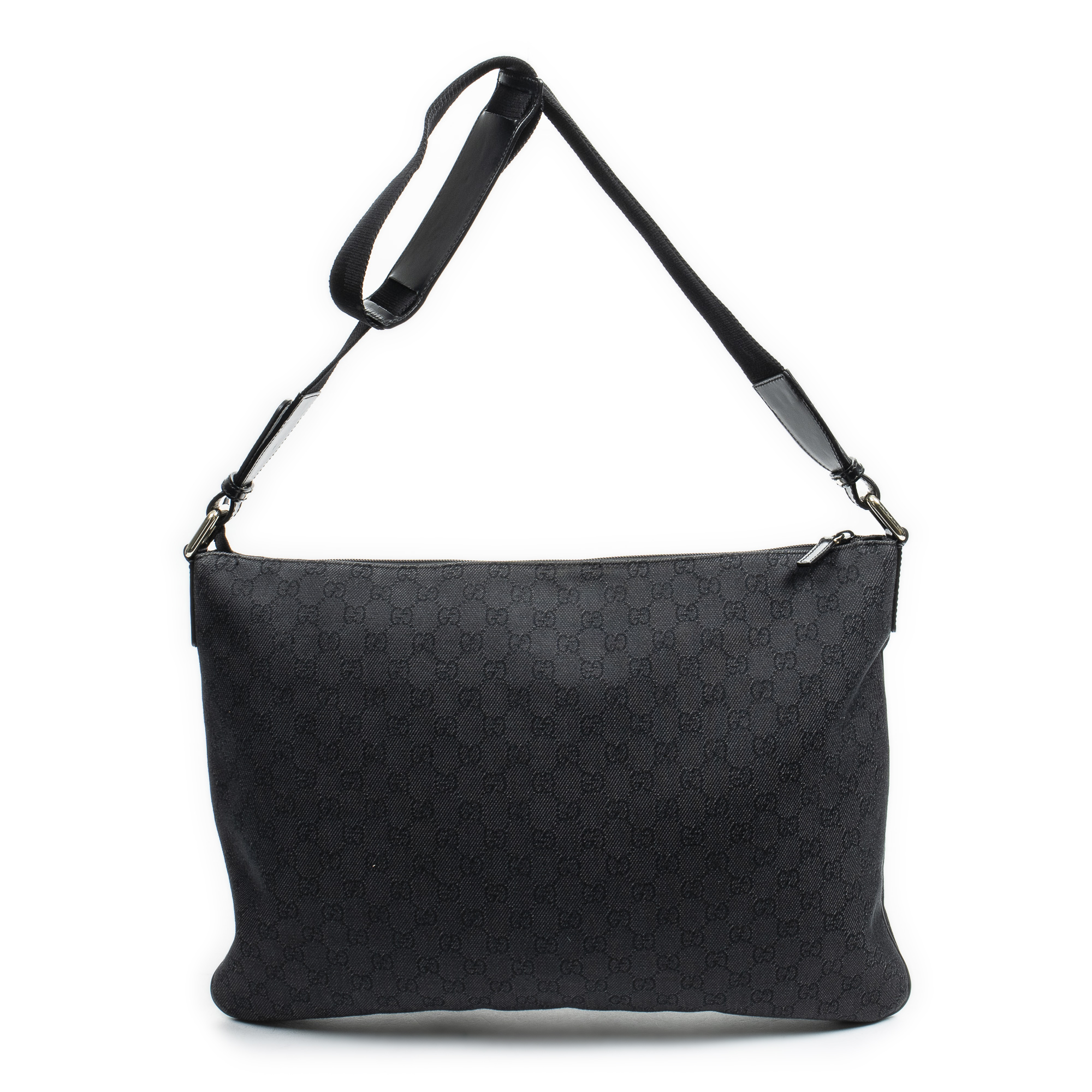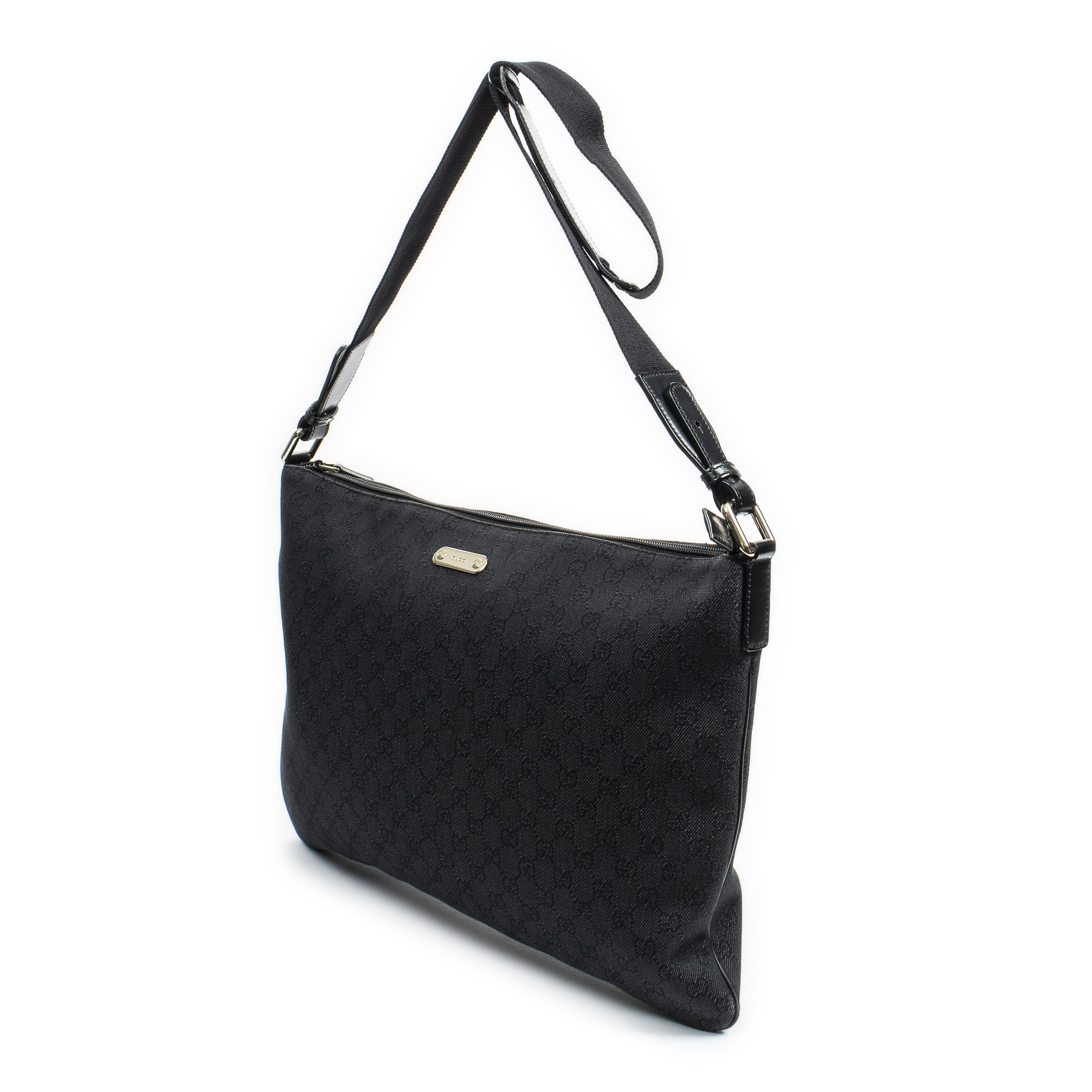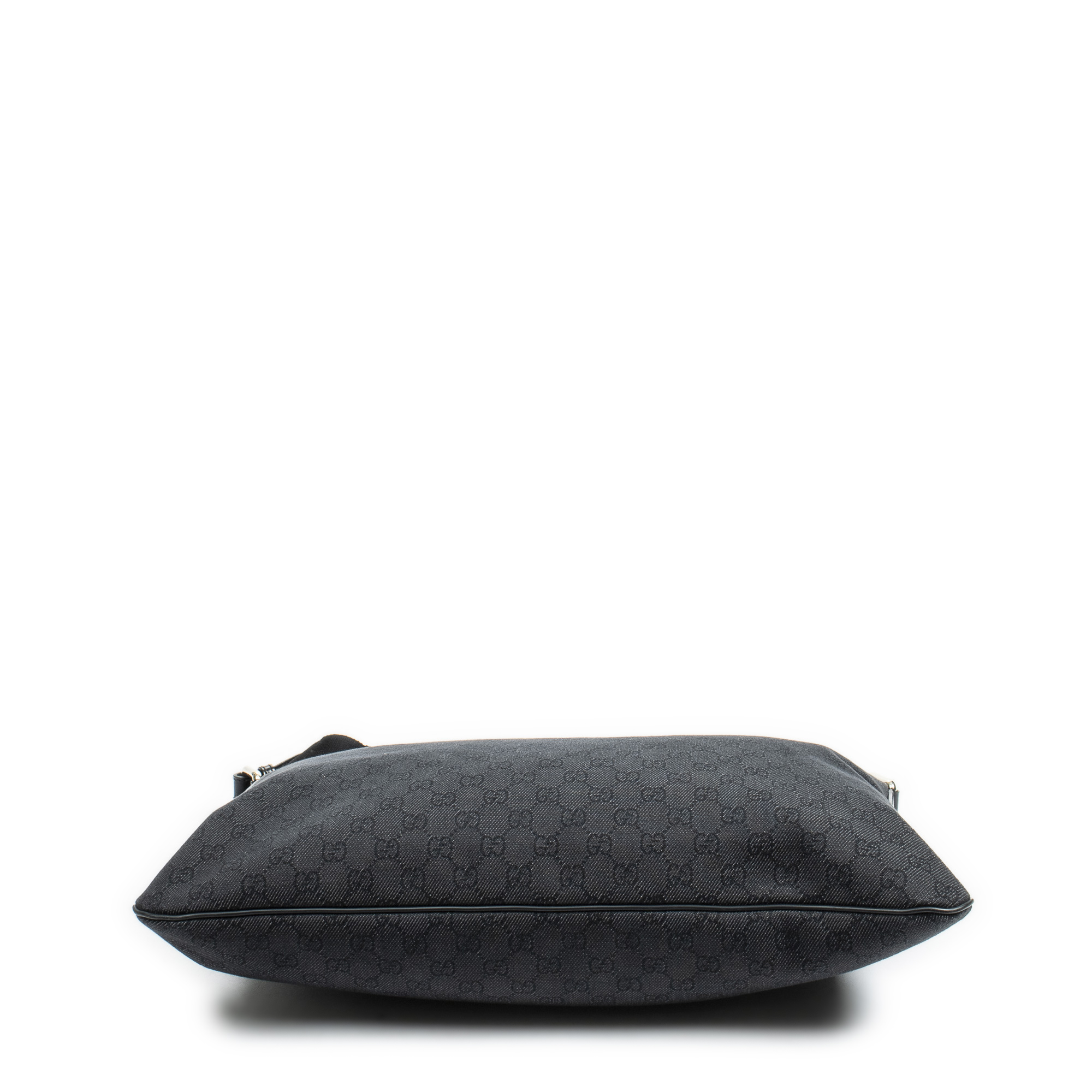 Gucci Sac à bandoulière Large Denim Flat Messenger en Black et Gold. Le produit est en Excellent état (A).