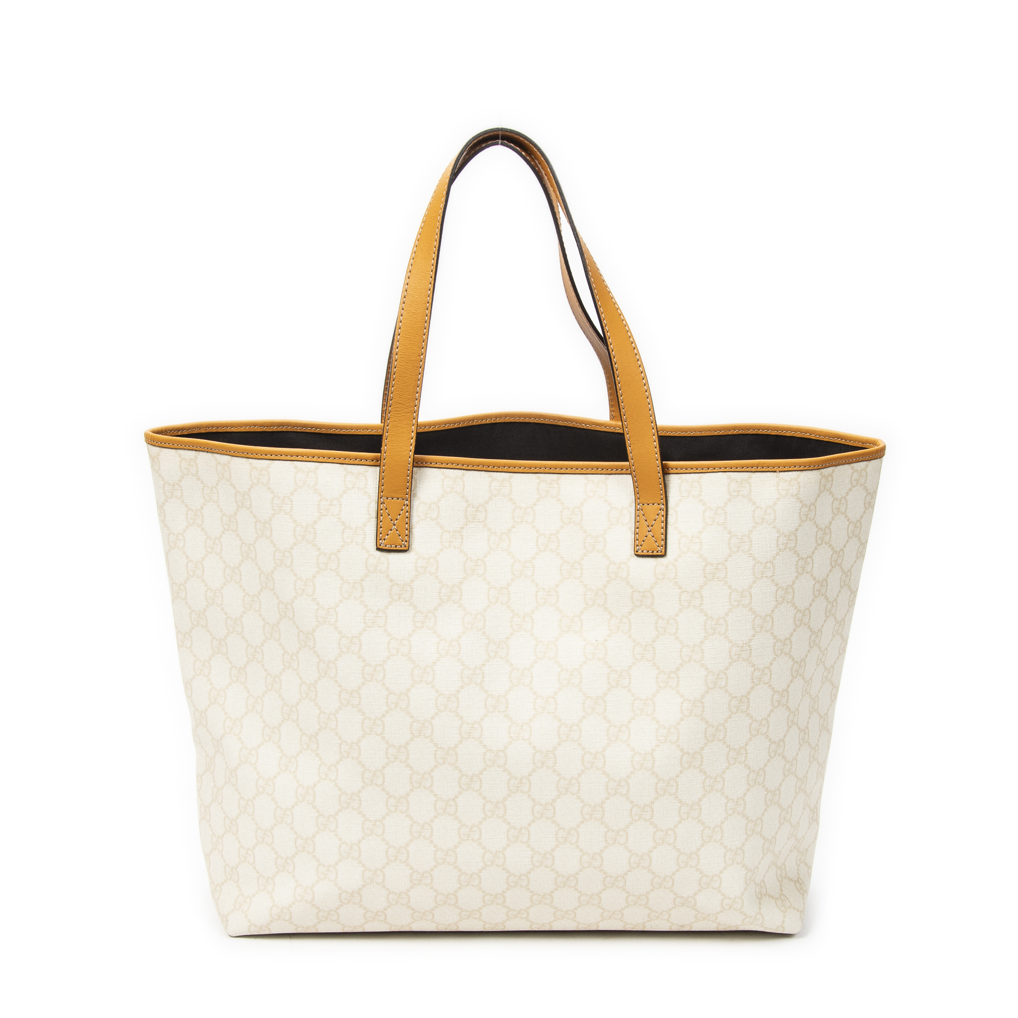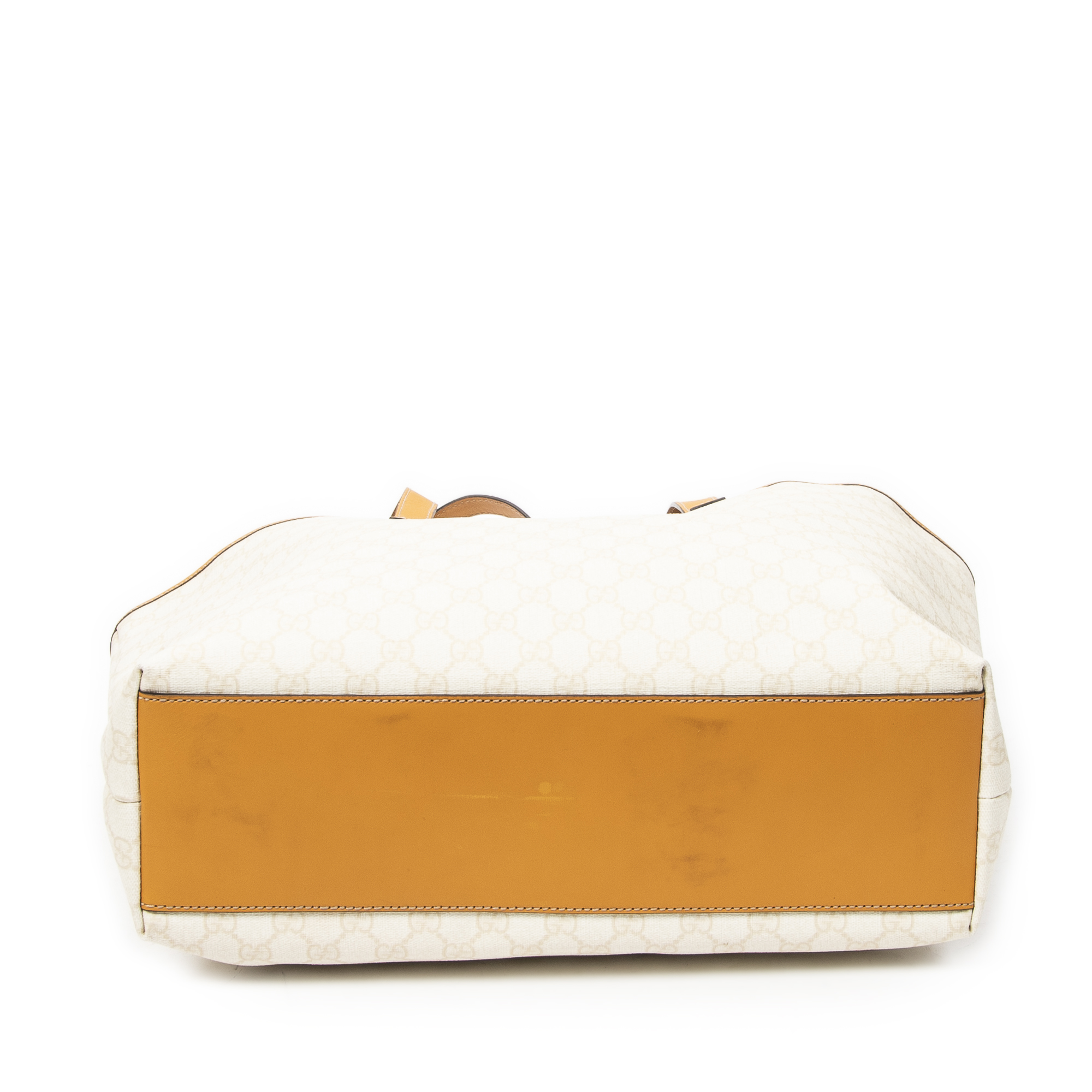 Gucci Sac à bandoulière Large Horizontal Tote en Blanc/Jaune et Gold. Le produit est en Parfait état (AA).