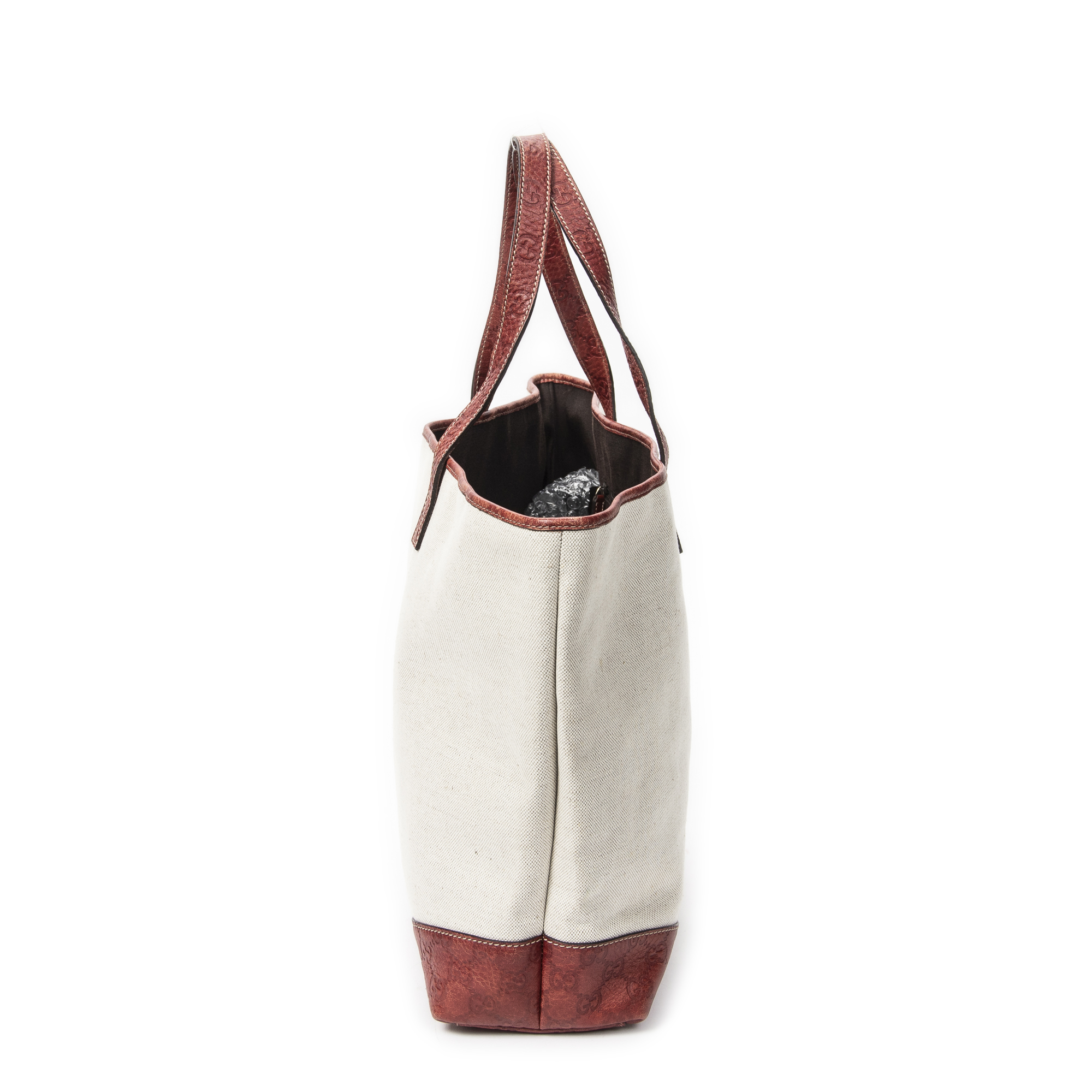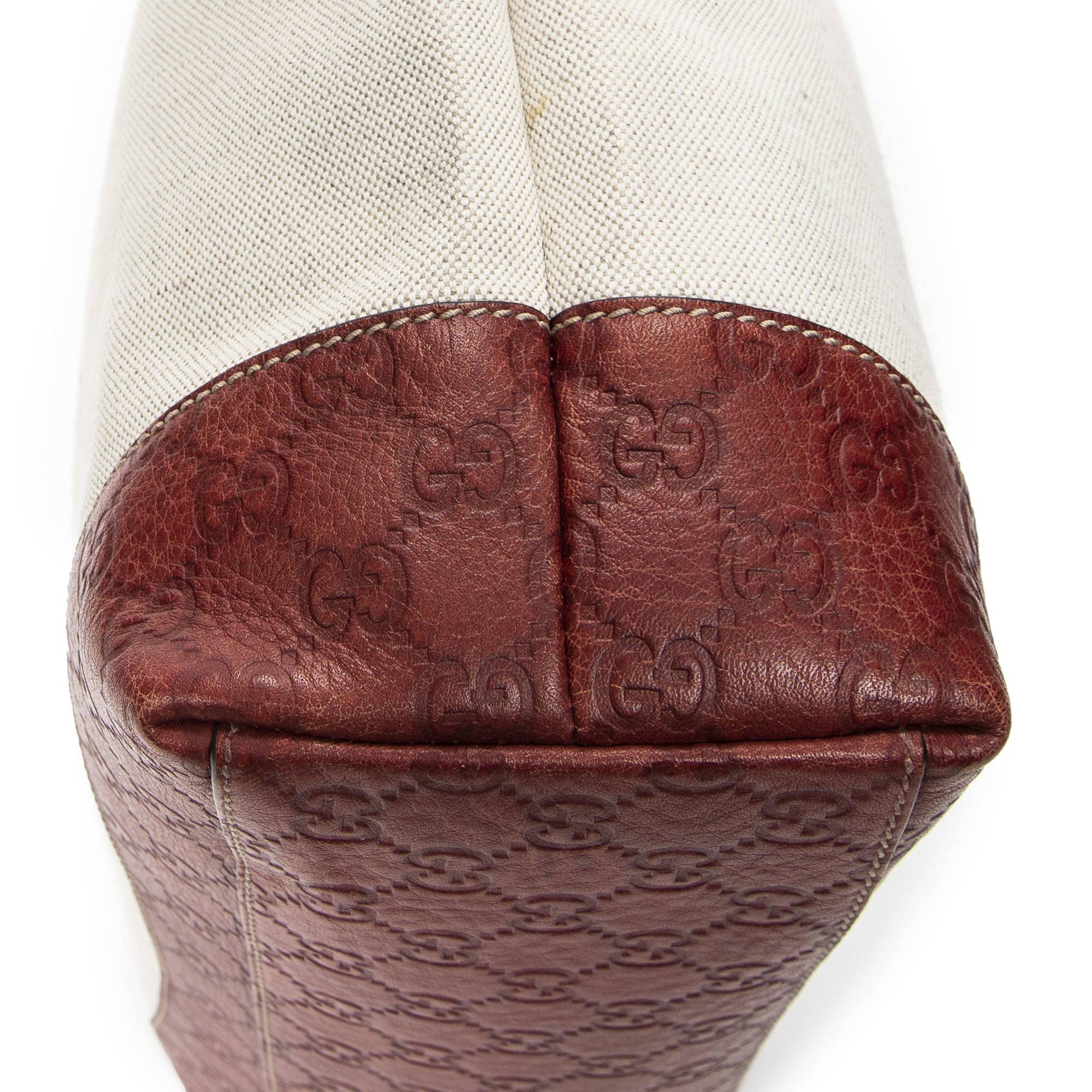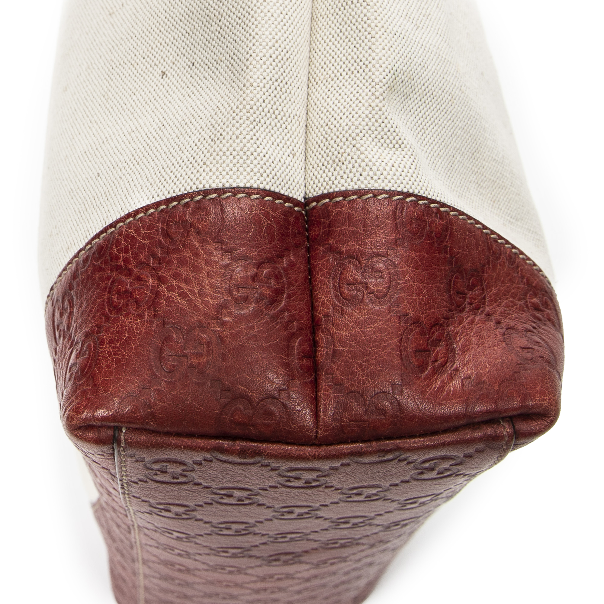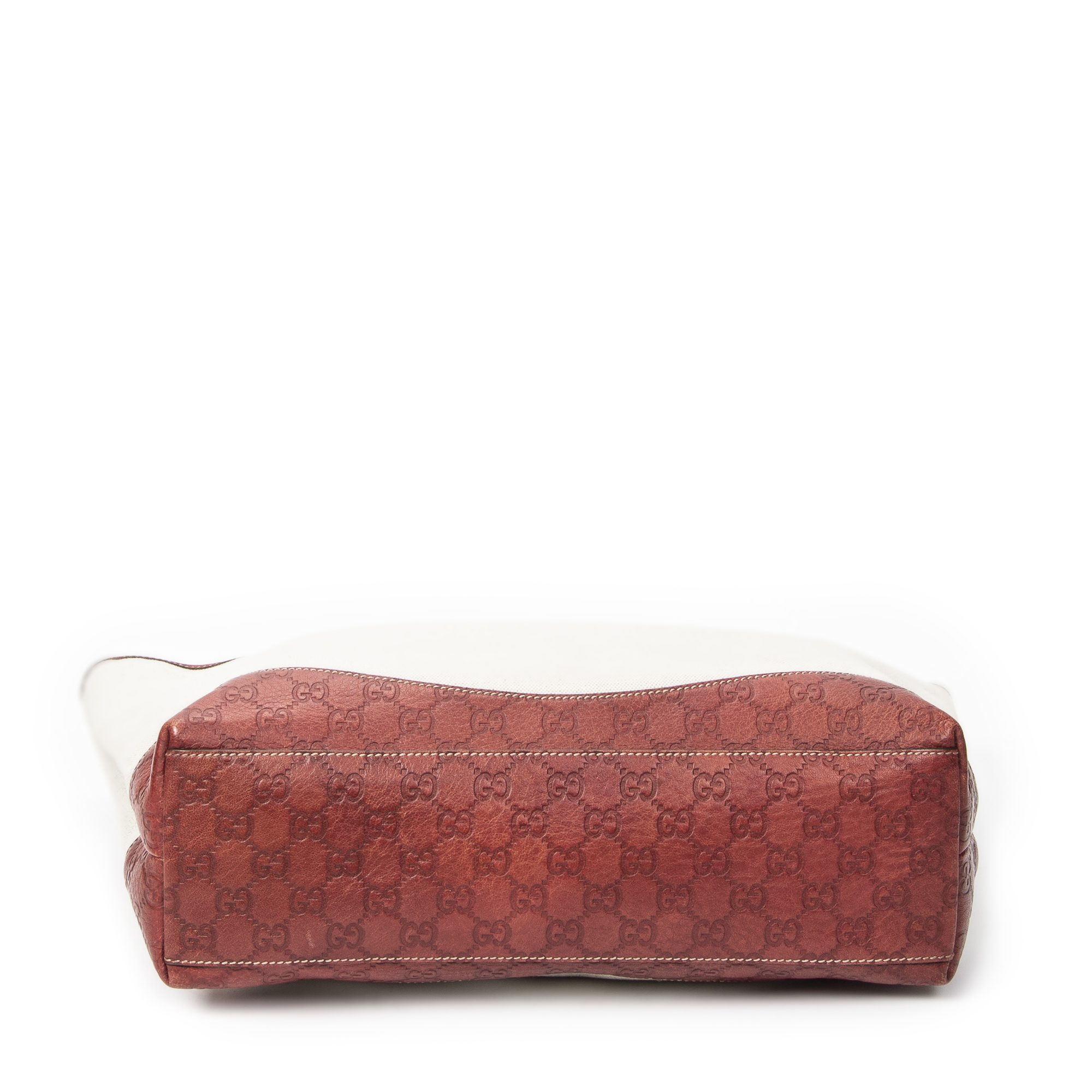 Gucci Sac à bandoulière Large Shopping Tote en Ivoire/Rouge et Gold. Le produit est en Excellent état (A).