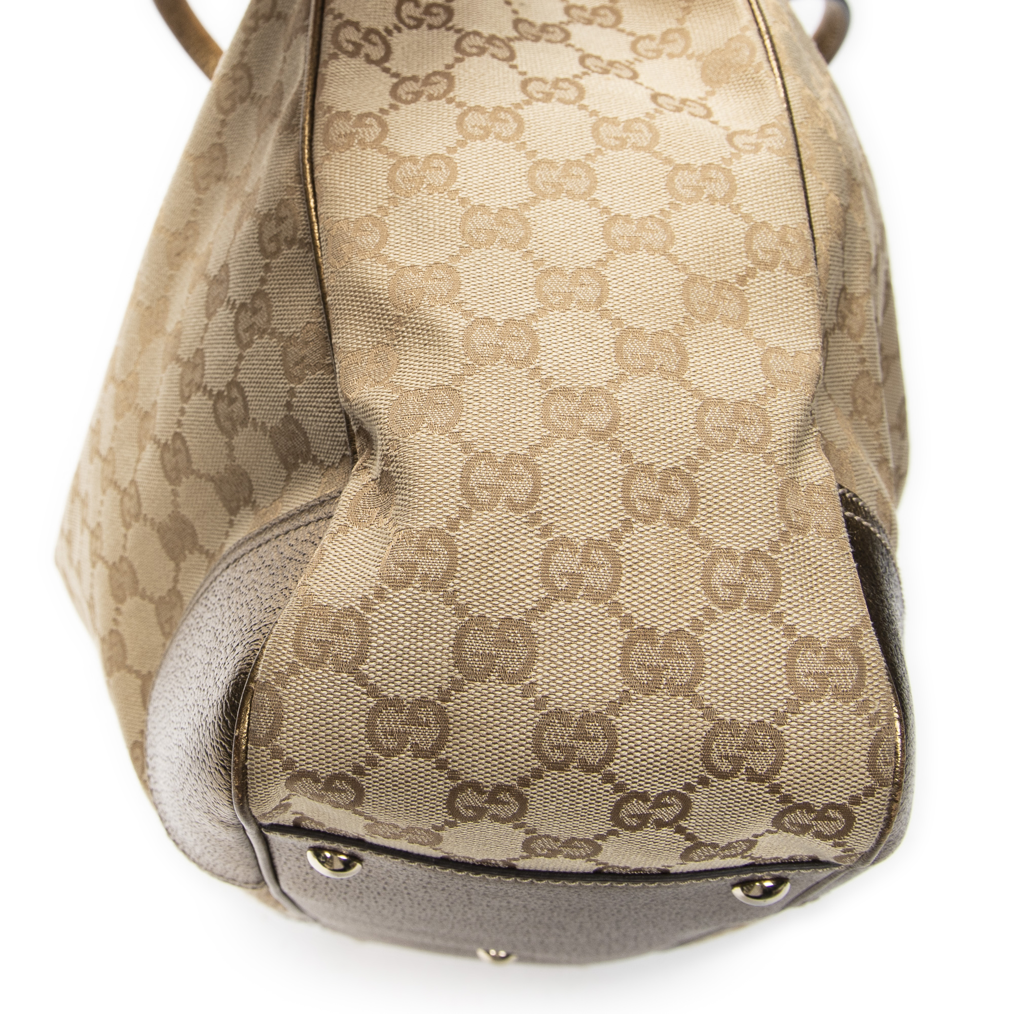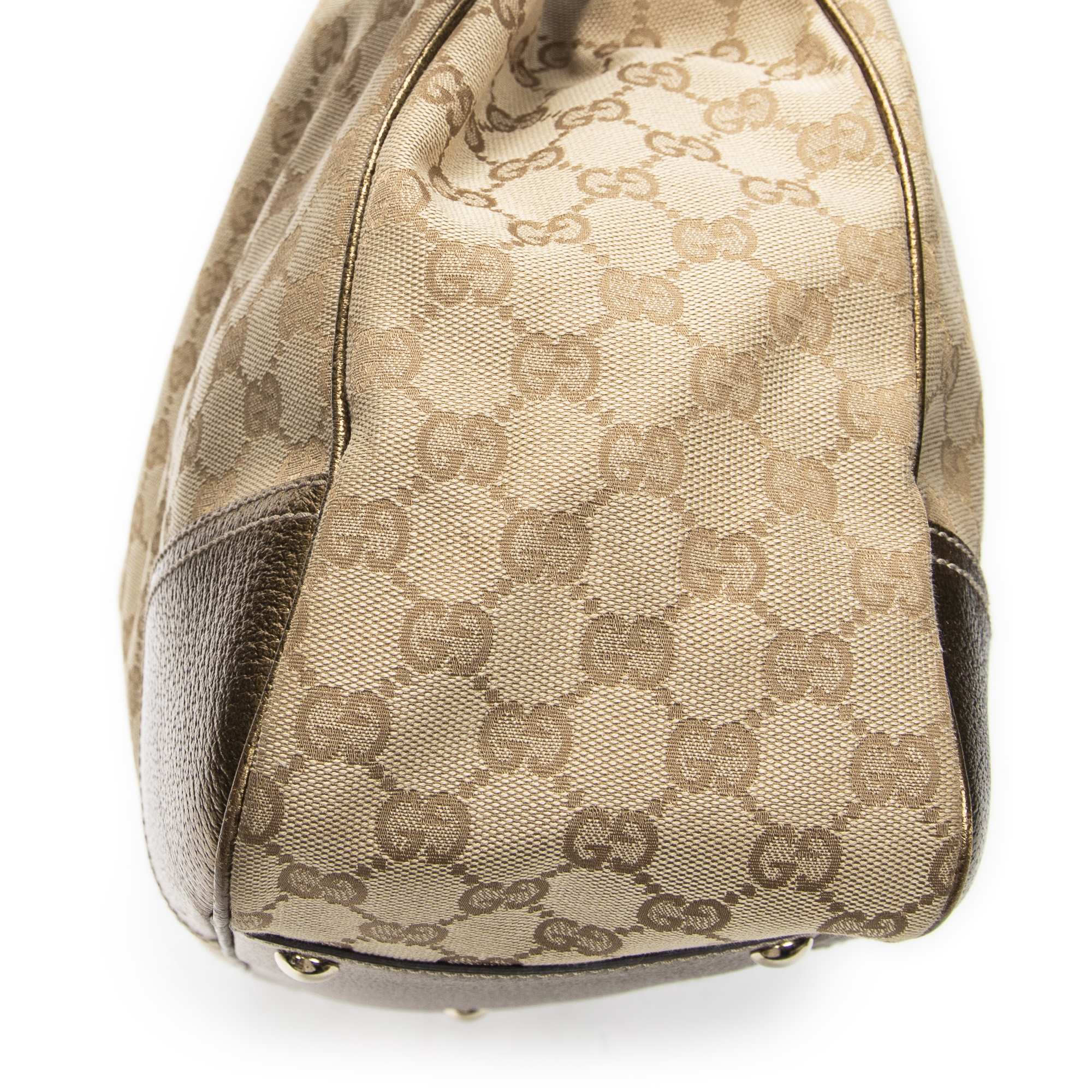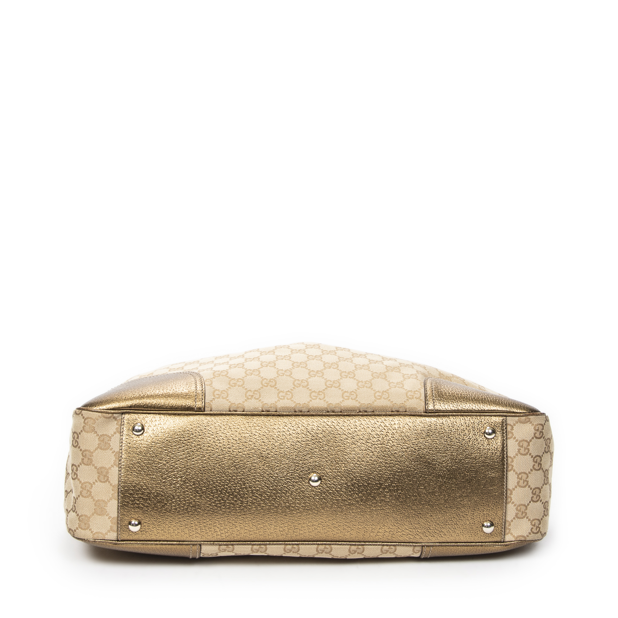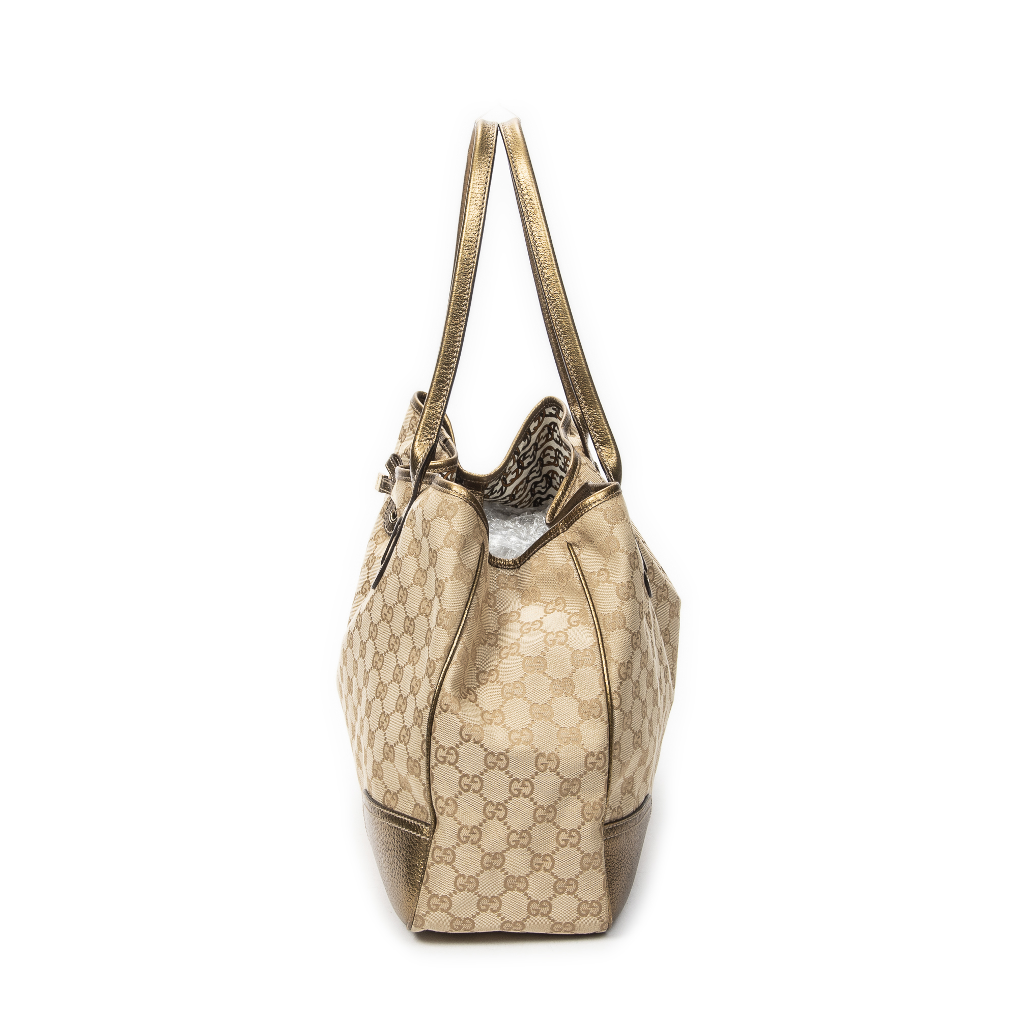 Gucci Sac à bandoulière Large Web Princy Tote en Beige et Gold. Le produit est en Excellent état (A).