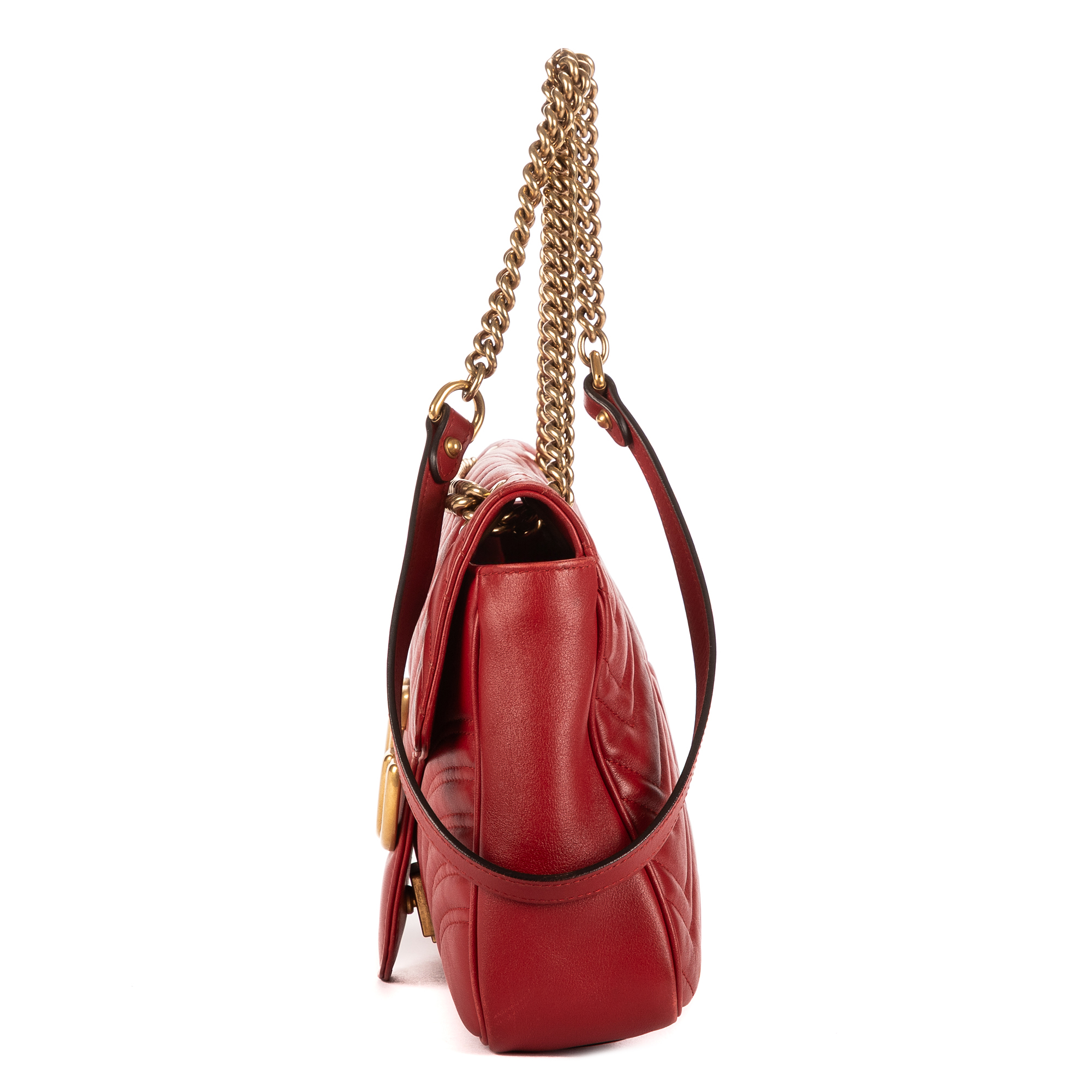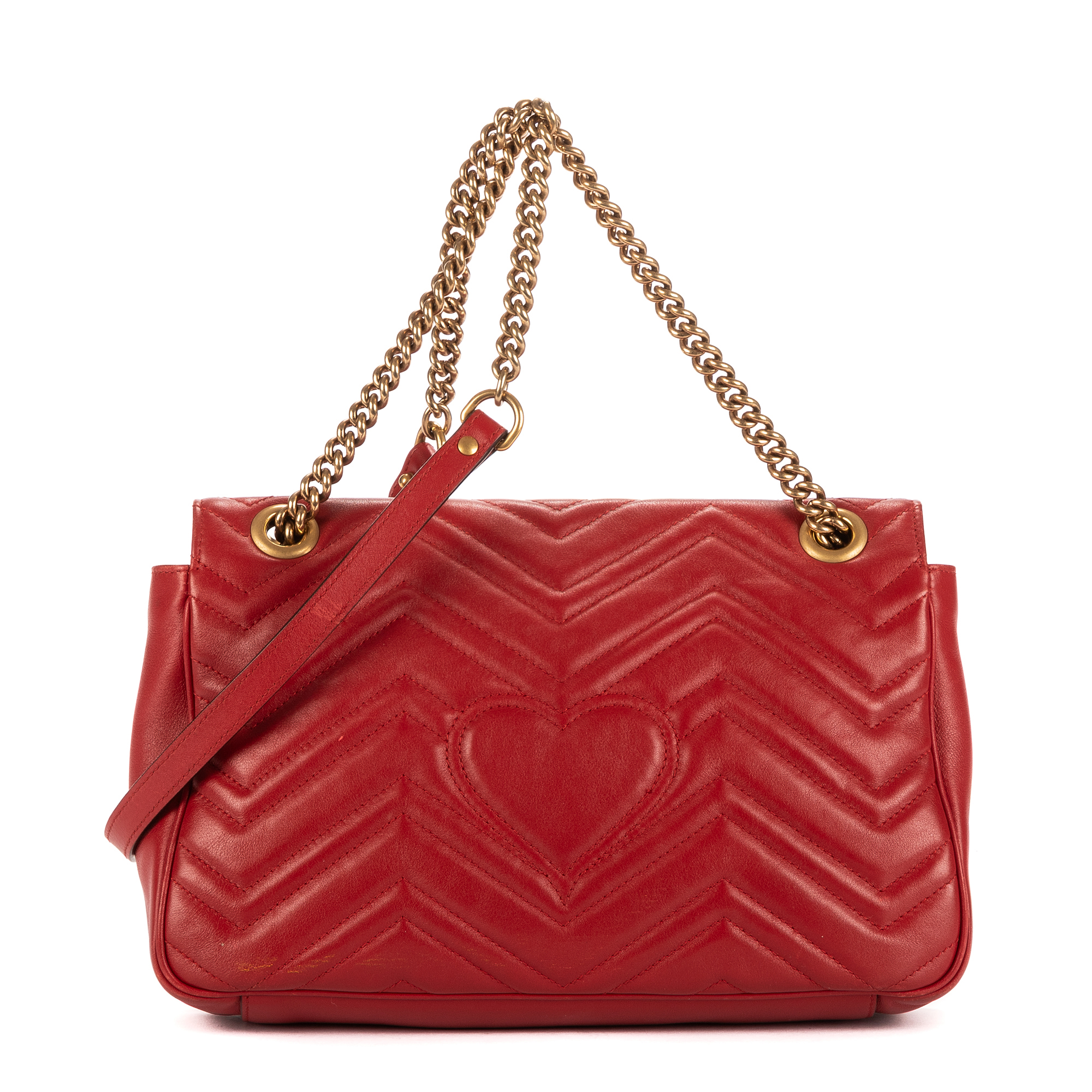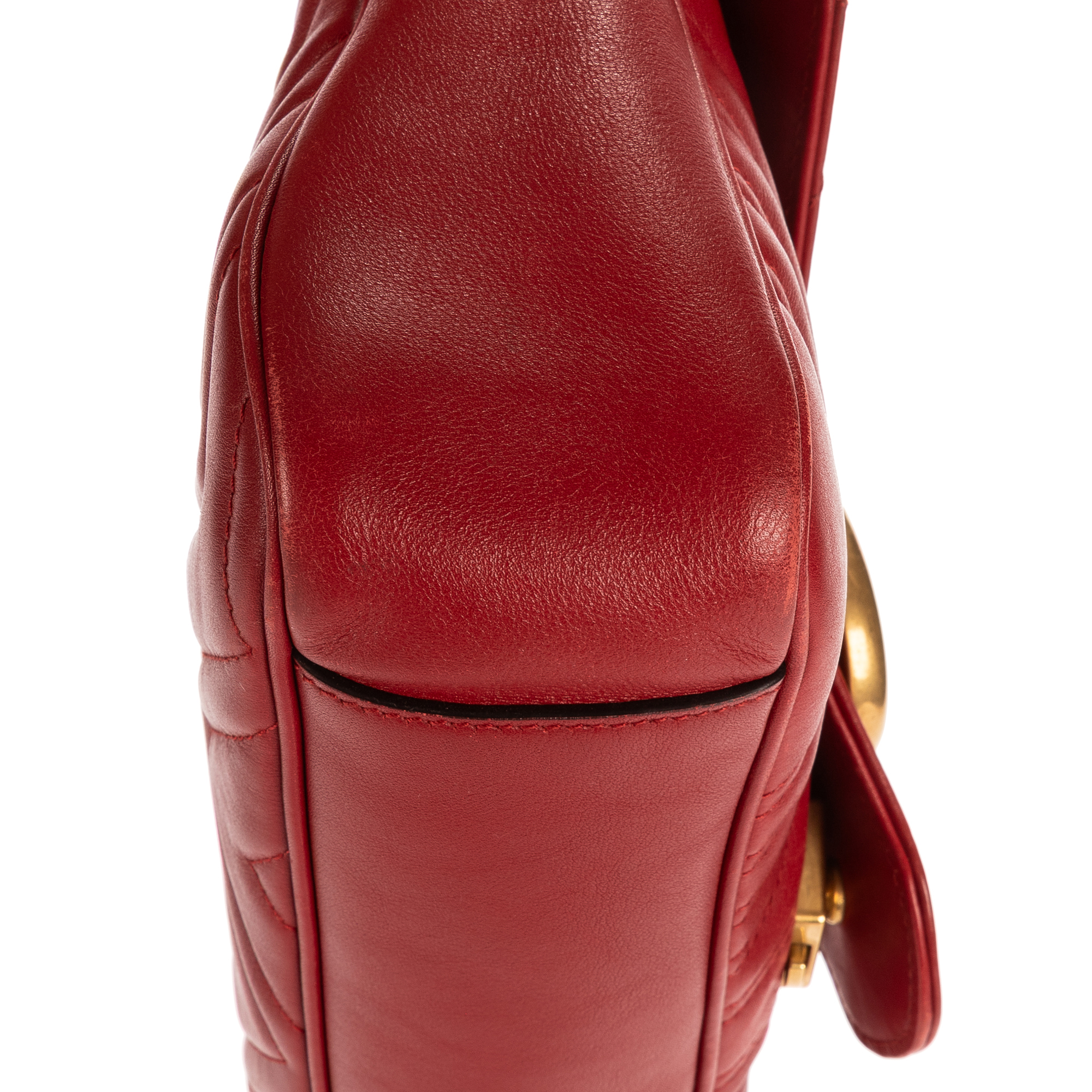 Gucci Sac à bandoulière Marmont Flap en Rouge et Or. Le produit est en Excellent état (A).