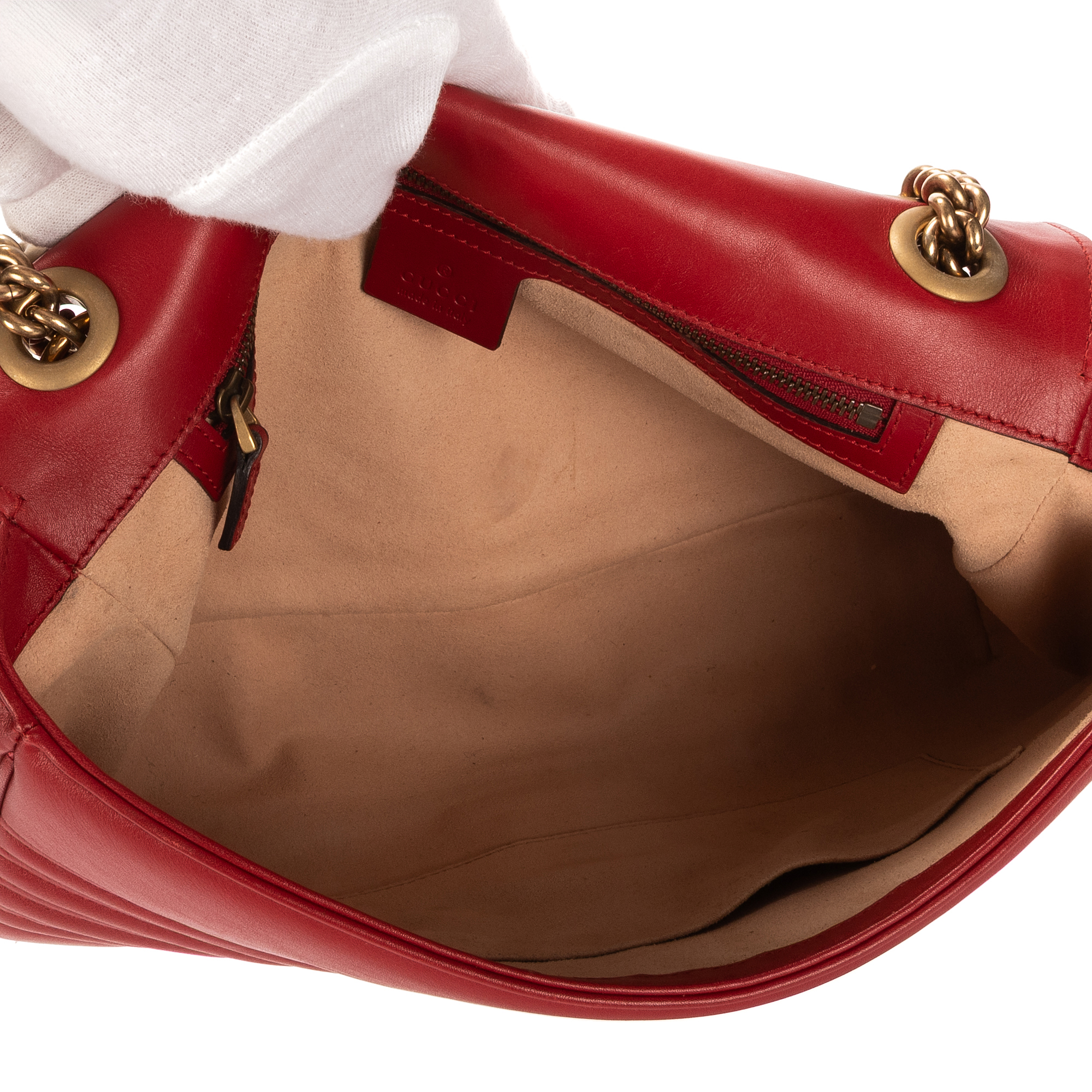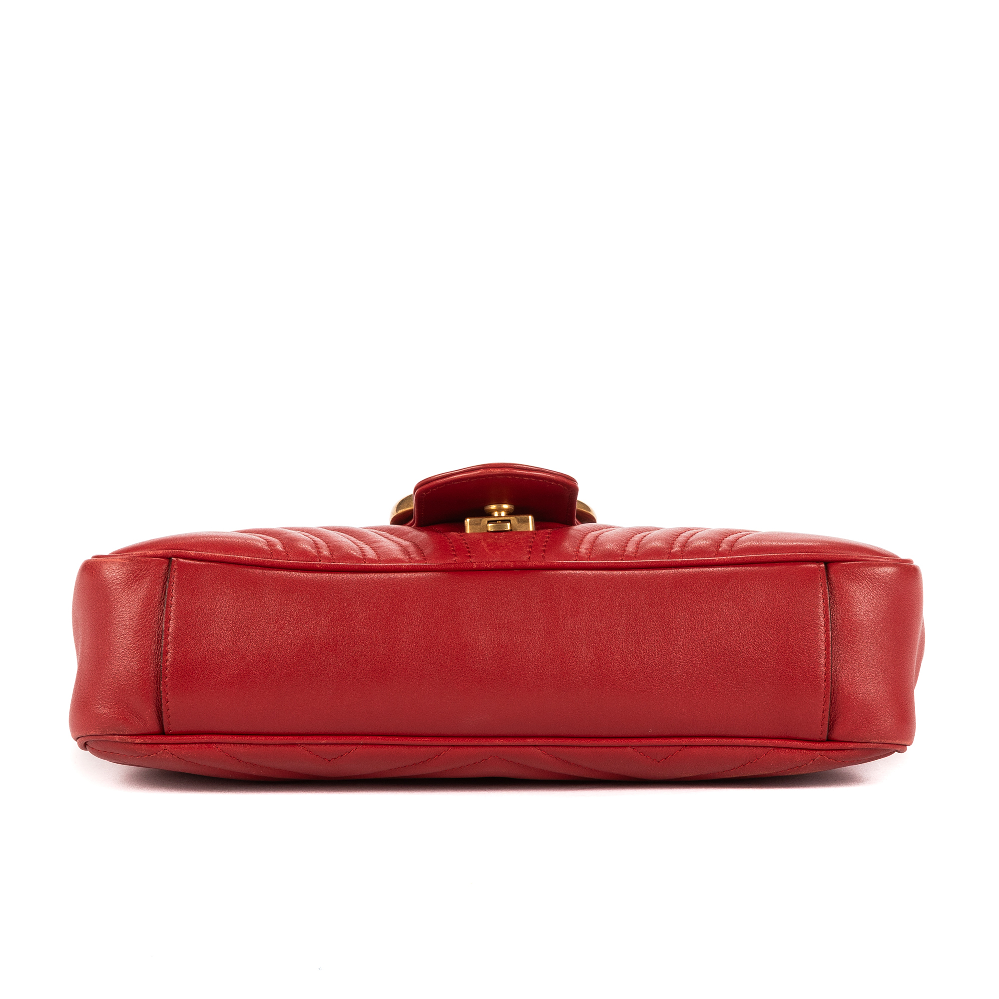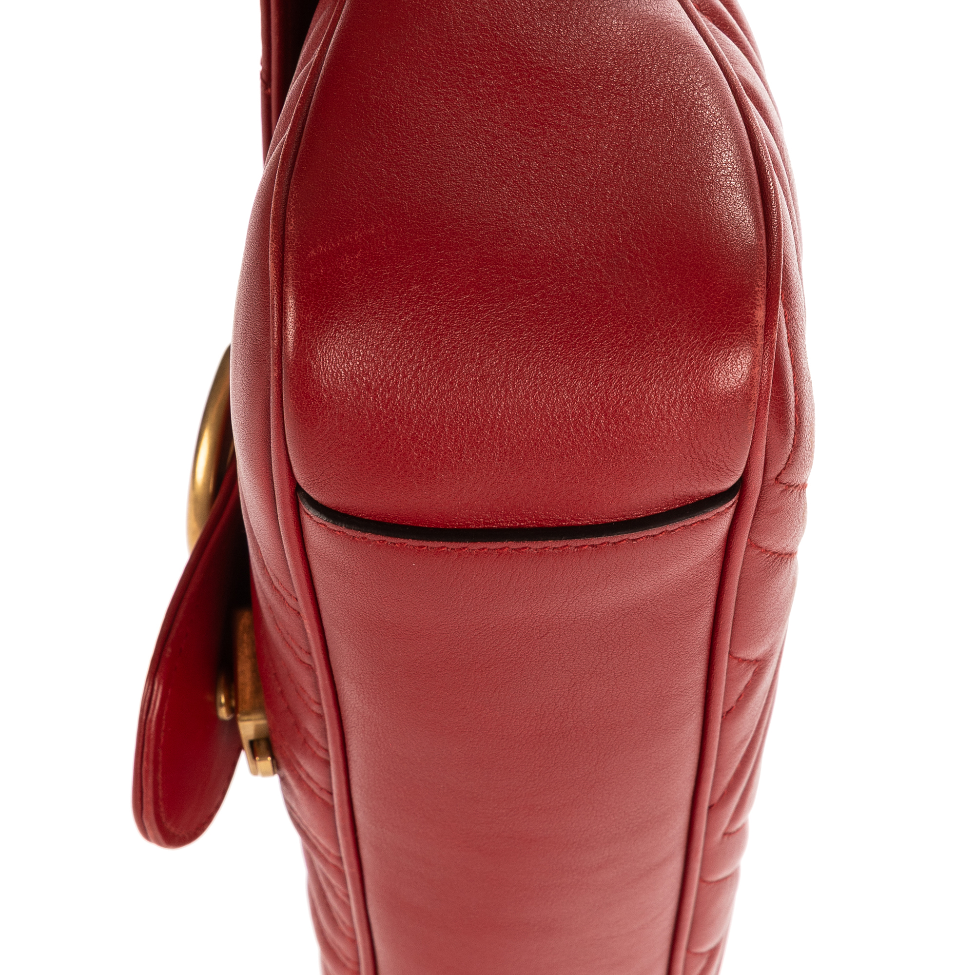 Gucci Sac à bandoulière Marmont Flap en Rouge et Or. Le produit est en Excellent état (A).