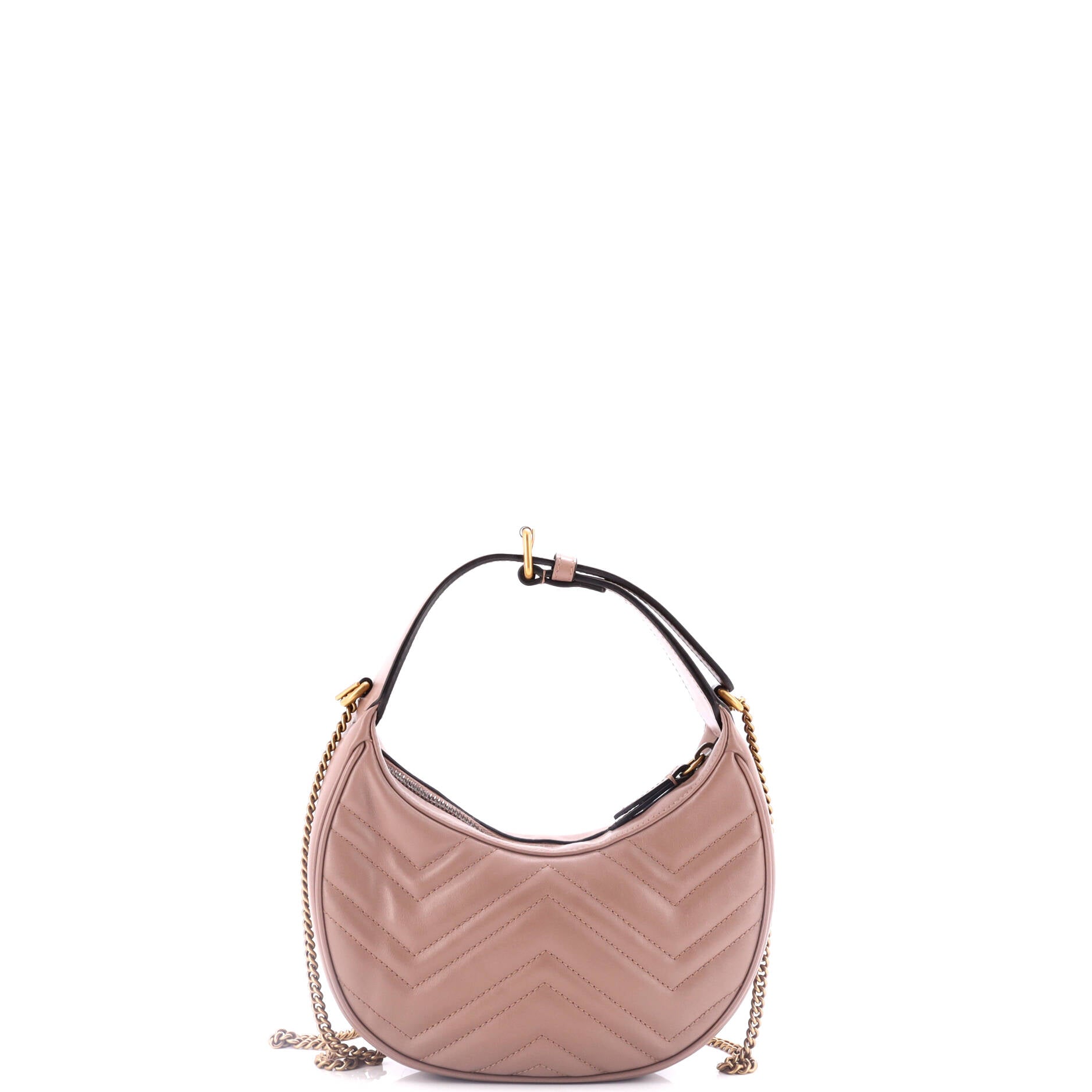 Gucci Sac à bandoulière Marmont Half Moon Hobo Mini en Rose et Gold. Le produit est en Excellent état (A).