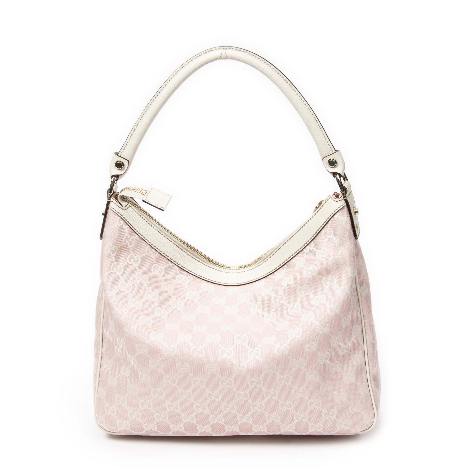 Gucci Sac à bandoulière Medium Abbey Pocket Hobo en Rose/Ivoire et Gold. Le produit est en Excellent état (A).