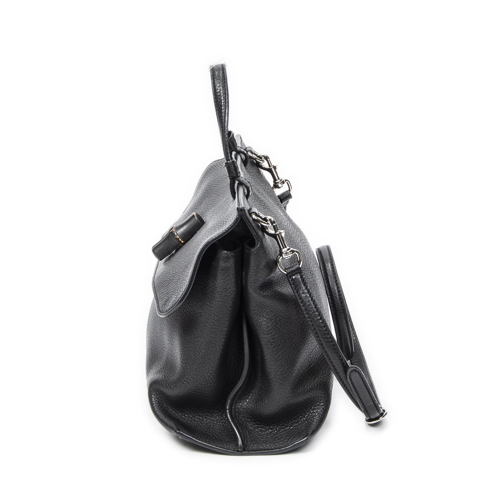 Gucci Sac à bandoulière Medium Bamboo Daily Top Handle en Black et Argent. Le produit est en Excellent état (A).