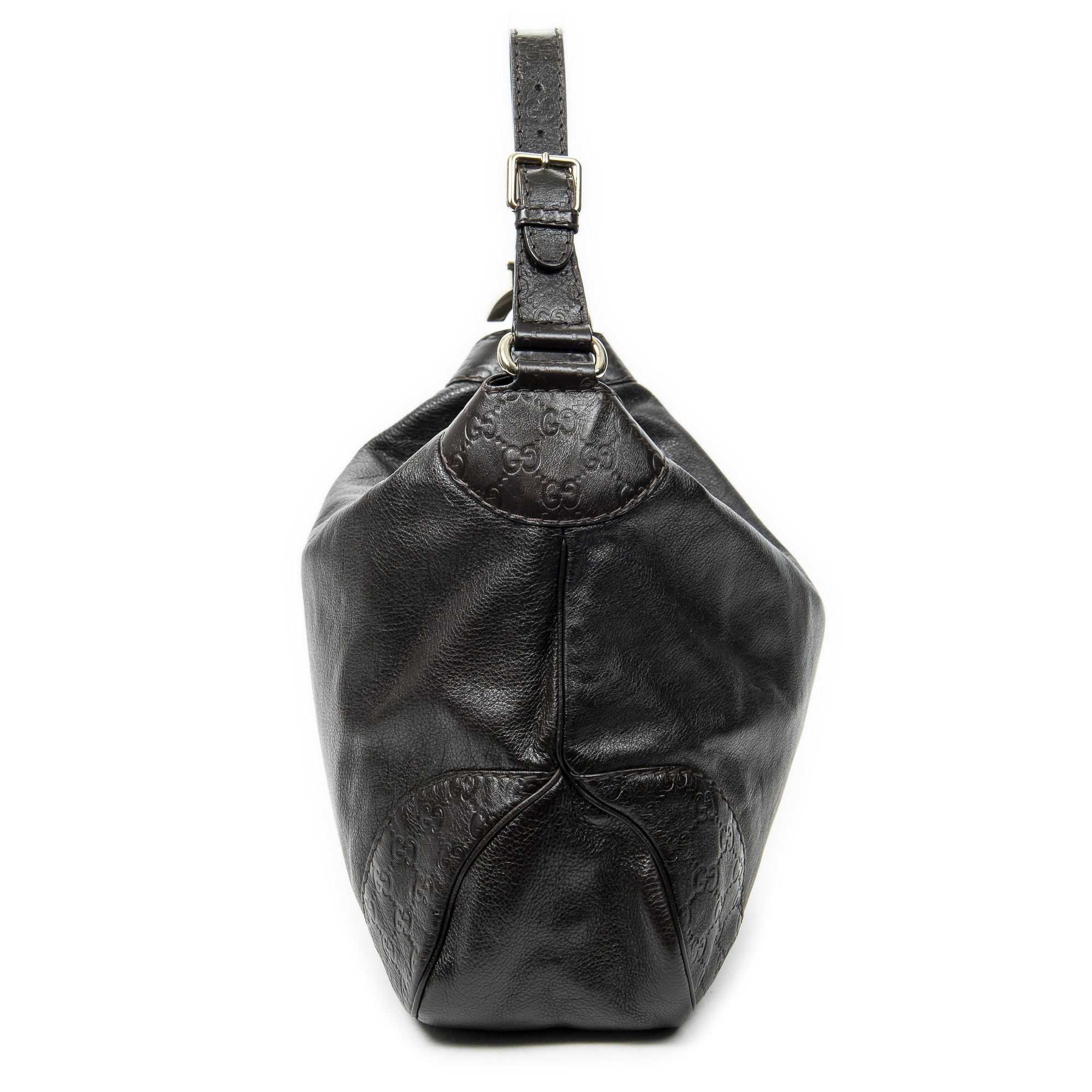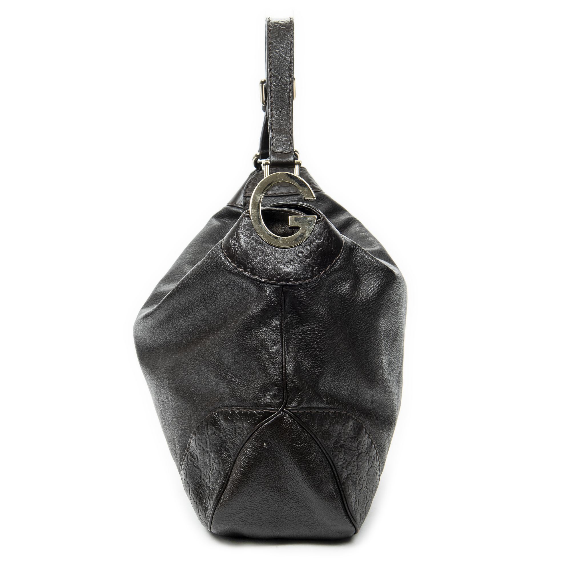 Gucci Sac à bandoulière Medium Charlotte Hobo en Brun foncé et Or. Le produit est en Excellent état (A).