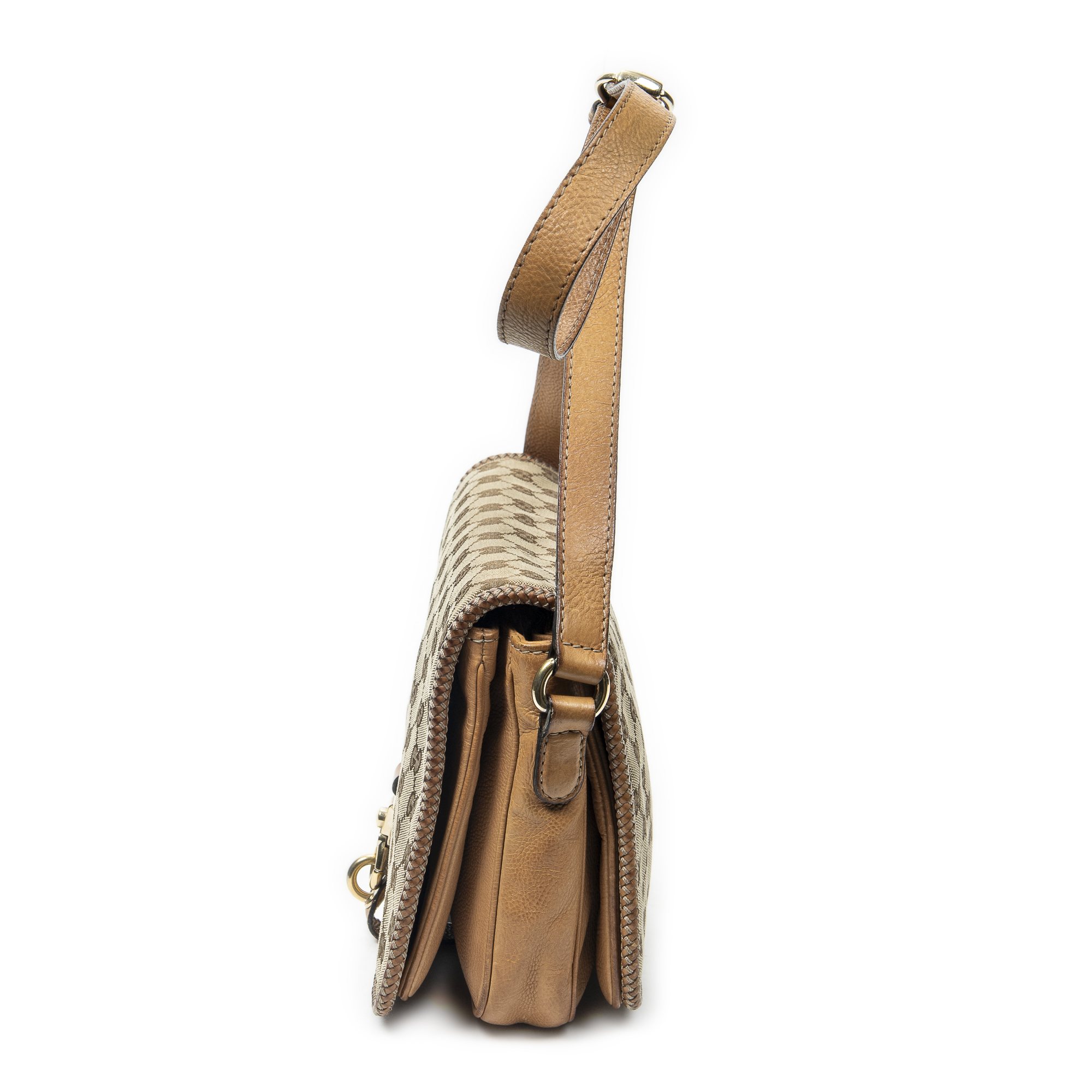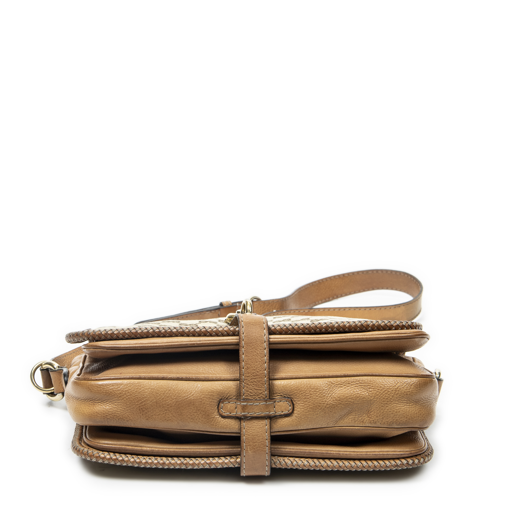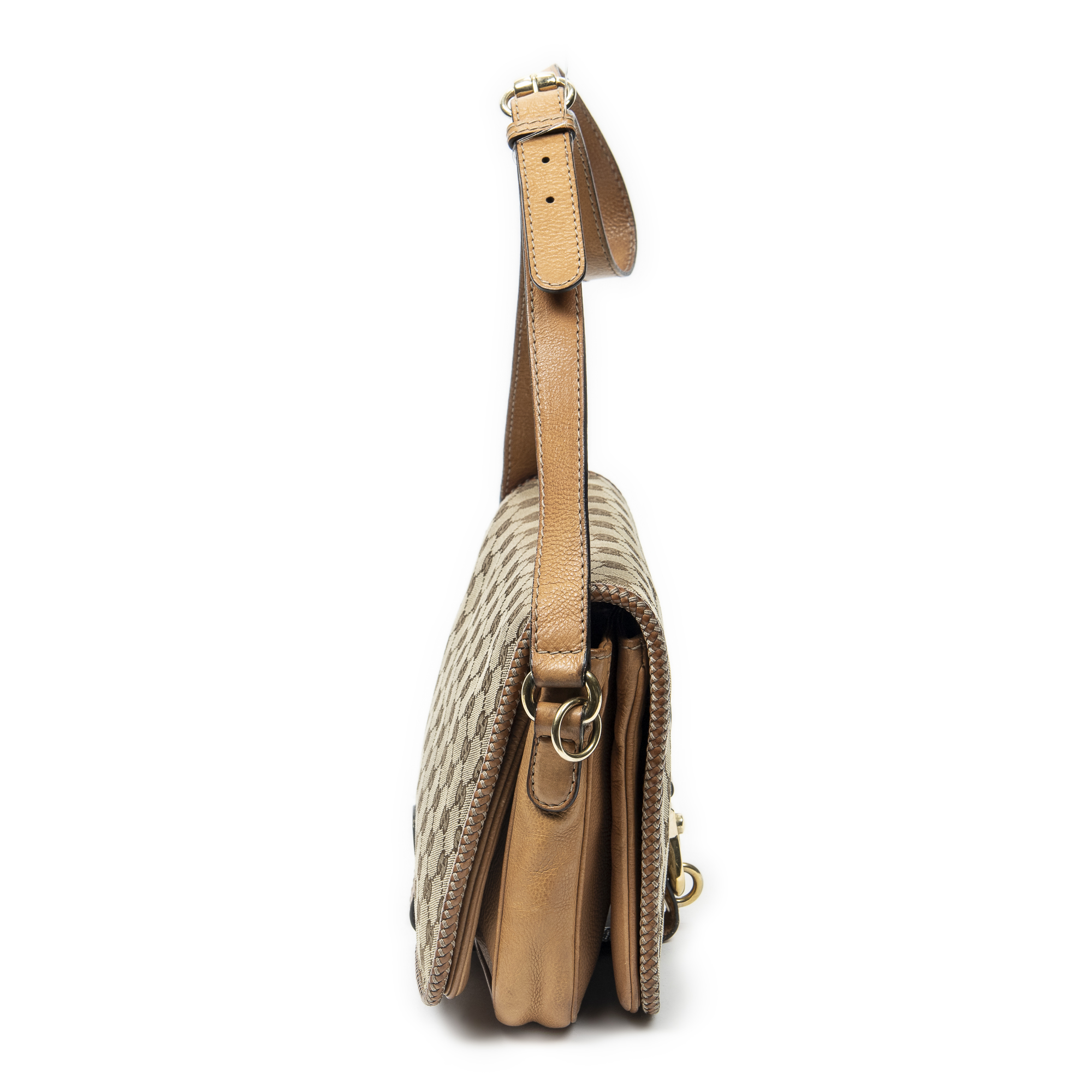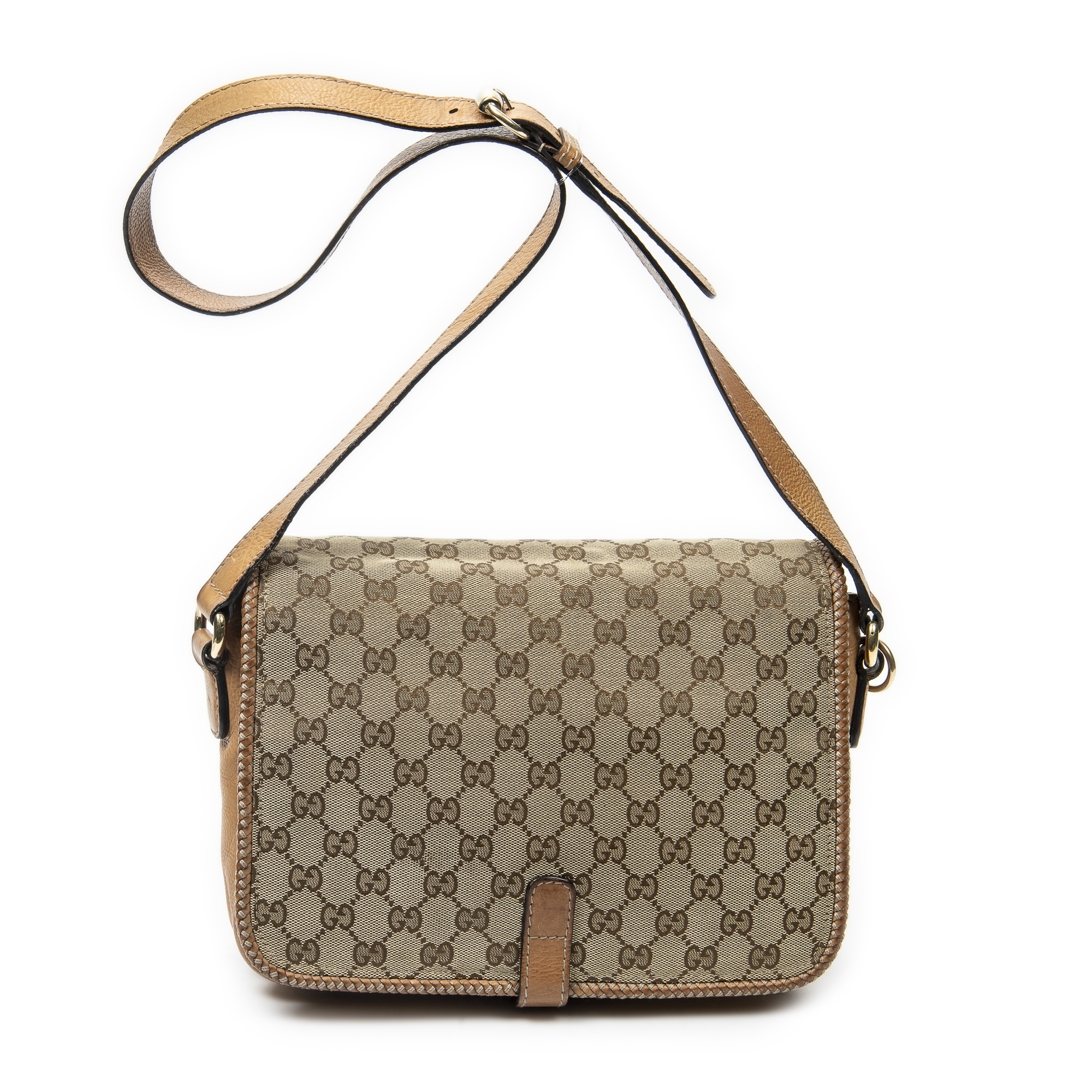 Gucci Sac à bandoulière Medium Marrakech Flap Messenger en Tan/Beige et Gold. Le produit est en Très Bon état (AB).