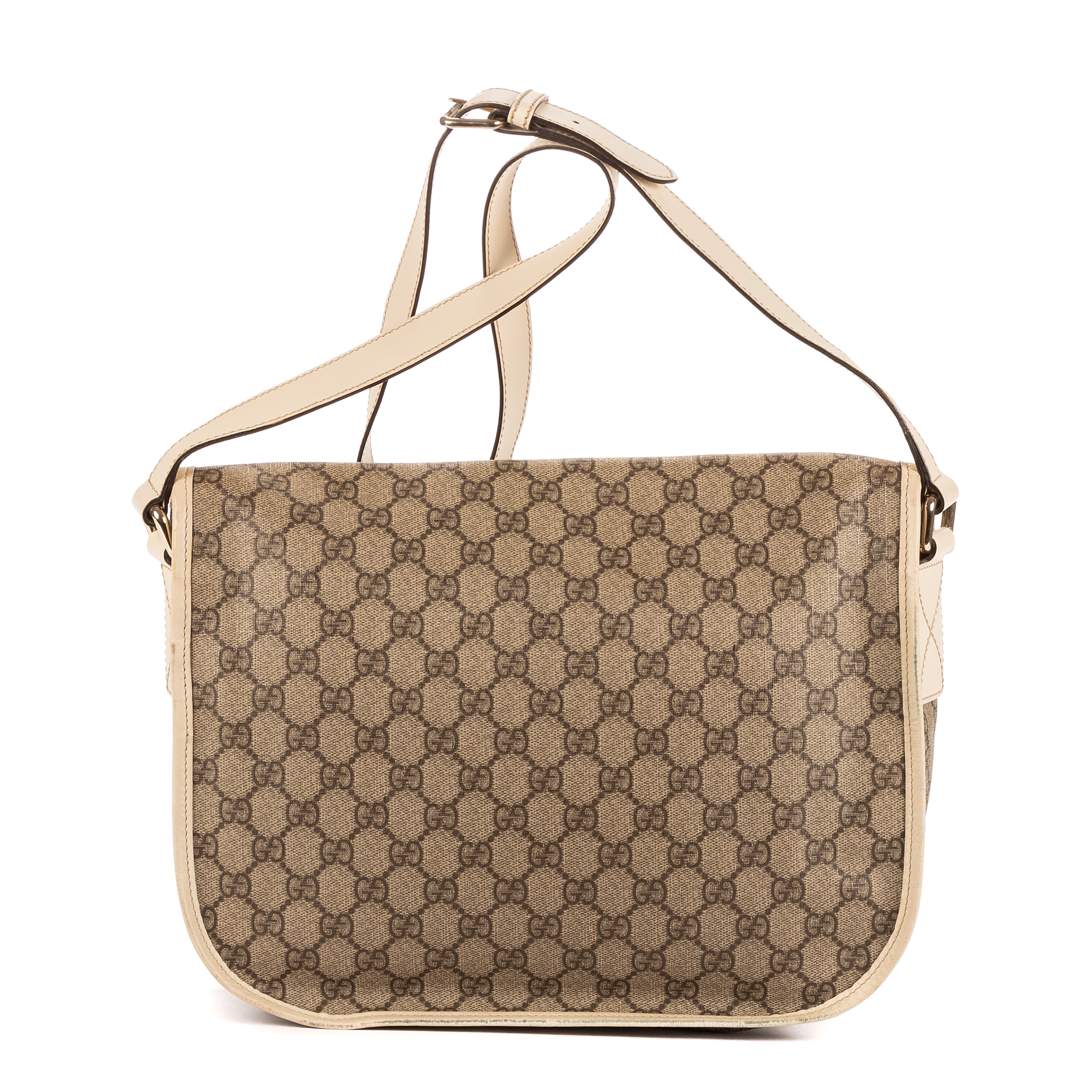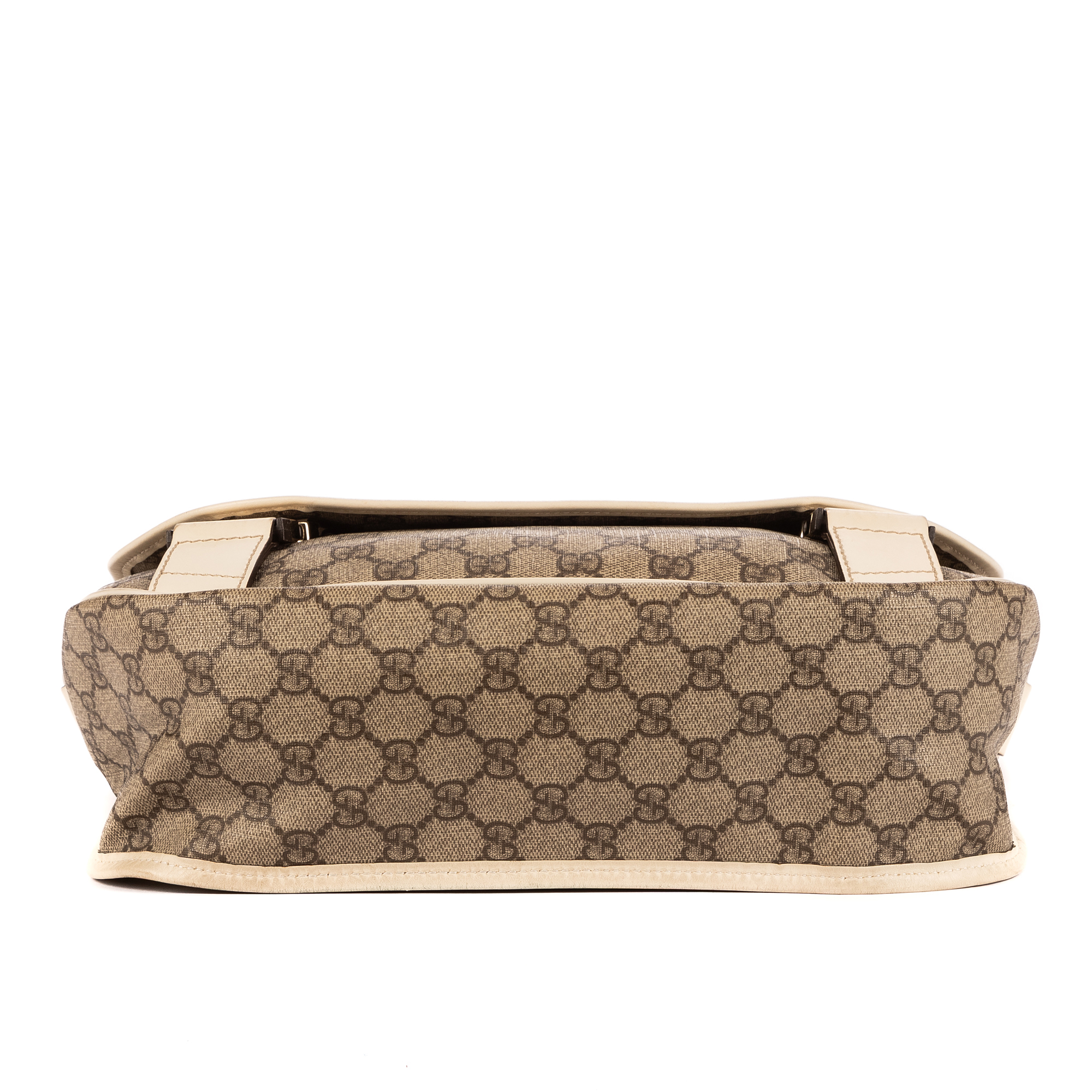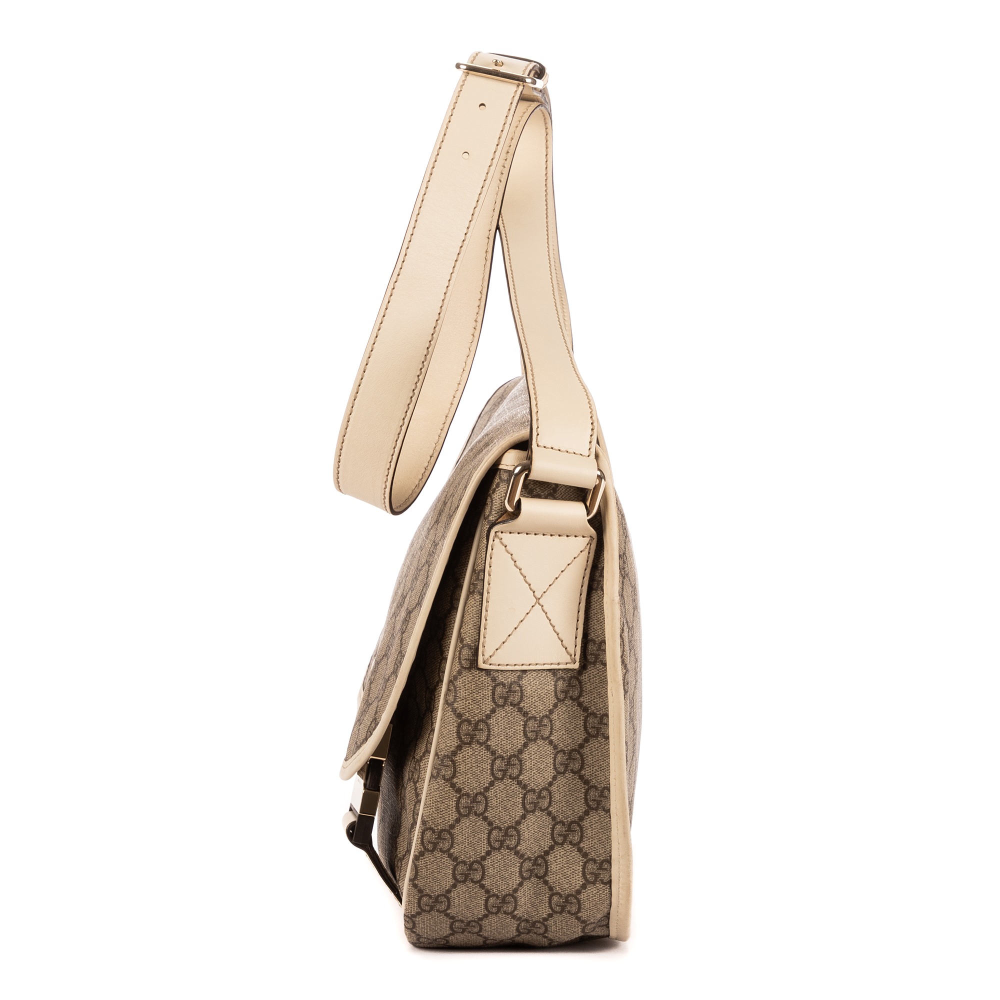 Gucci Sac à bandoulière Messenger en Beige/Blanc et Argent. Le produit est en Parfait état (AA).