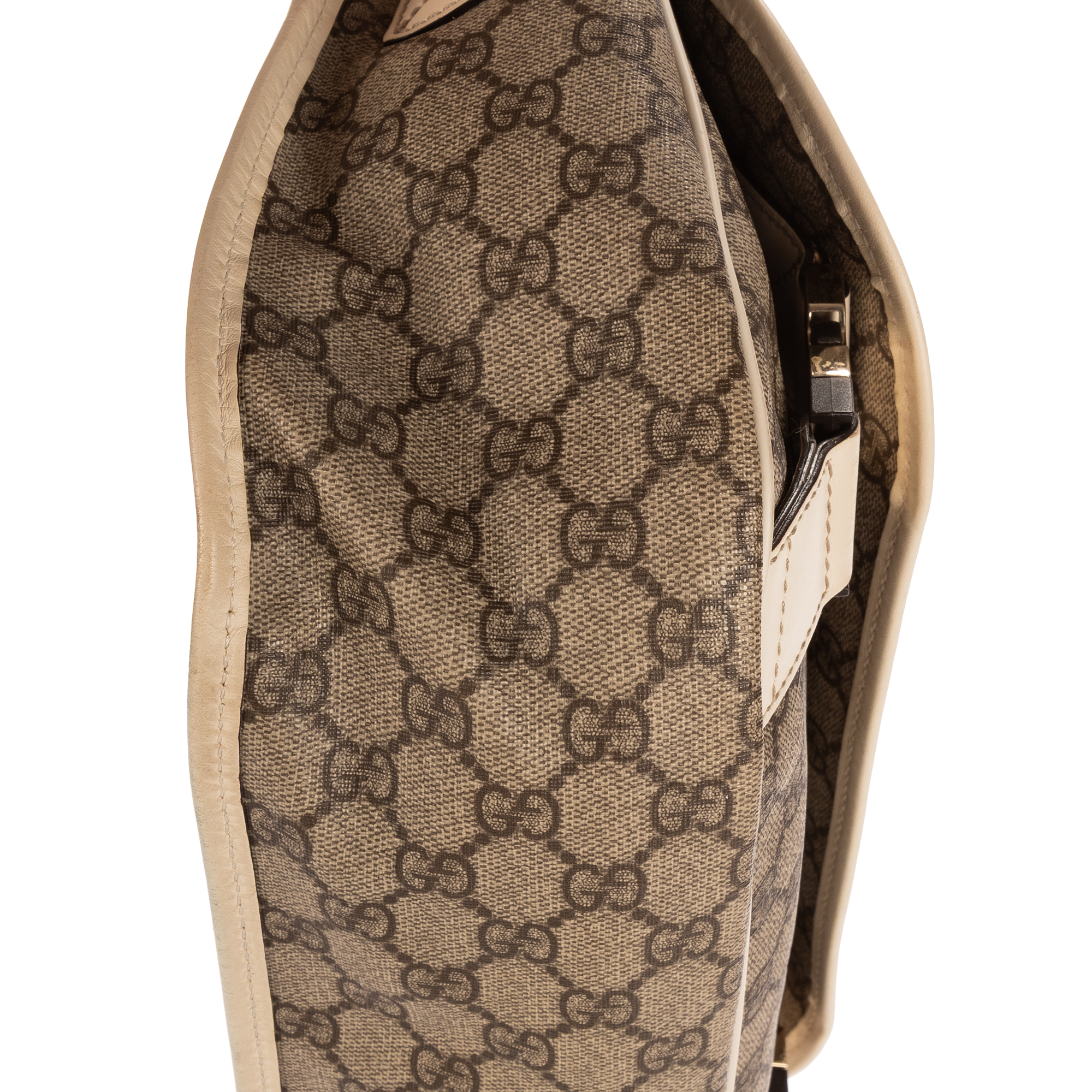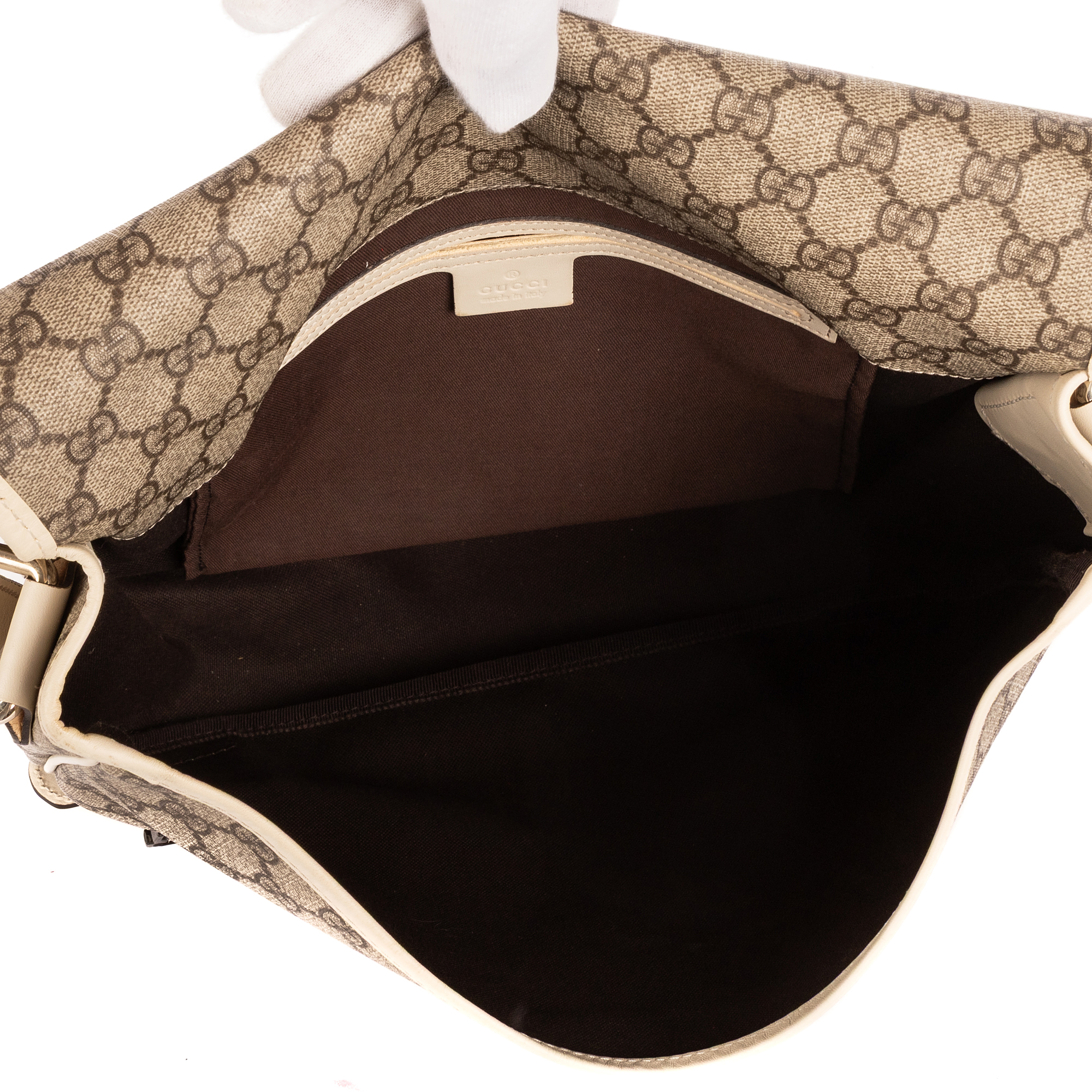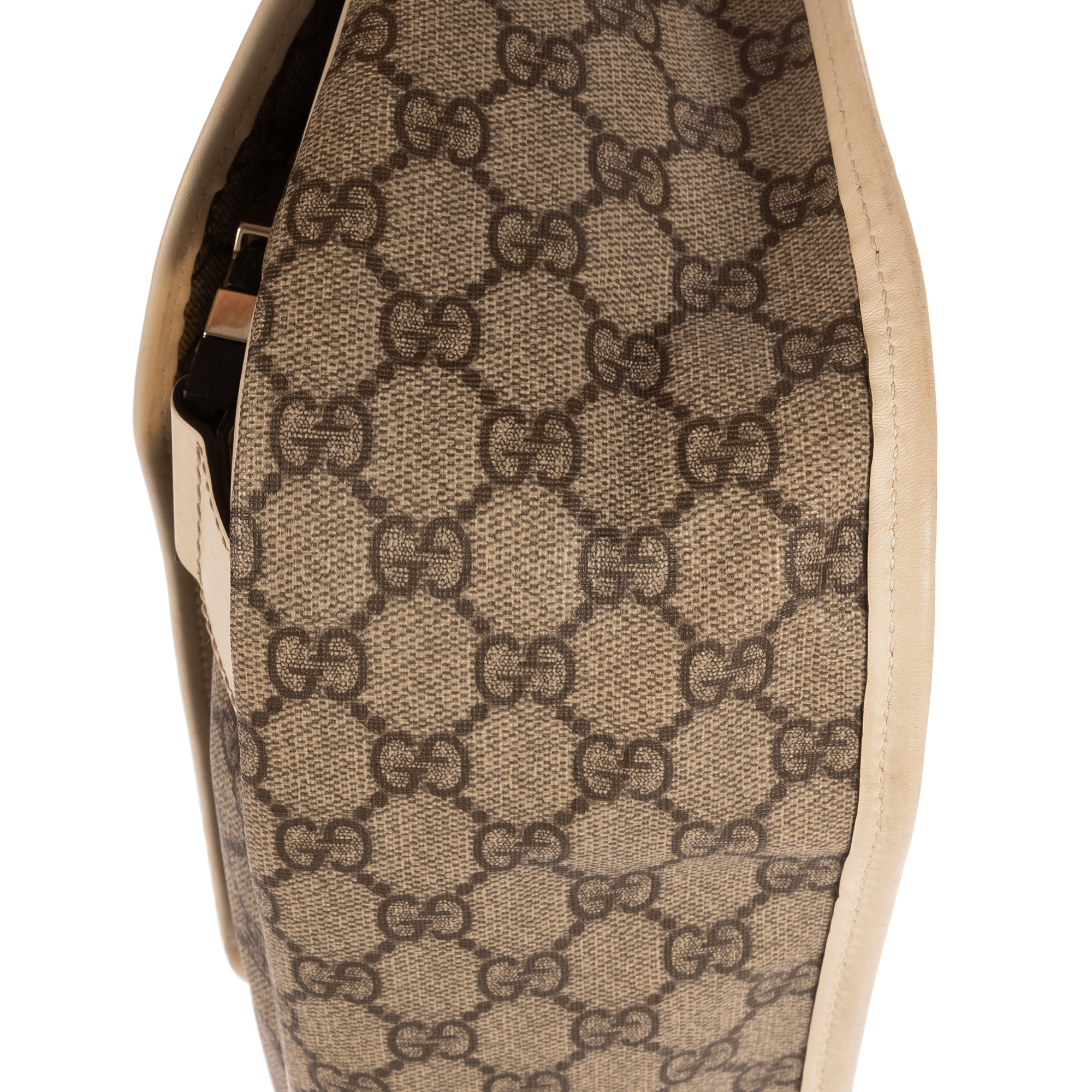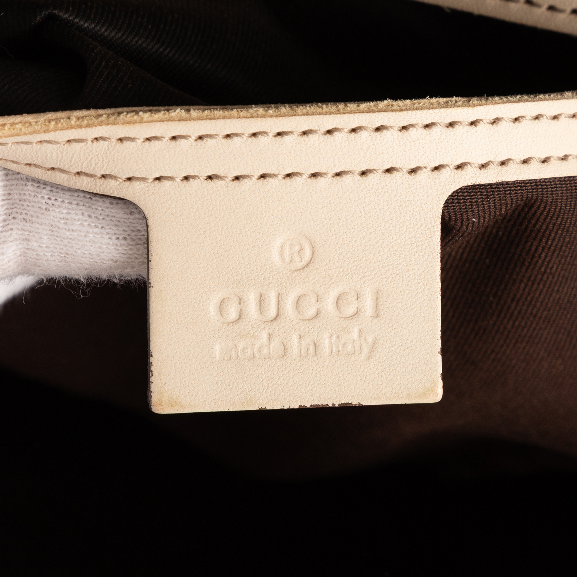 Gucci Sac à bandoulière Messenger en Beige/Blanc et Argent. Le produit est en Parfait état (AA).
