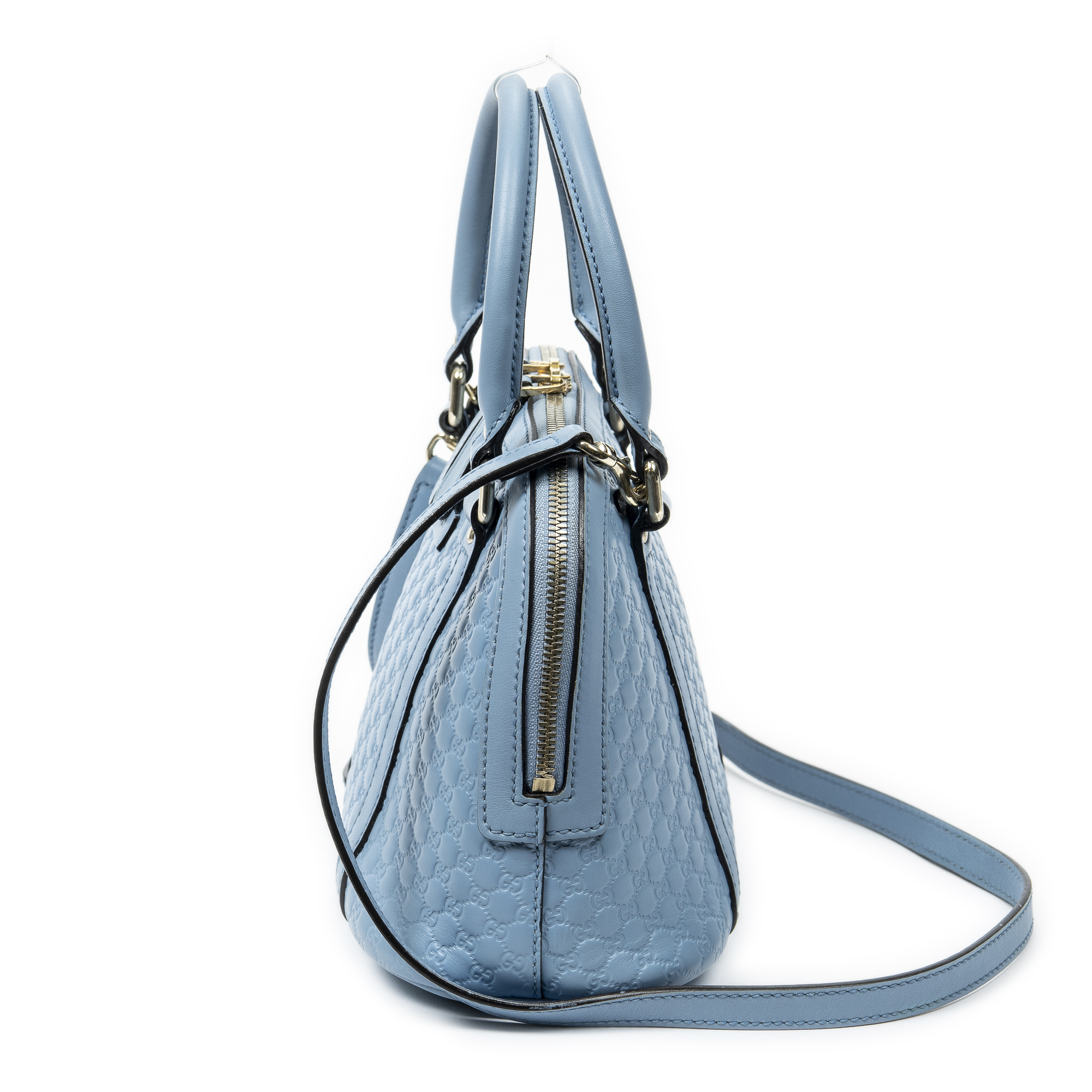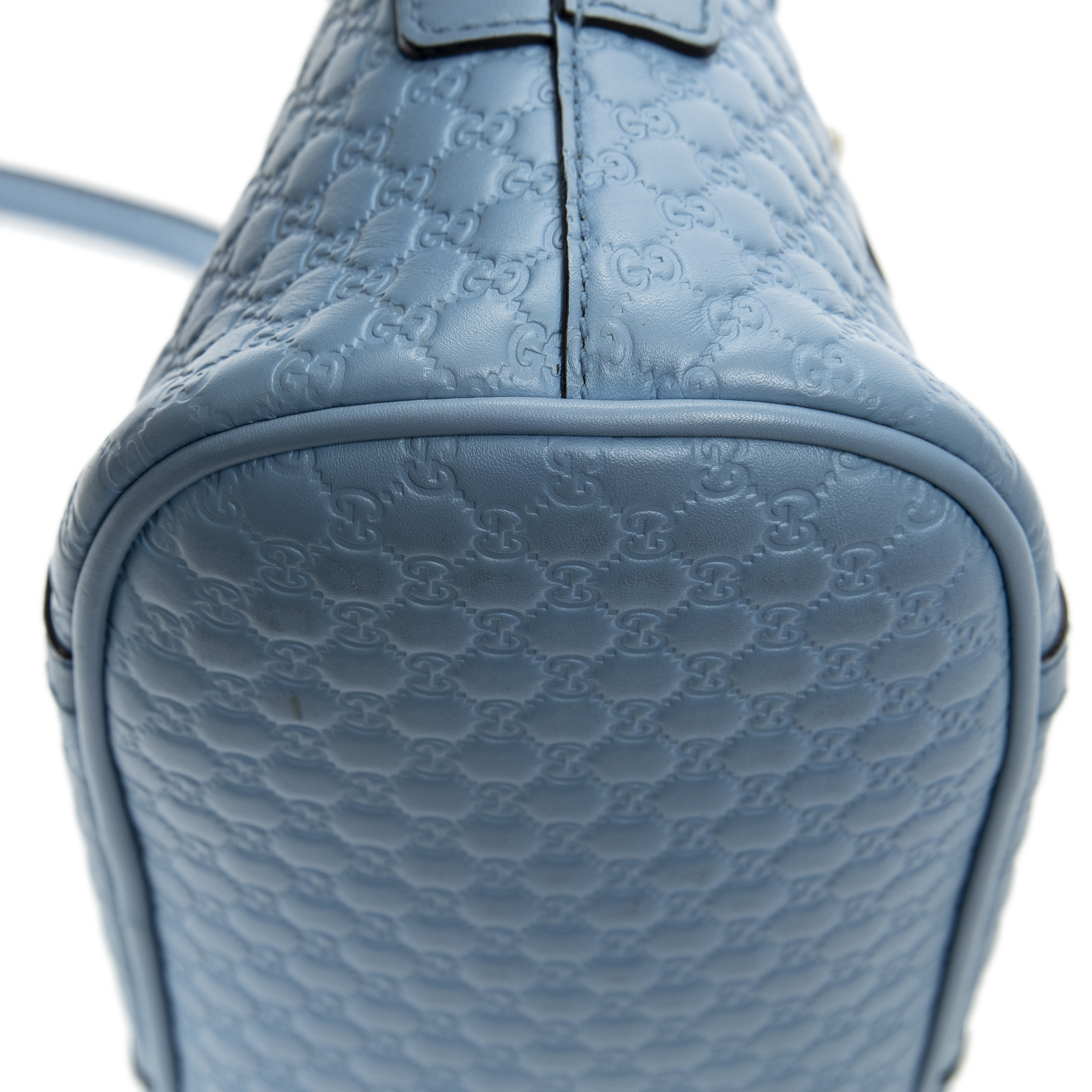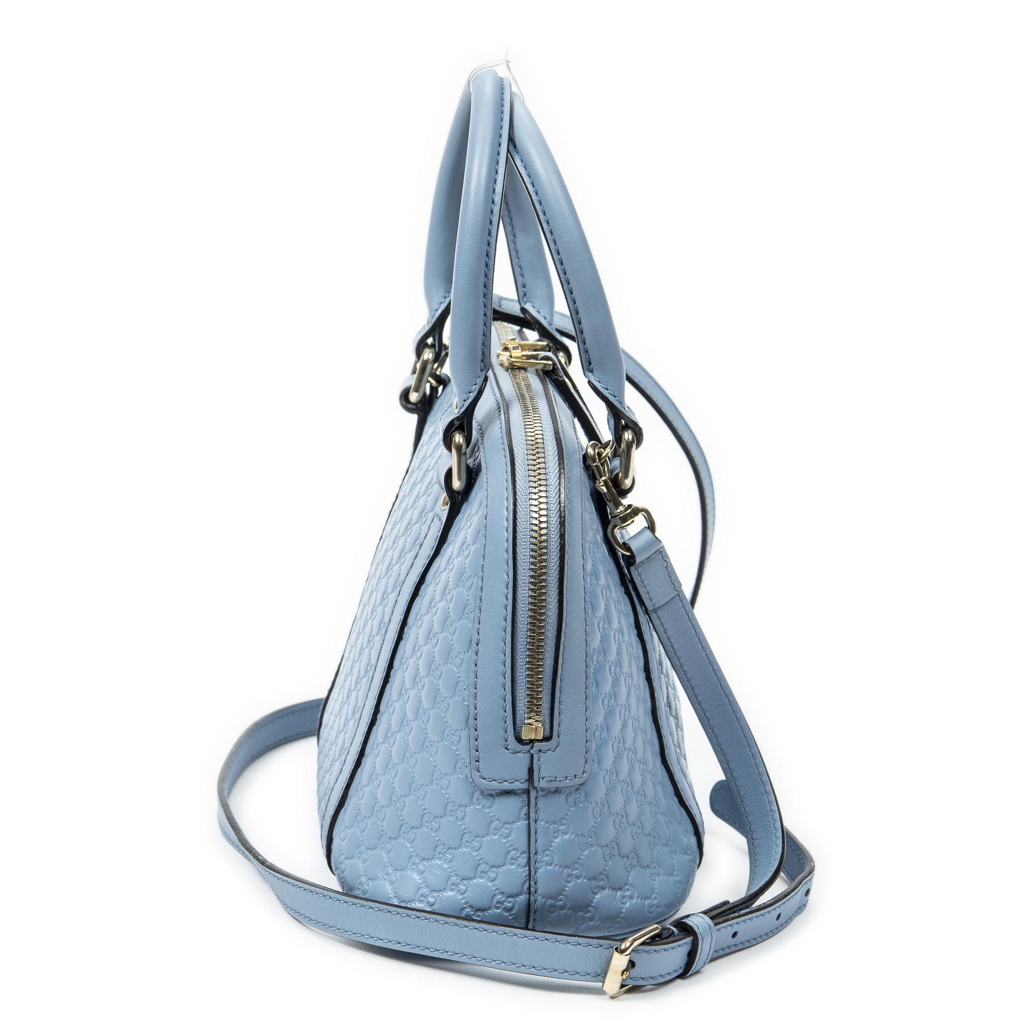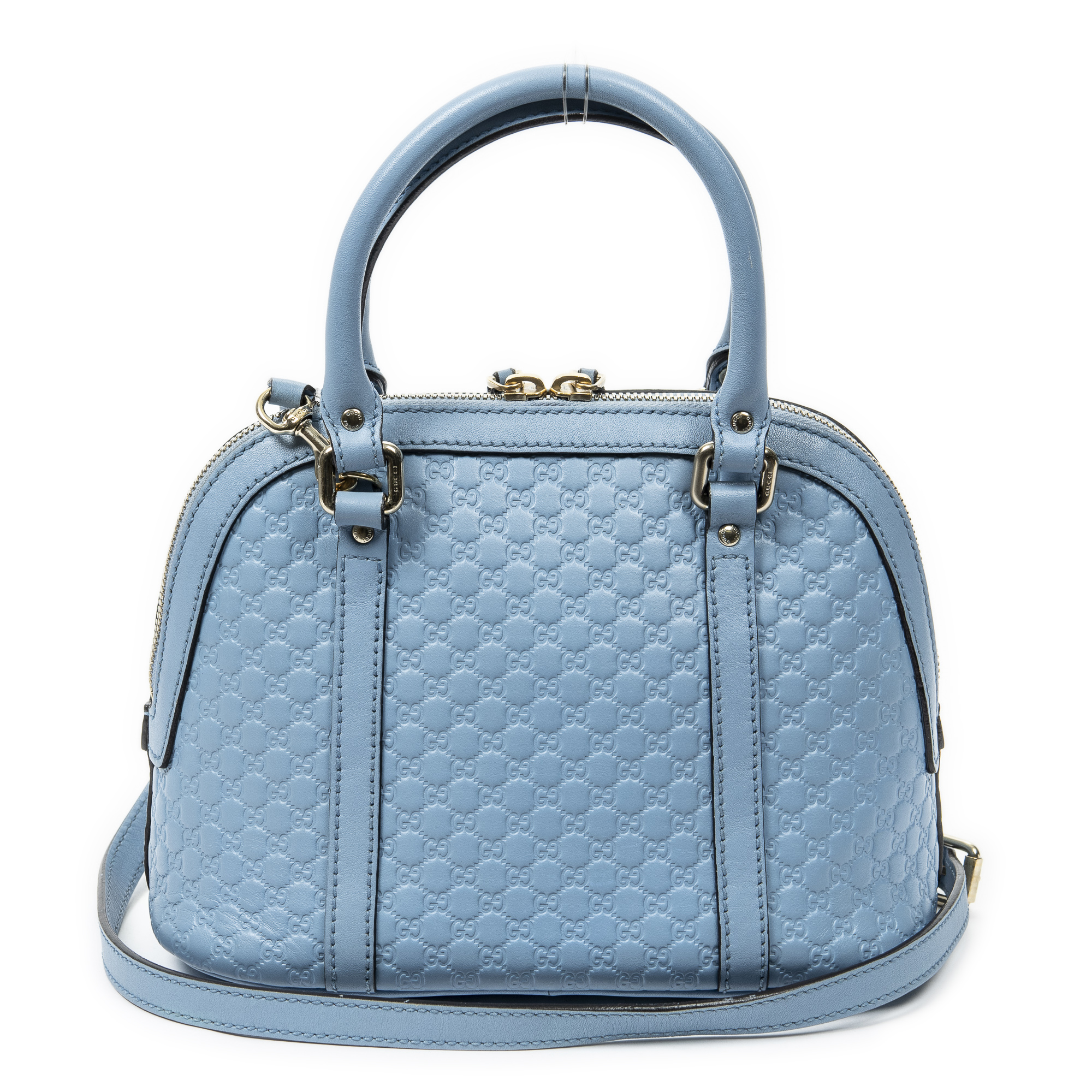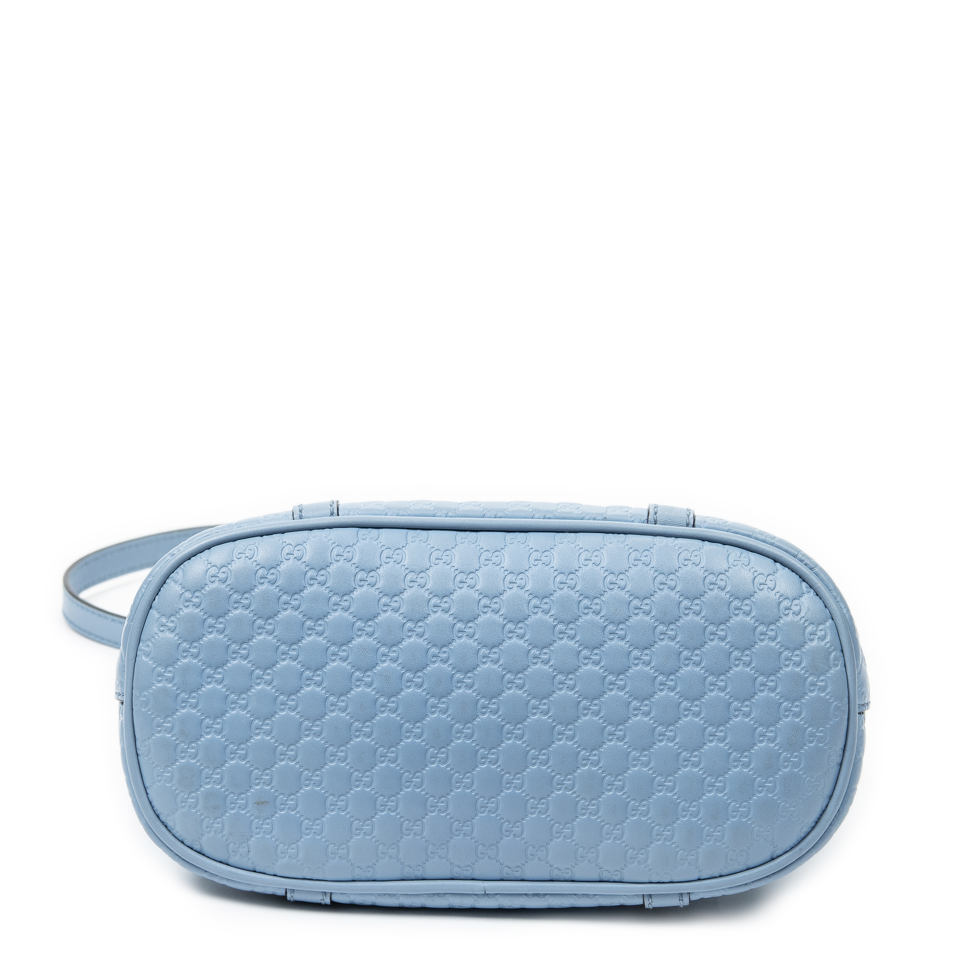 Gucci Sac à bandoulière Mini Dome Tote en Bleu clair et Gold. Le produit est en Parfait état (AA).