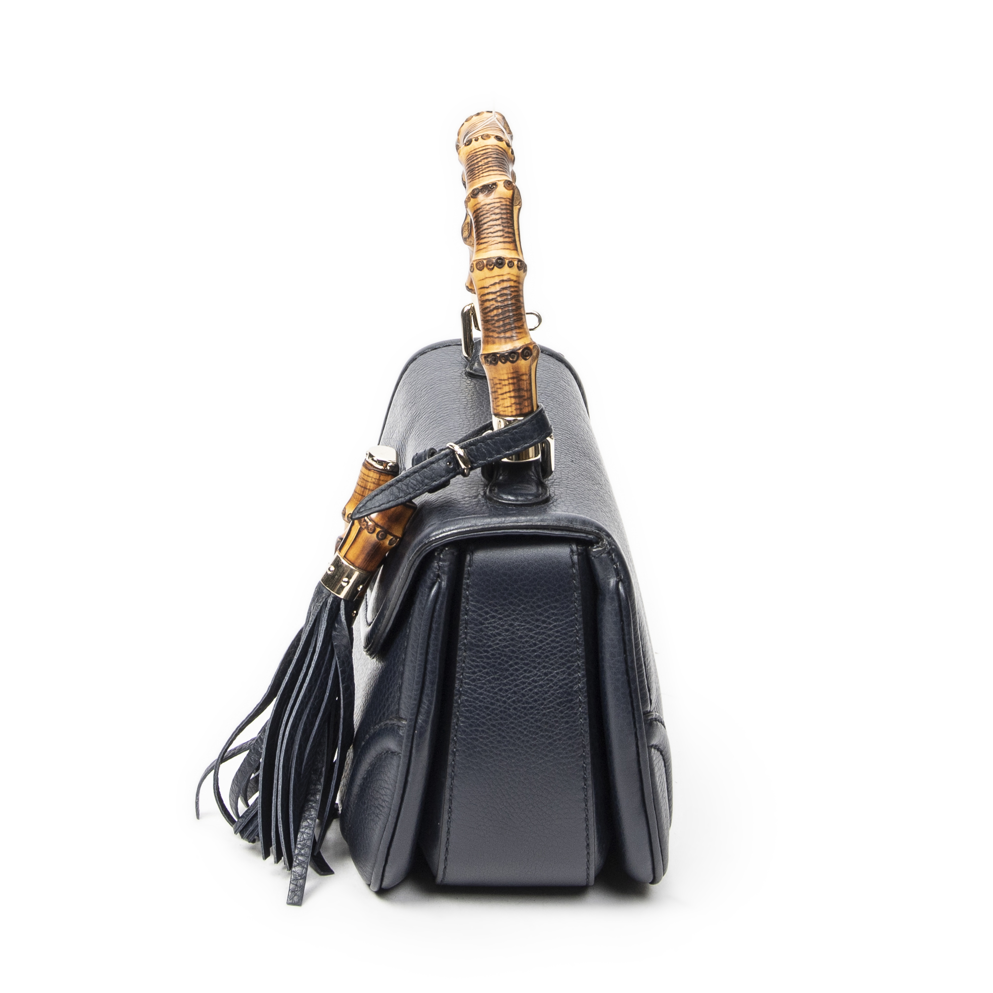 Gucci Sac à bandoulière New Bamboo Top Handle Flap en Marine et Gold. Le produit est en Parfait état (AA).