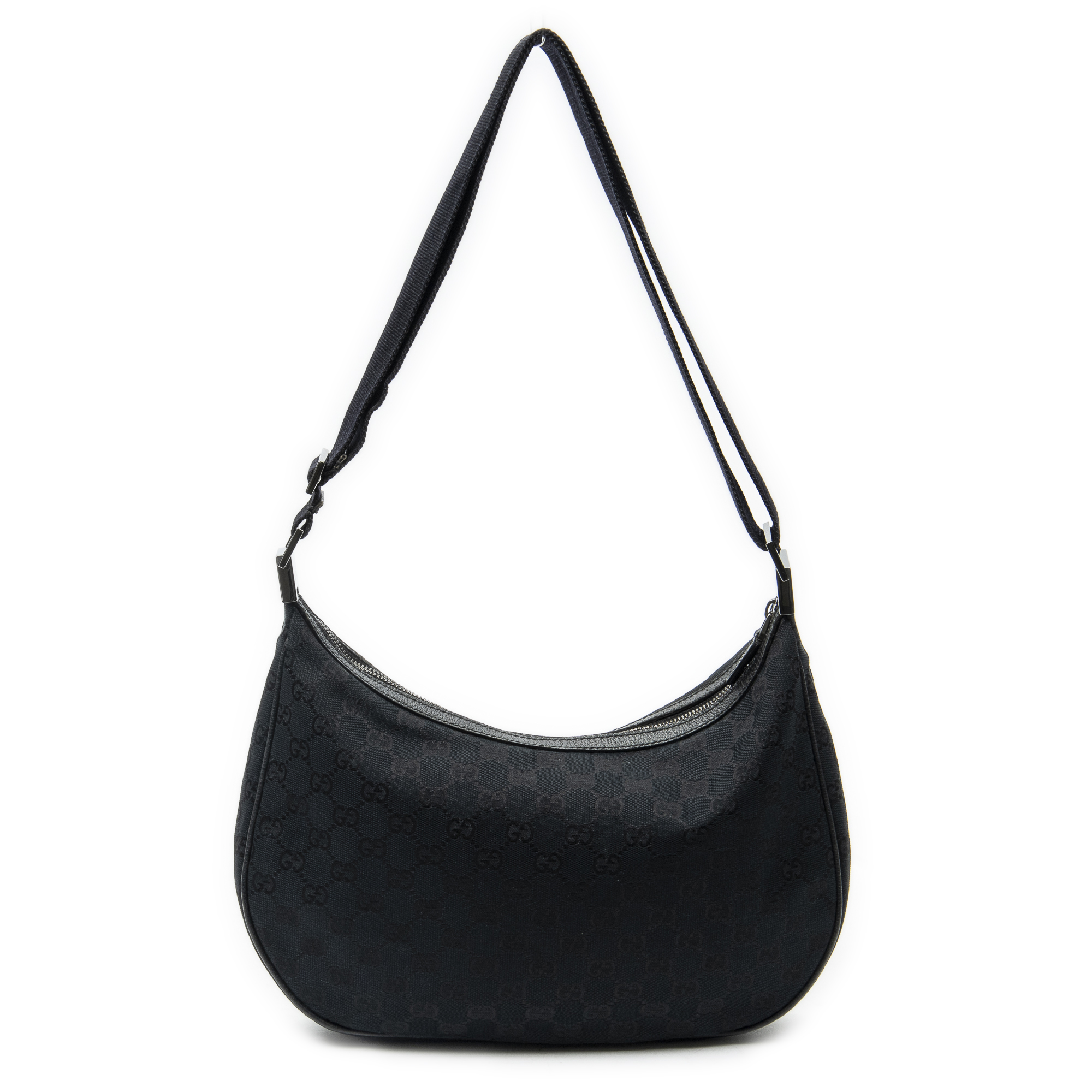 Gucci Sac à bandoulière Round Zip Messenger en Black et Argent. Le produit est en Parfait état (AA).