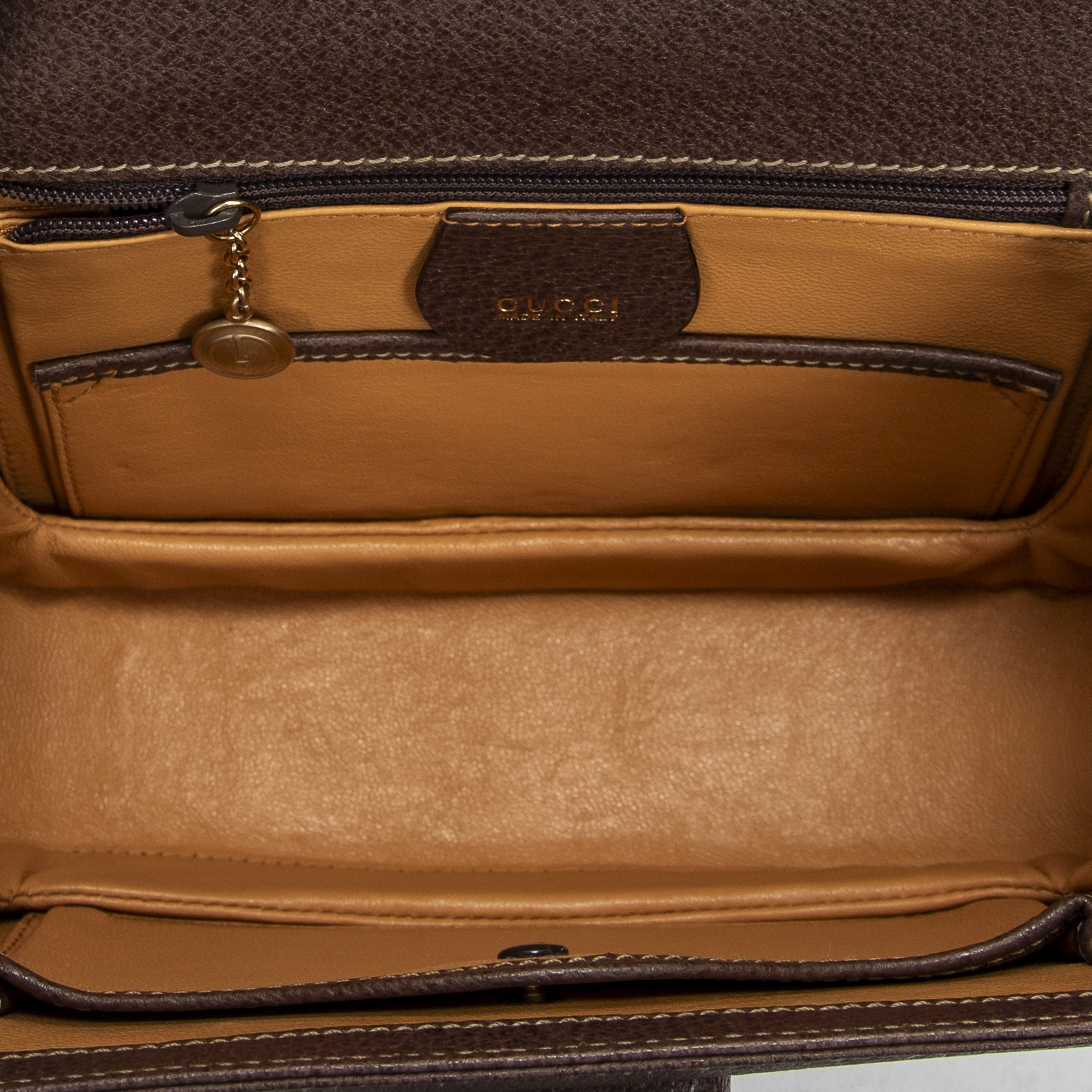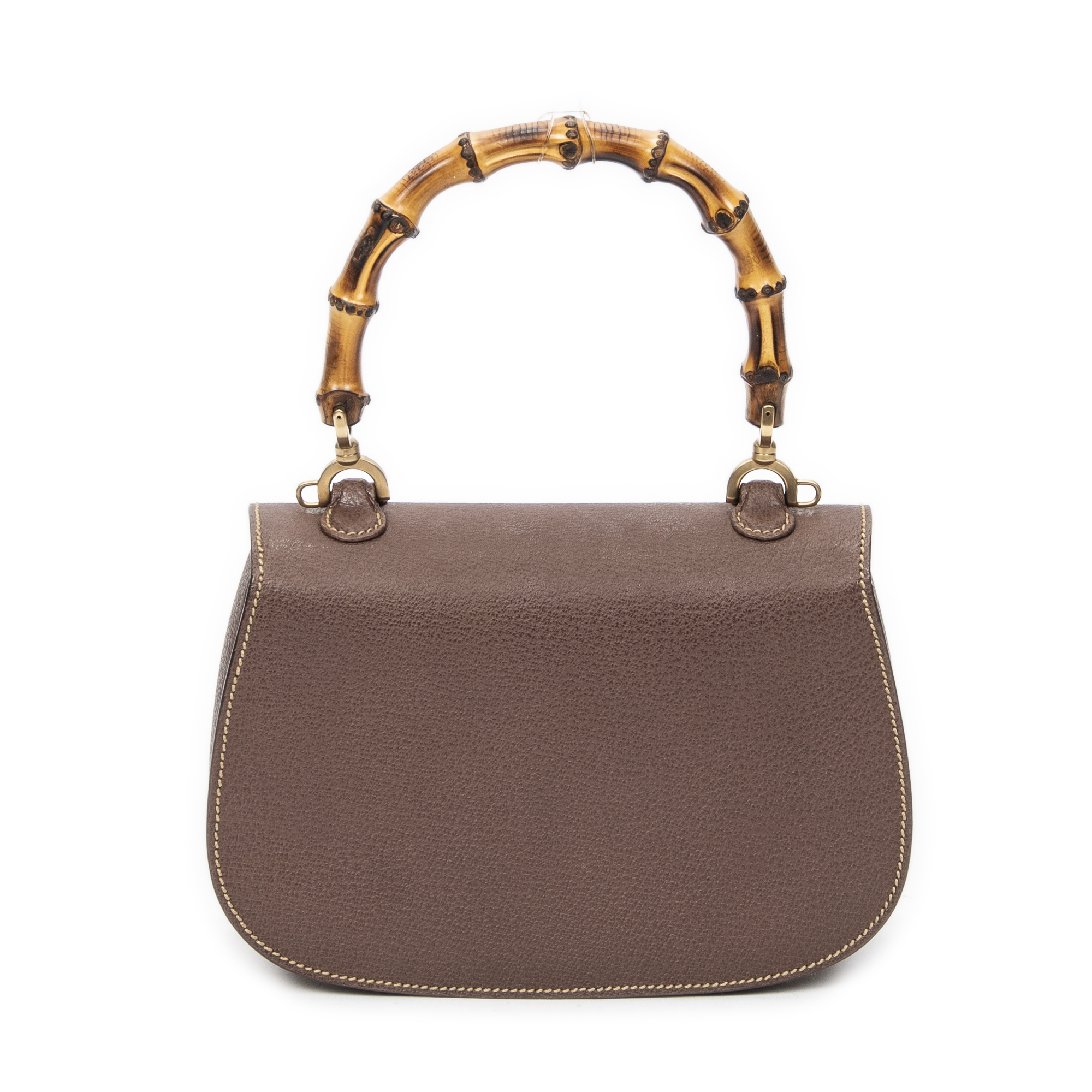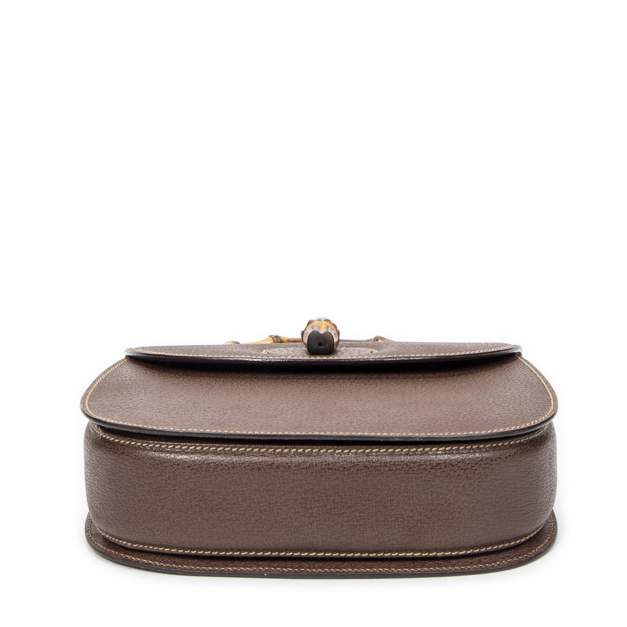 Gucci Sac à bandoulière Small Bamboo Top Handle Flap en Du cuir de veau Brown et Gold. Le produit est en Parfait état (AA).
