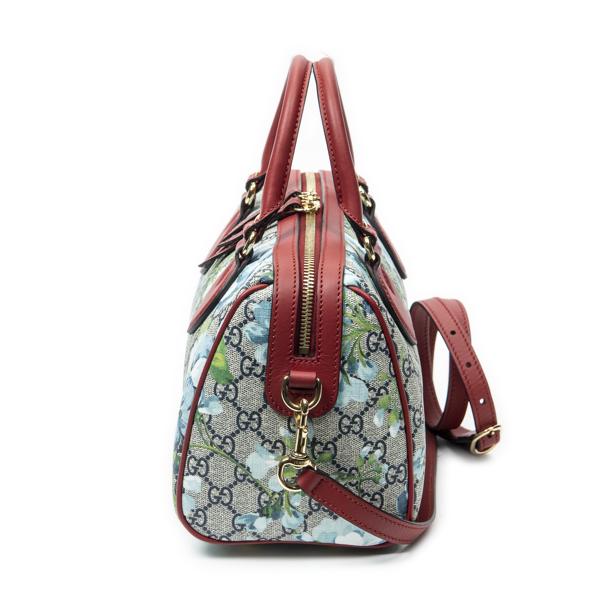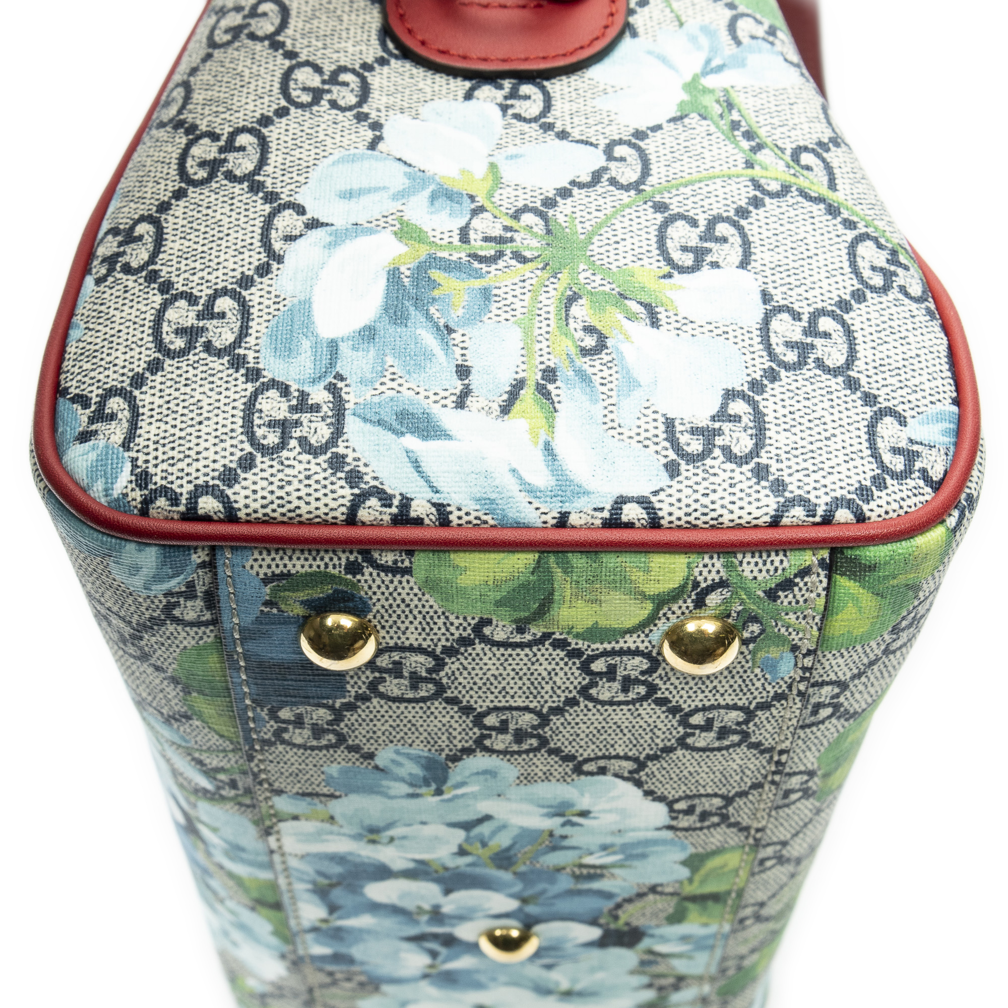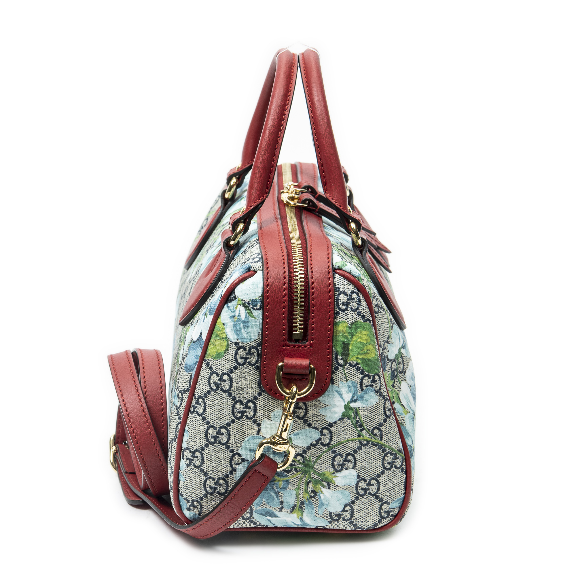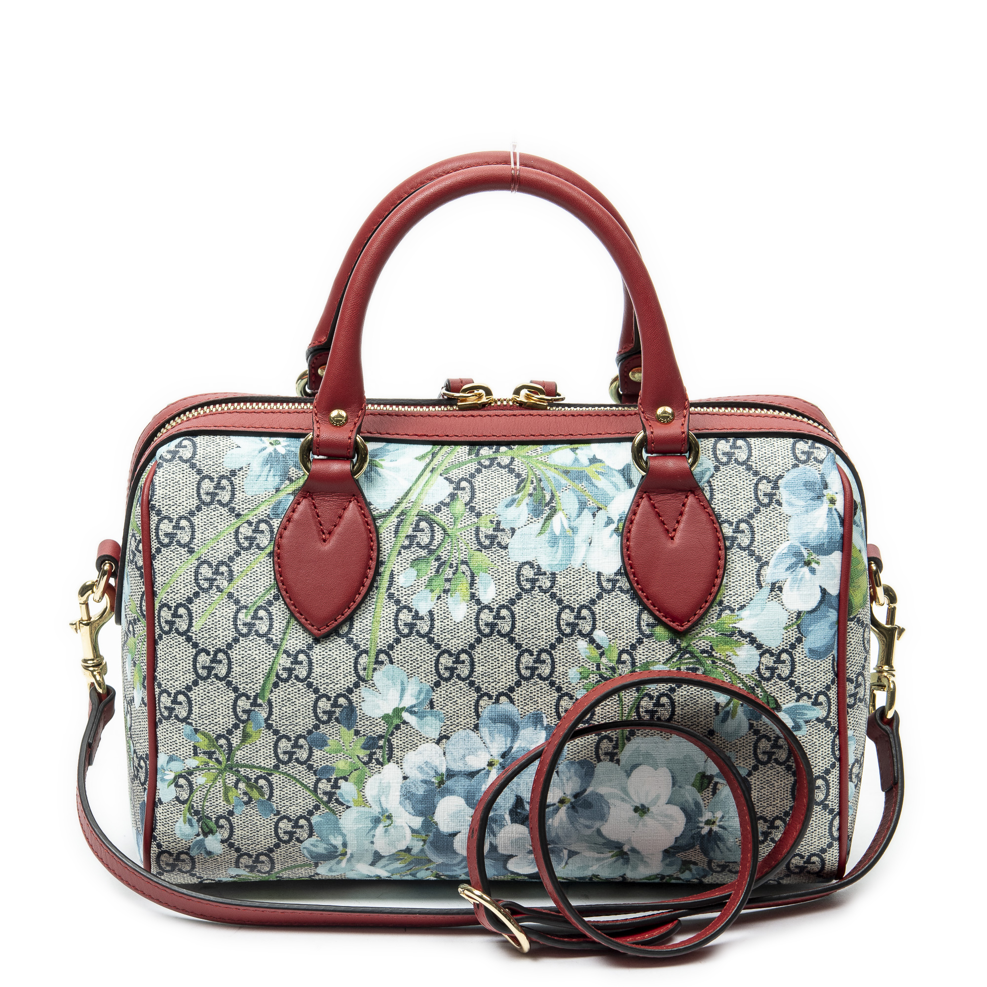 Gucci Sac à bandoulière Small Boston Bag en Rouge/Bleu/Beige et Gold. Le produit est en Excellent état (A).