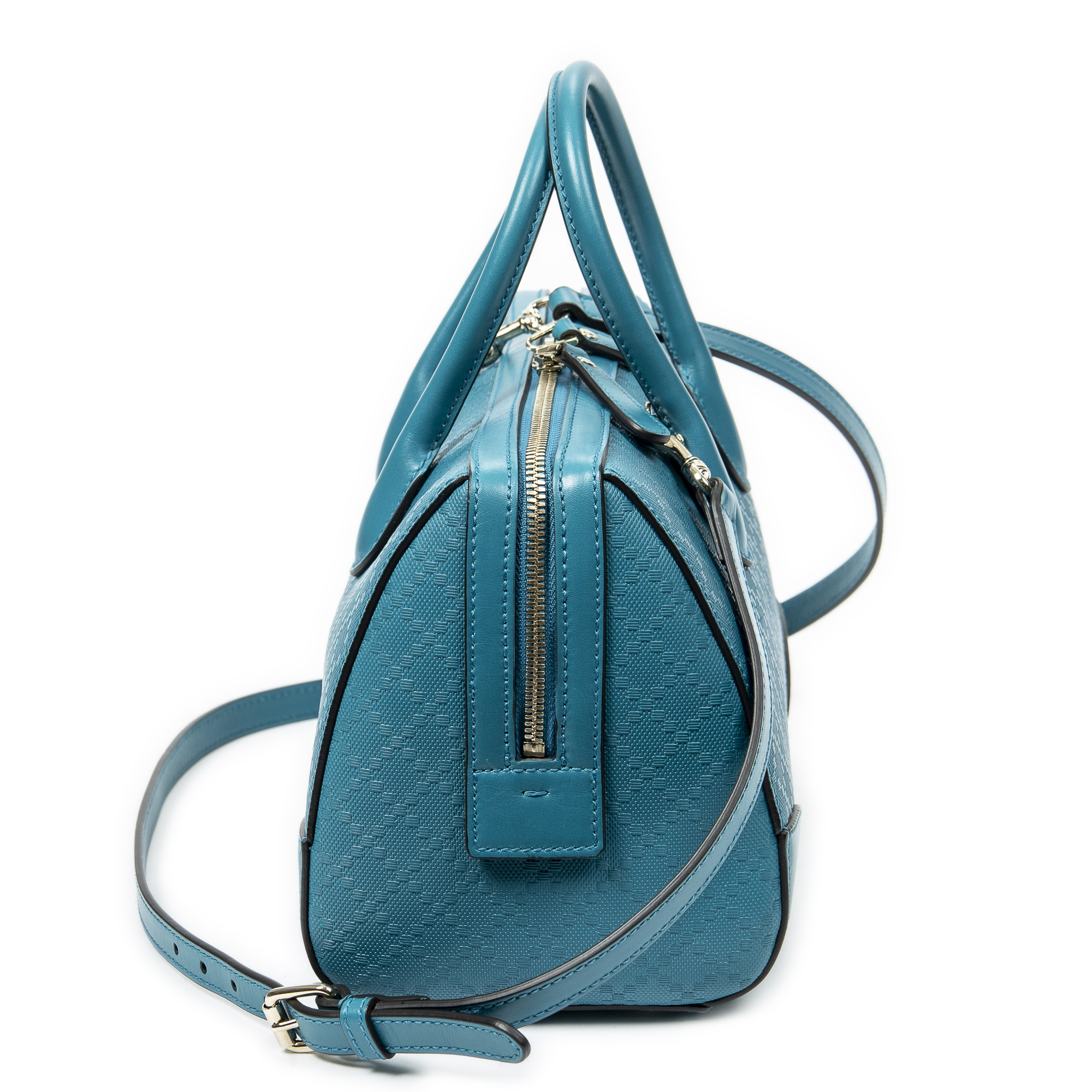 Gucci Sac à bandoulière Small Boston en Blue et Gold. Le produit est en Excellent état (A).