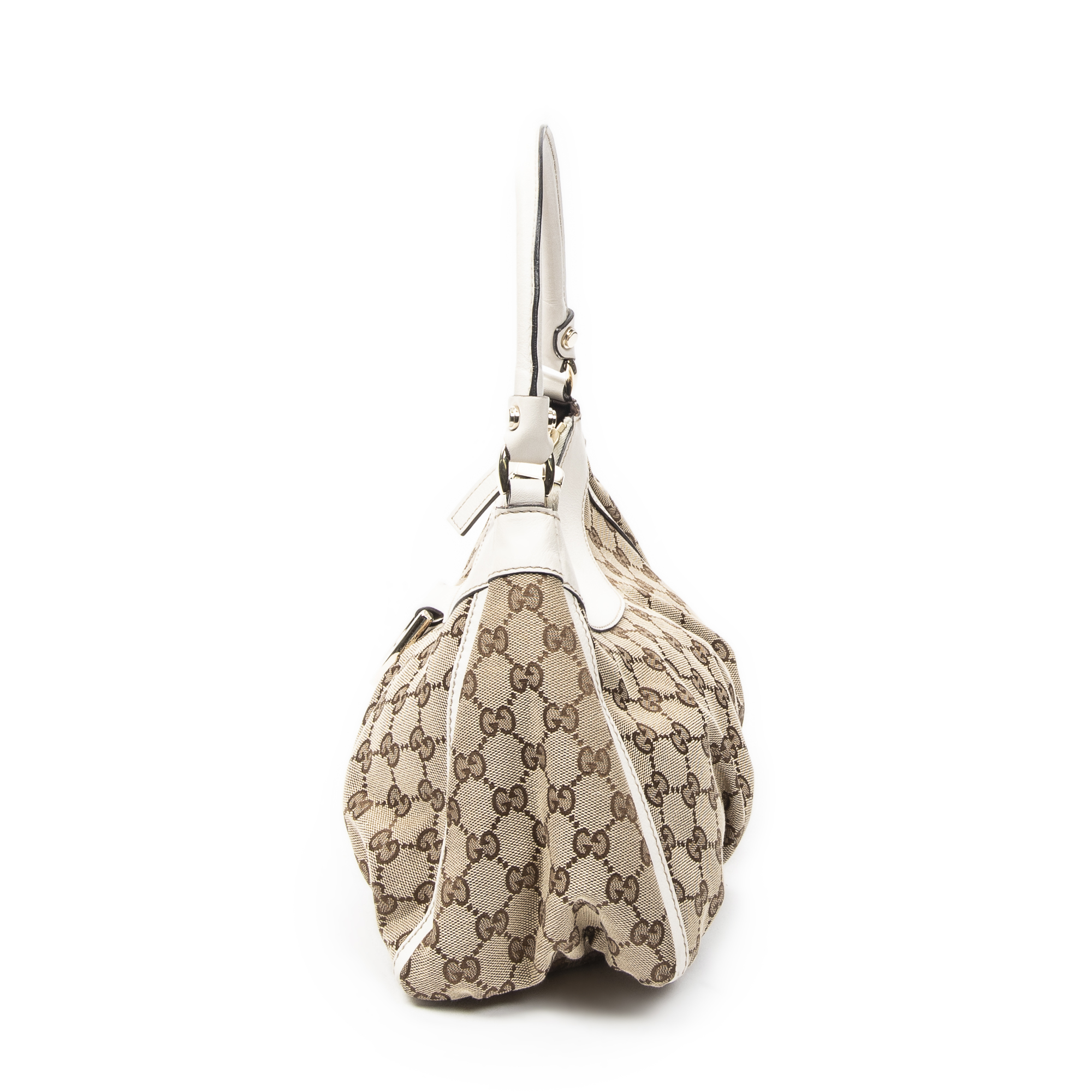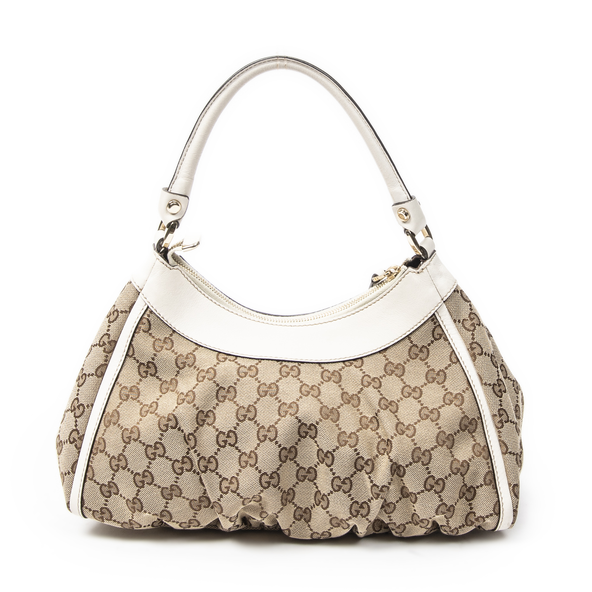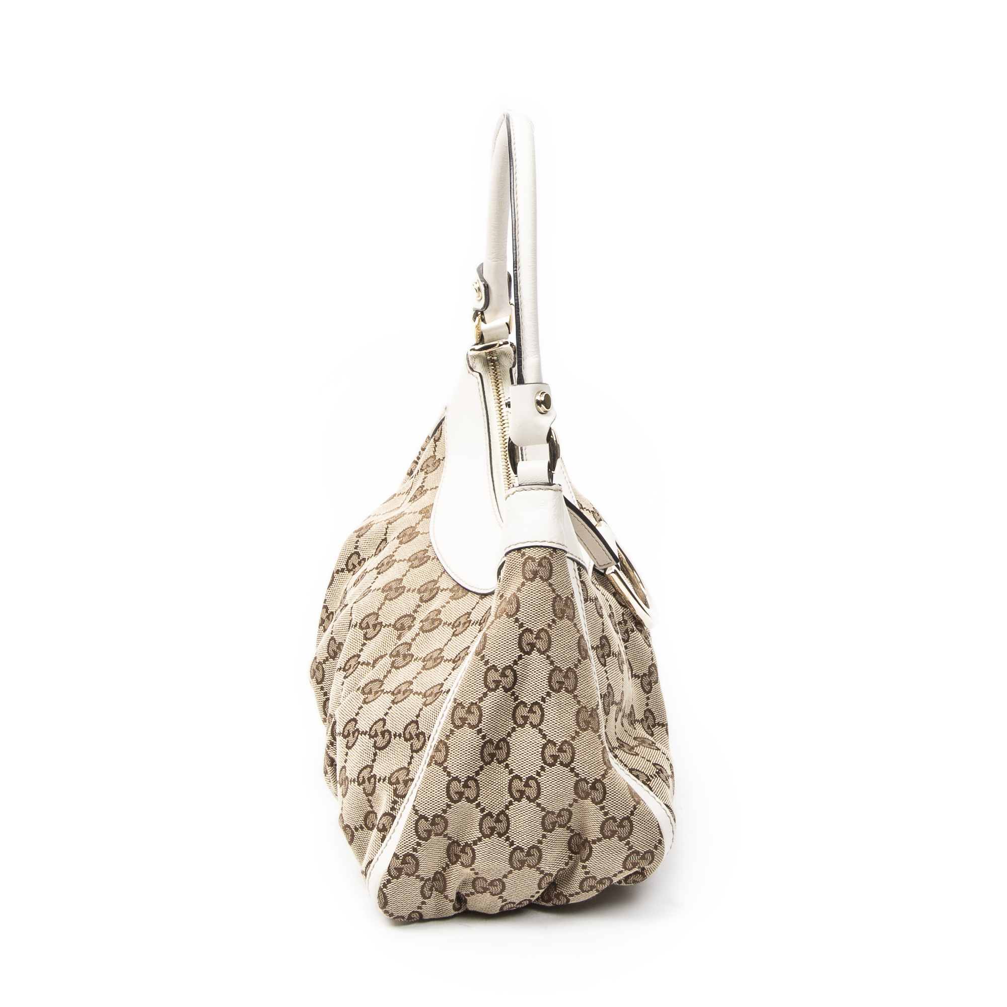 Gucci Sac à bandoulière Small D-Ring Hobo en Beige/Ivoire et Gold. Le produit est en Excellent état (A).