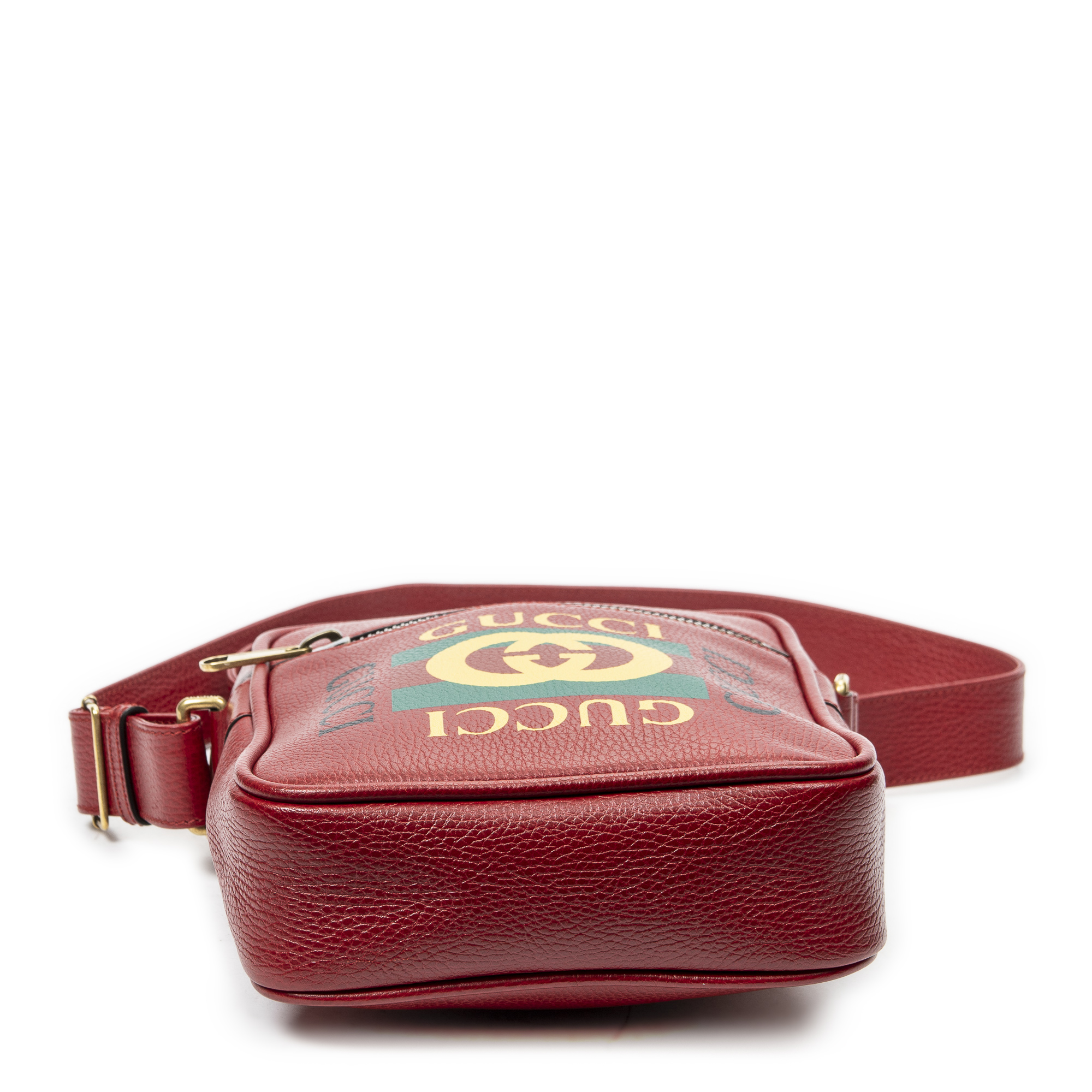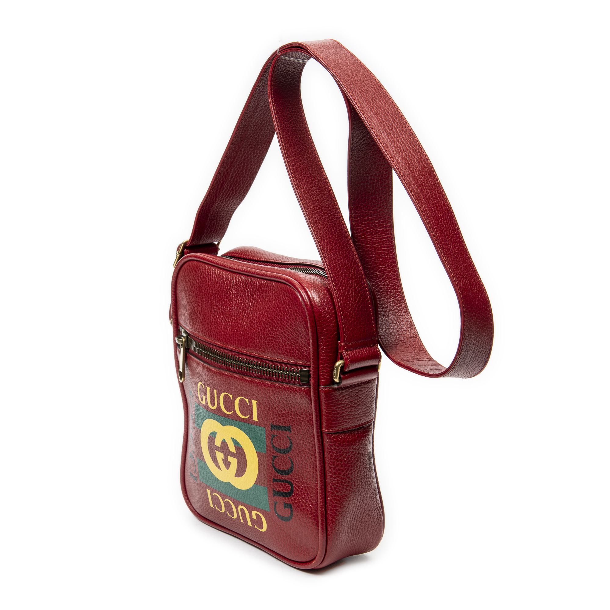 Gucci Sac à bandoulière Small Logo Messenger en Red et Gold. Le produit est en Parfait état (AA).