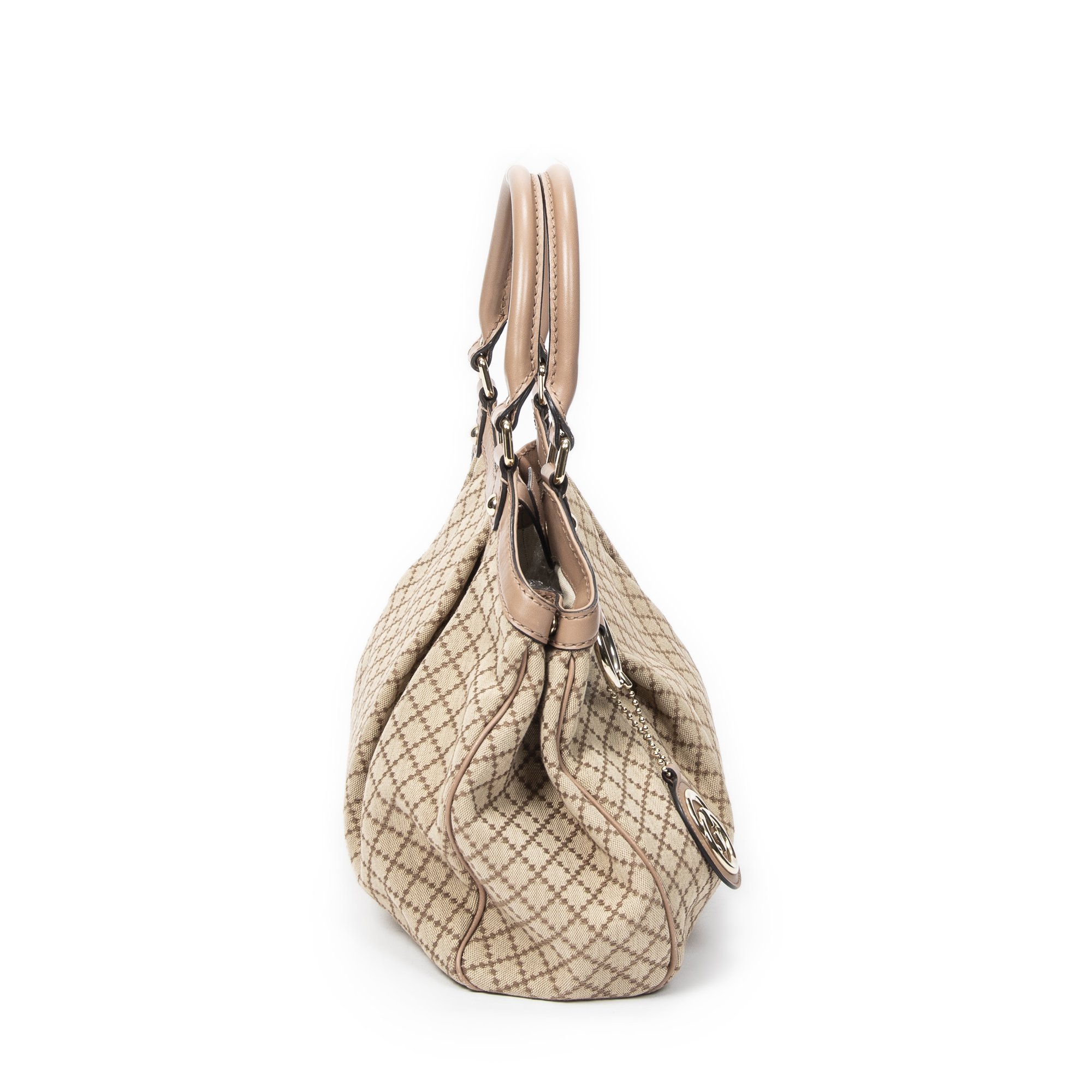 Gucci Sac à bandoulière Small Sukey Tote en Beige et Gold. Le produit est en Excellent état (A).