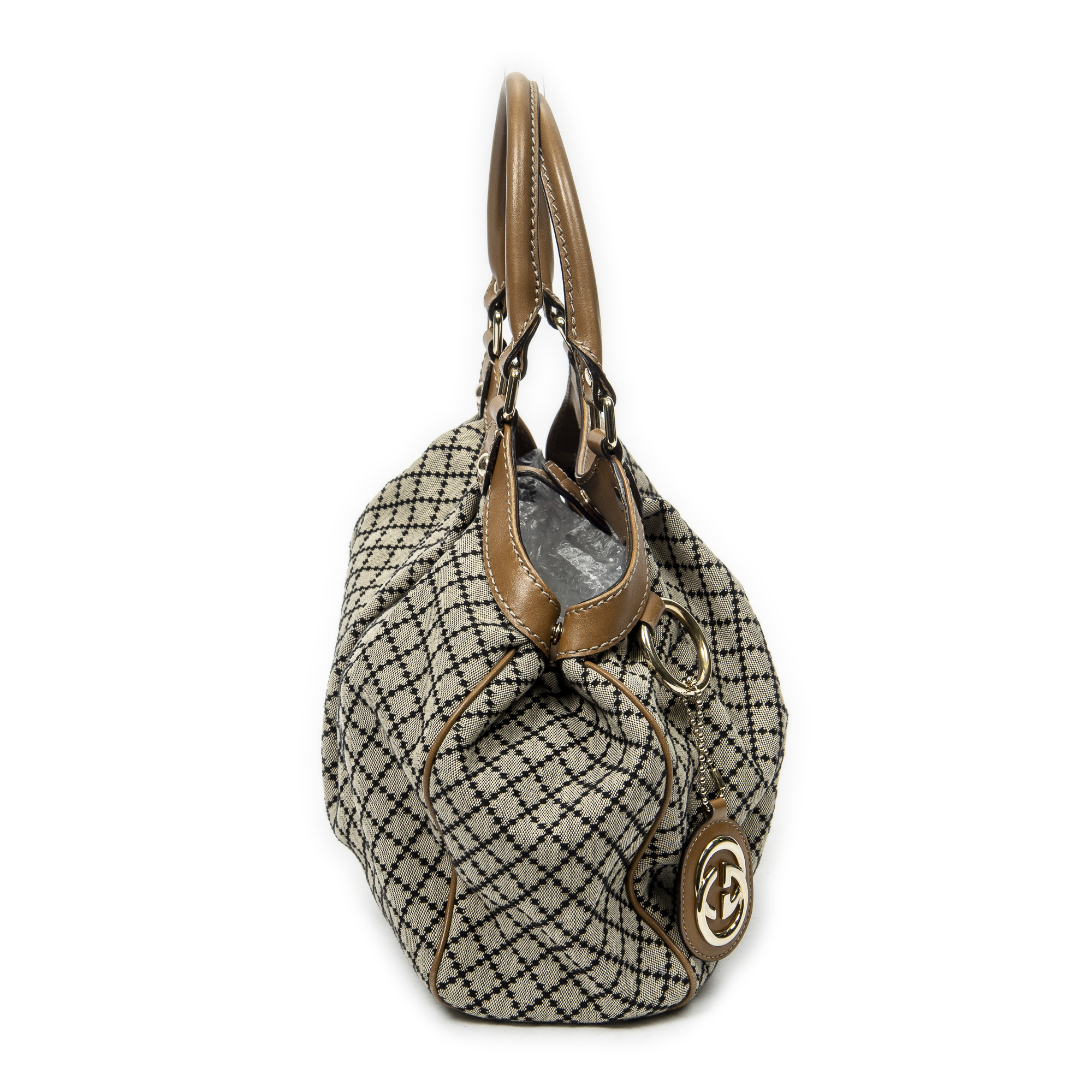 Gucci sac à bandoulière Small Sukey Tote en beige et Or. Le produit est en Excellent état (A).