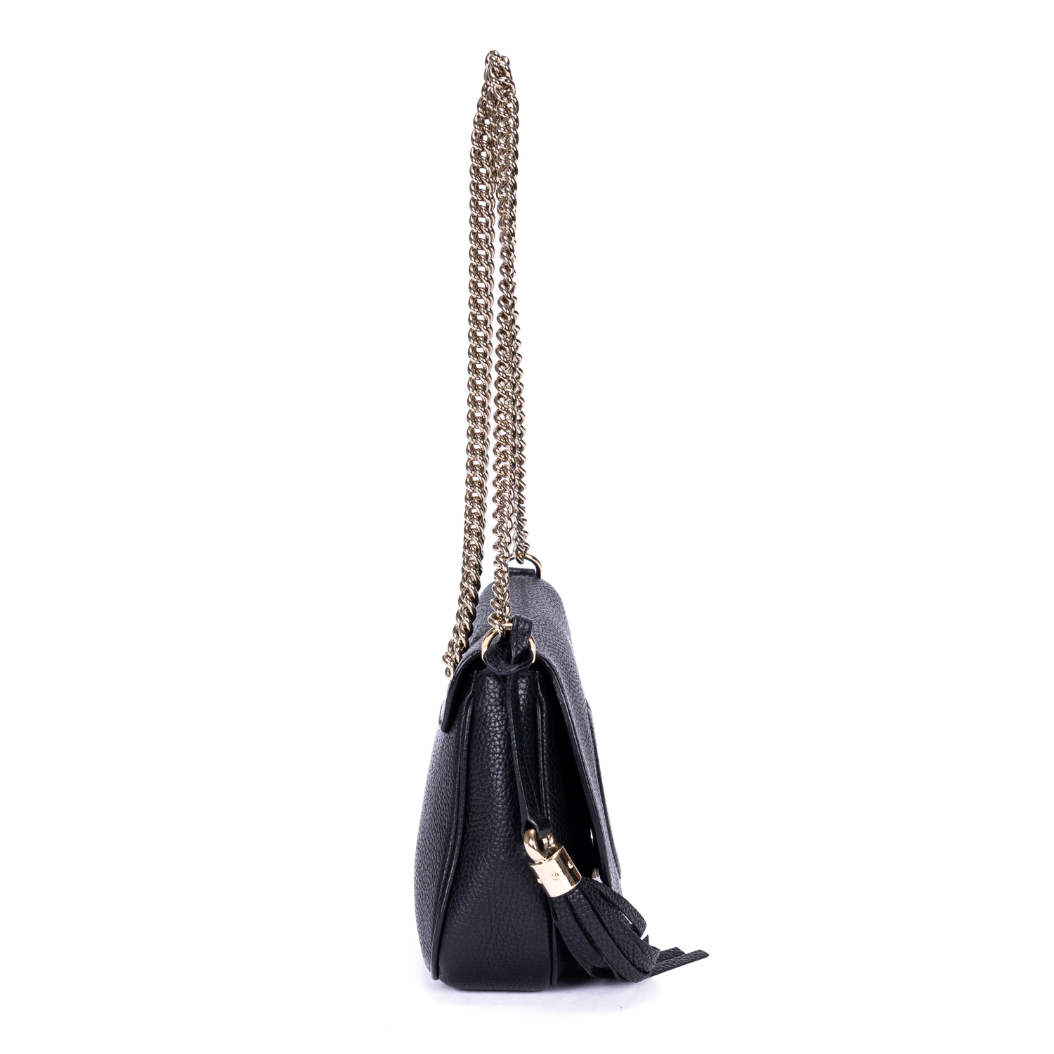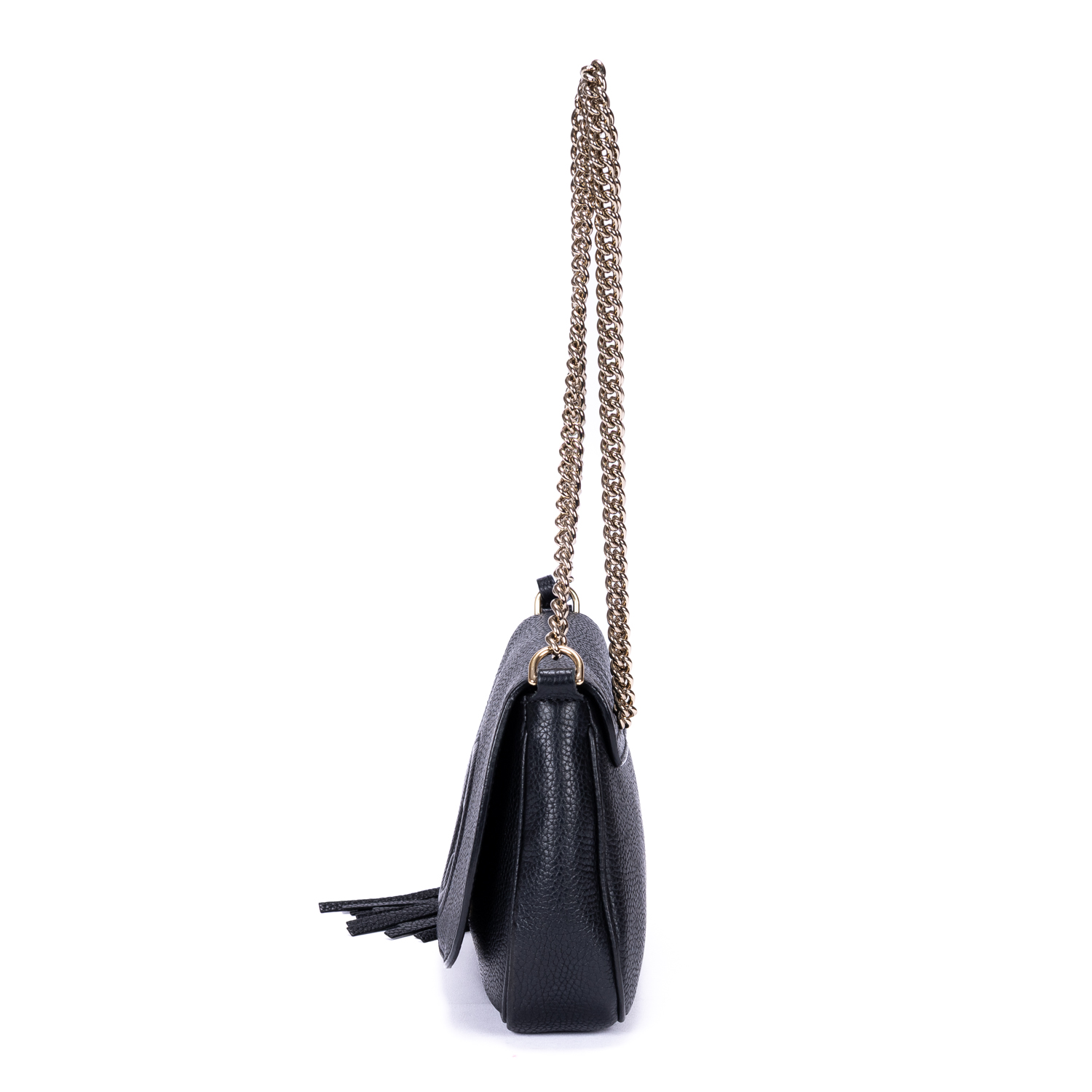 Gucci Sac à bandoulière Soho Chain Tassel Flap en Black et Gold. Le produit est en Parfait état (AA).