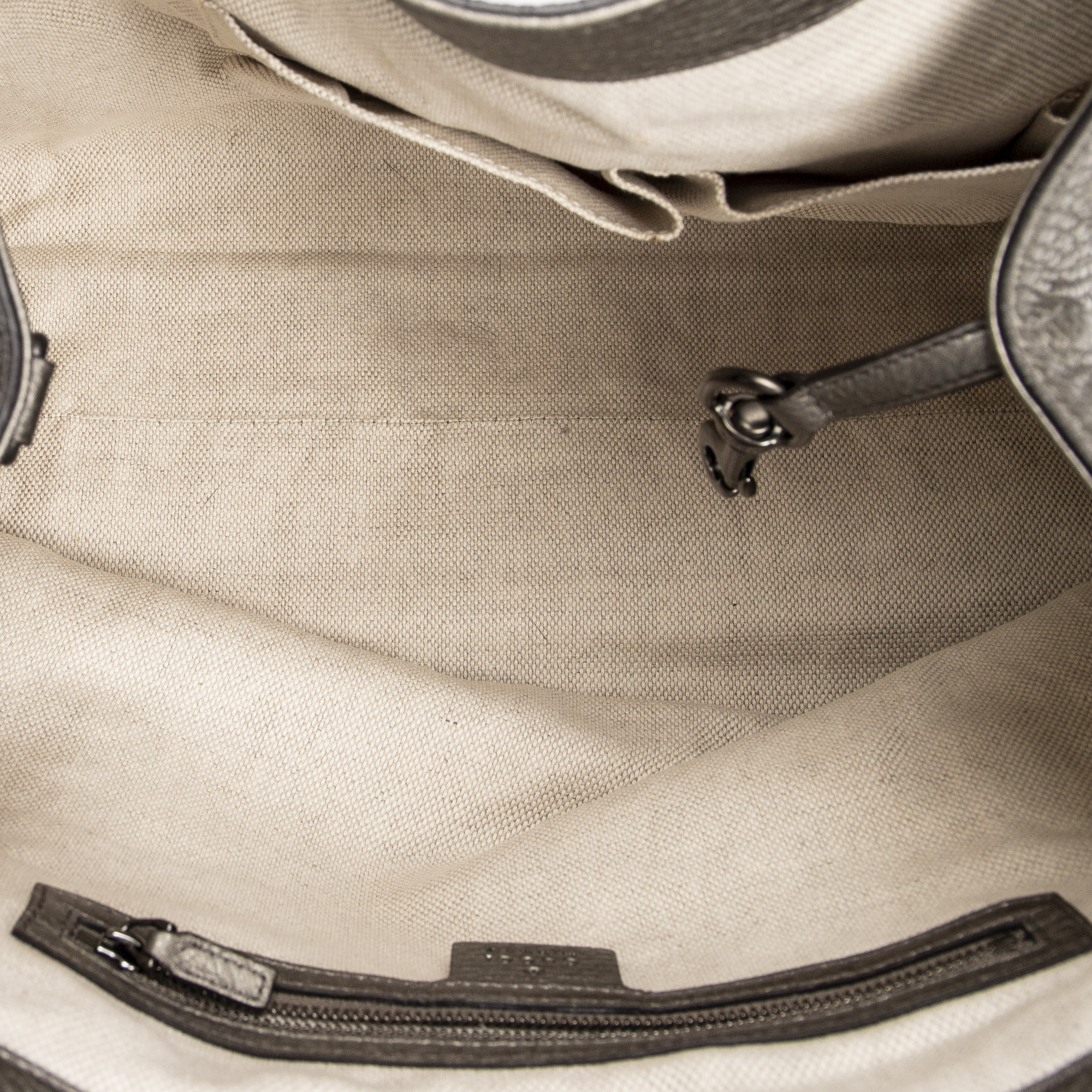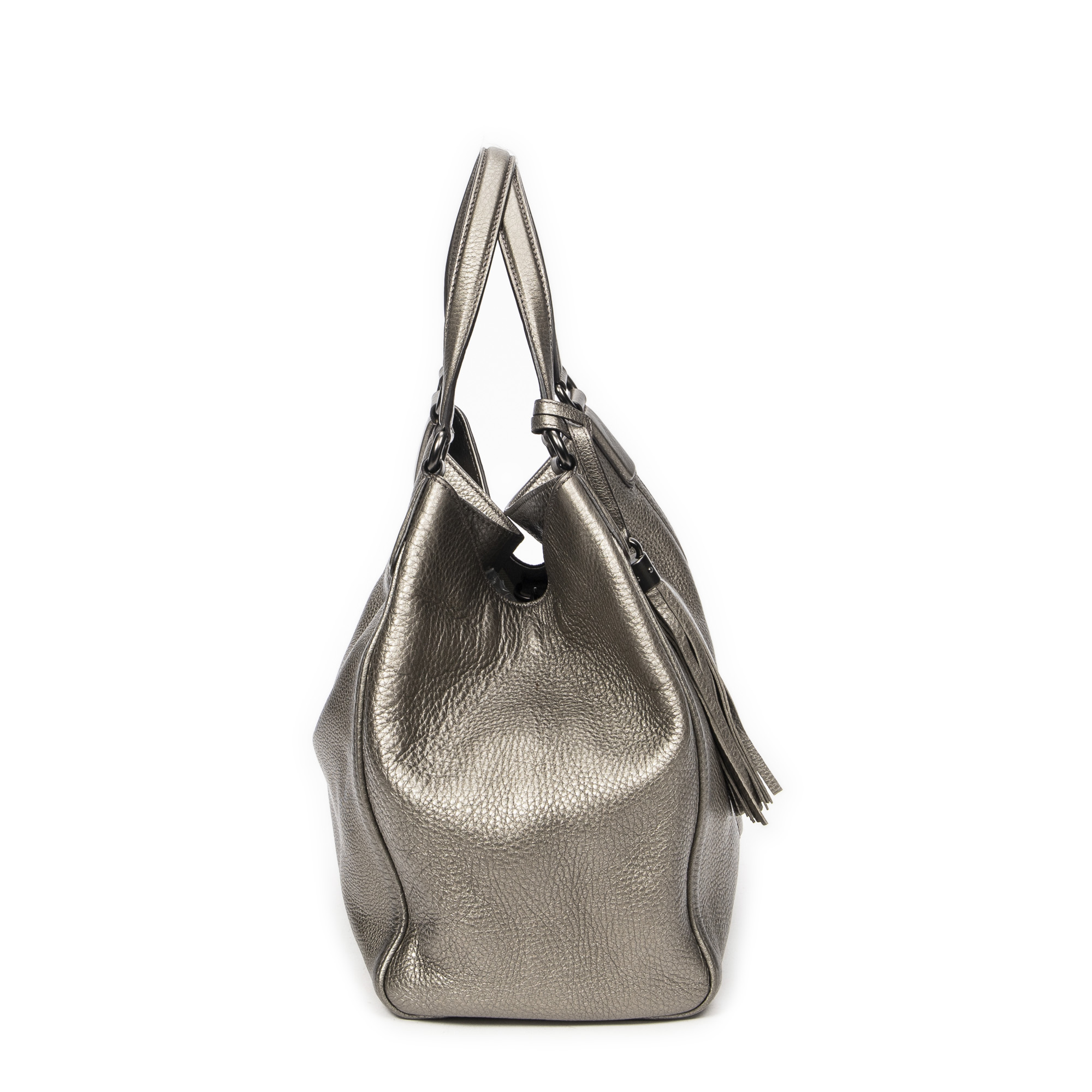 Gucci Sac à bandoulière Soho Tassel Tote en Argent et Laiton vieilli. Le produit est en Excellent état (A).