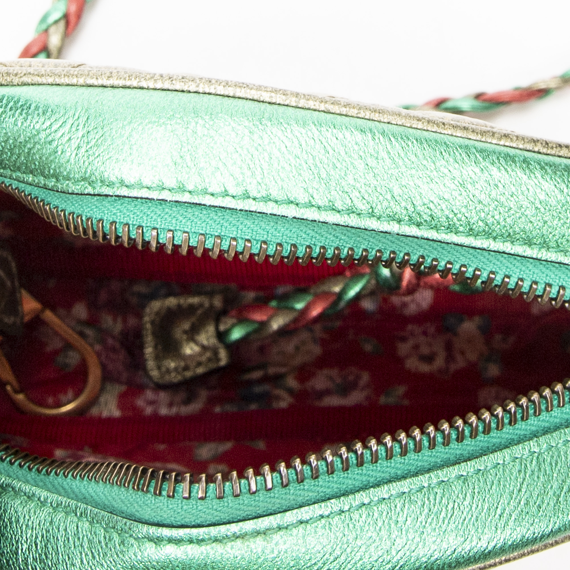 Gucci Sac à bandoulière Trapuntata Camera Bag en Rouge/Vert et Gold. Le produit est en Excellent état (A).