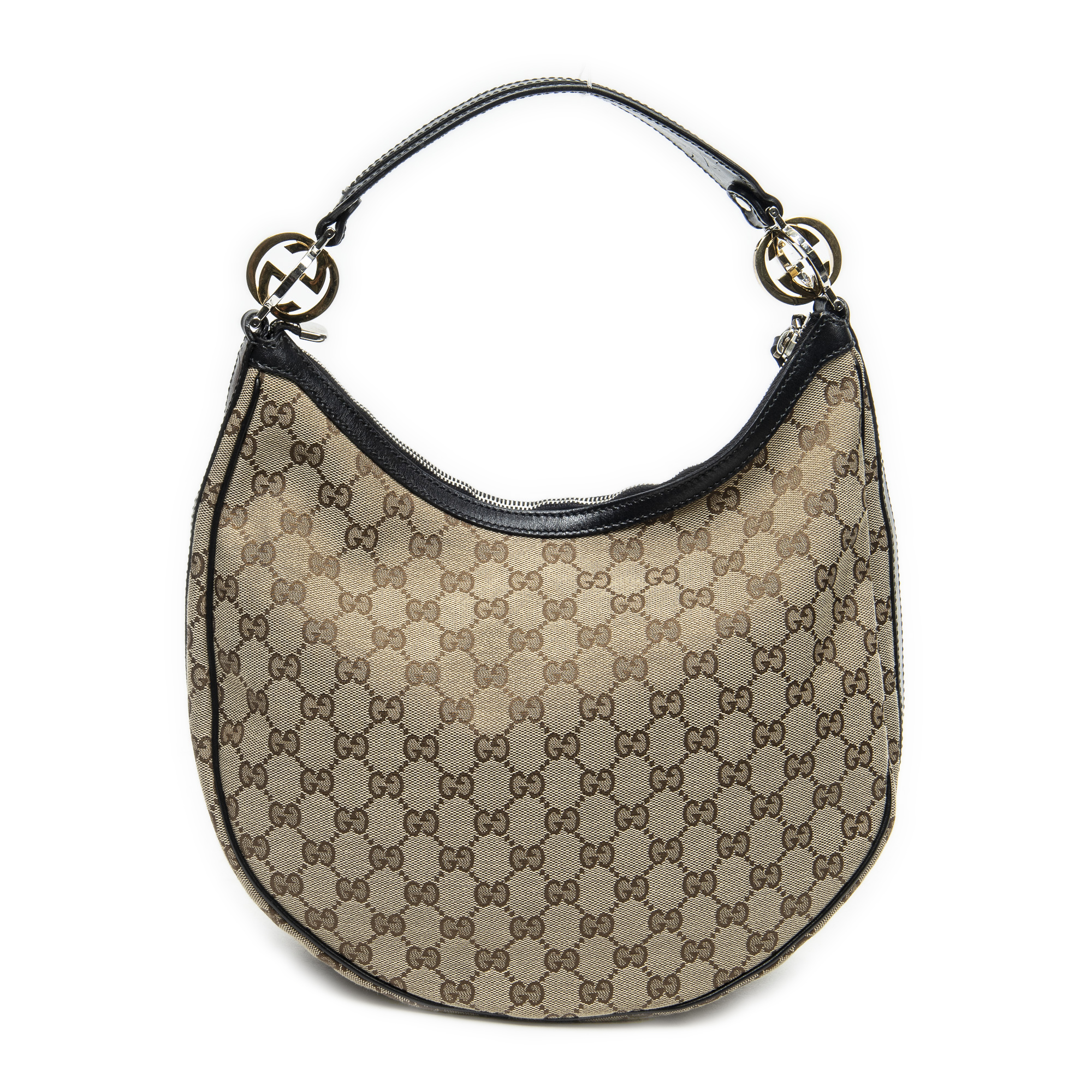 Gucci Sac à bandoulière Twins Hobo en Beige/Noir et Argent/Or. Le produit est en Excellent état (A).