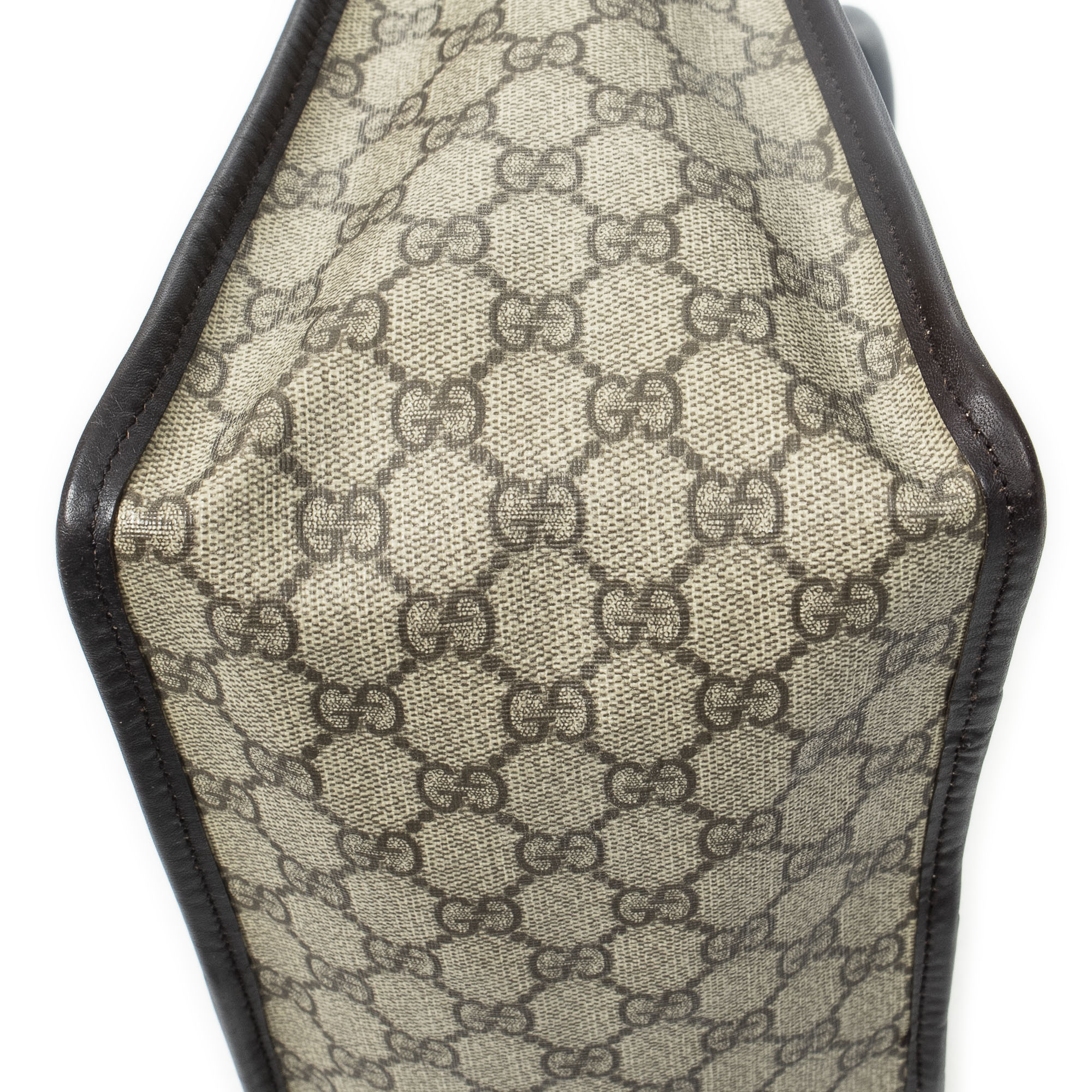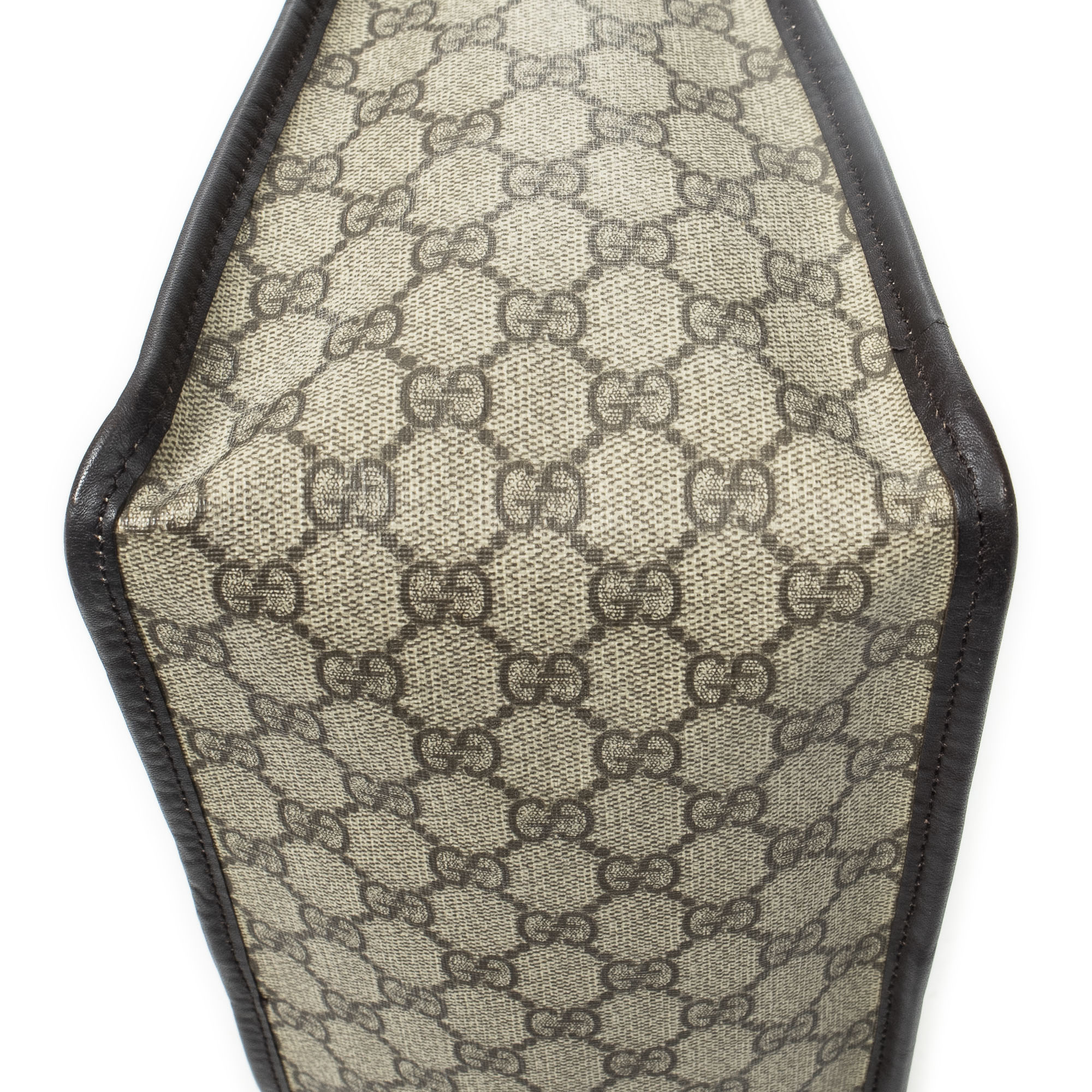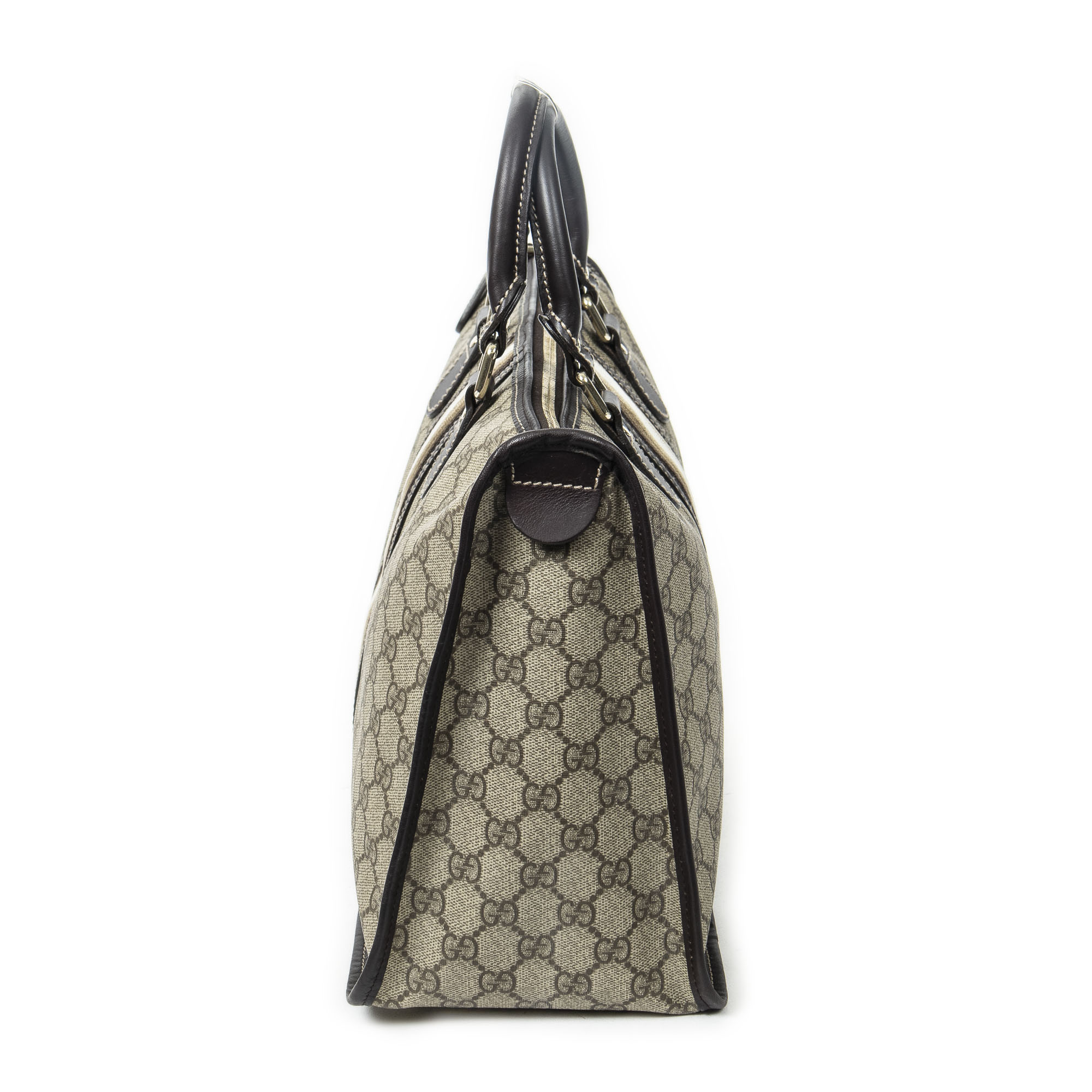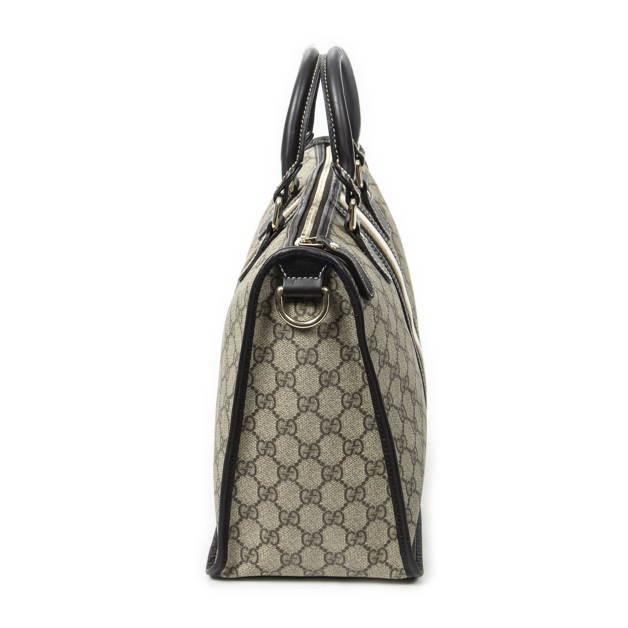 Gucci Sac à bandoulière Vintage Web Zip Tote en Beige/Marron foncé et Or. Le produit est en Parfait état (AA).