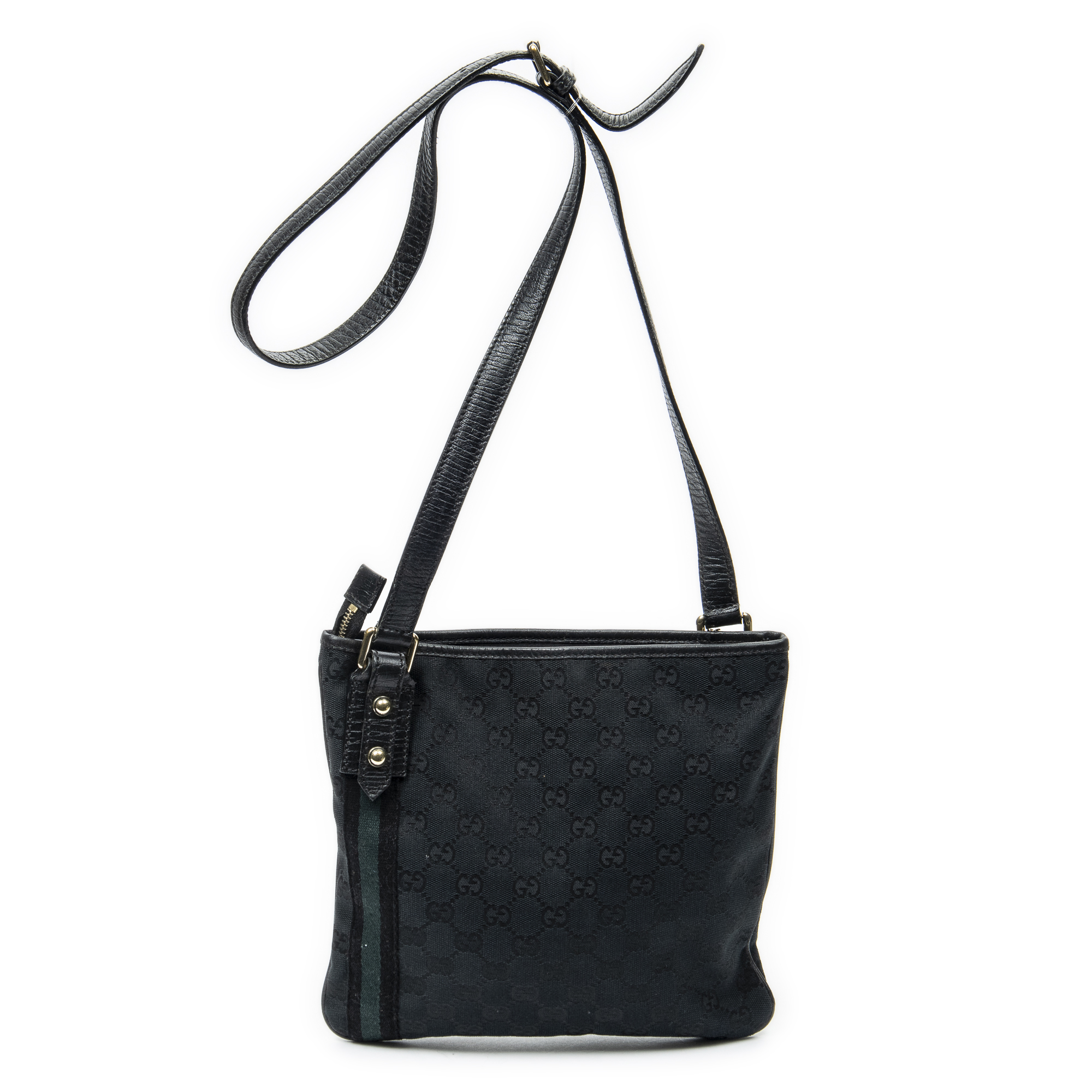 Gucci Sac à bandoulière Web Jolicoeur Crossbody en Black et Gold. Le produit est en Excellent état (A).