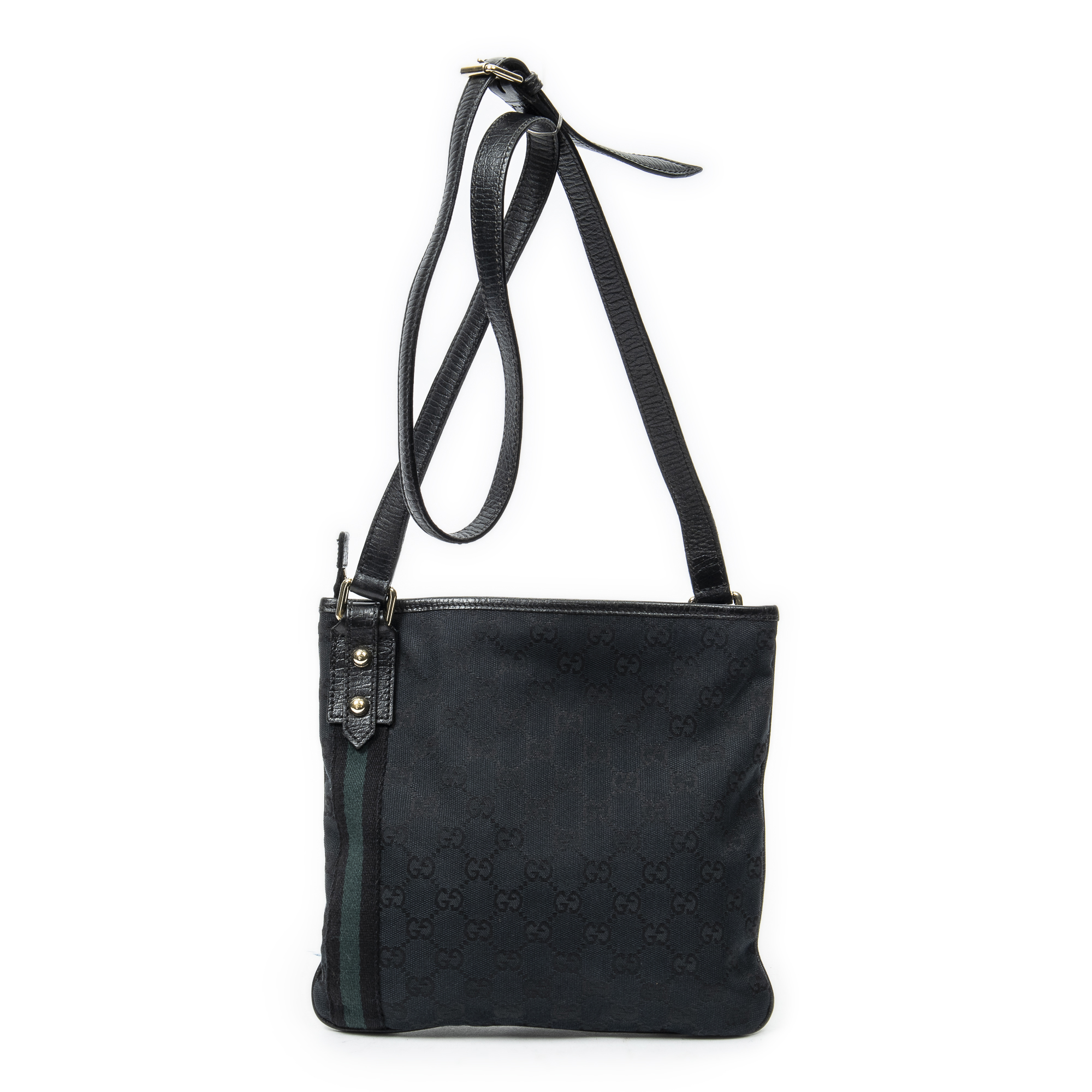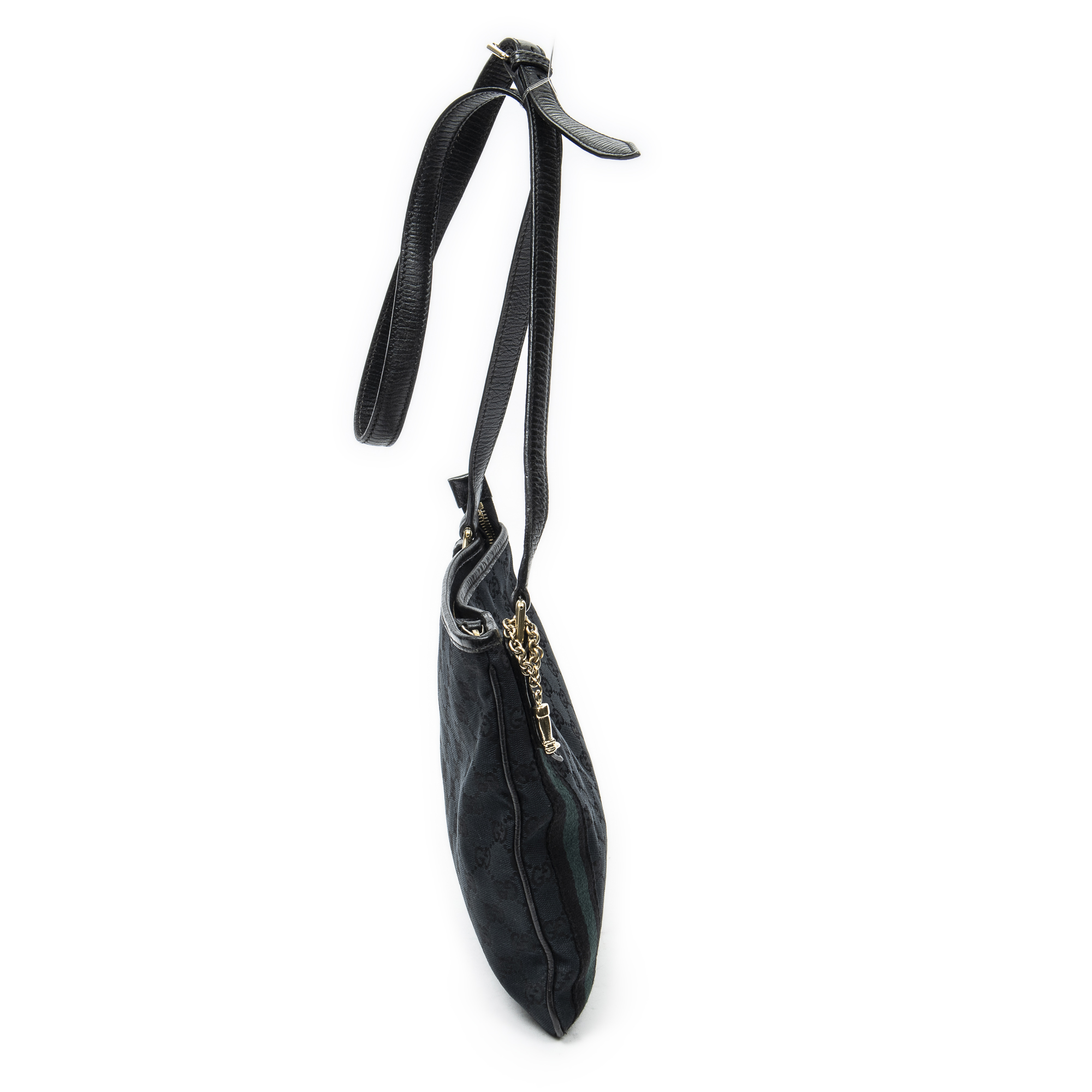 Gucci Sac à bandoulière Web Jolicoeur Crossbody en Noir et Gold. Le produit est en Excellent état (A).