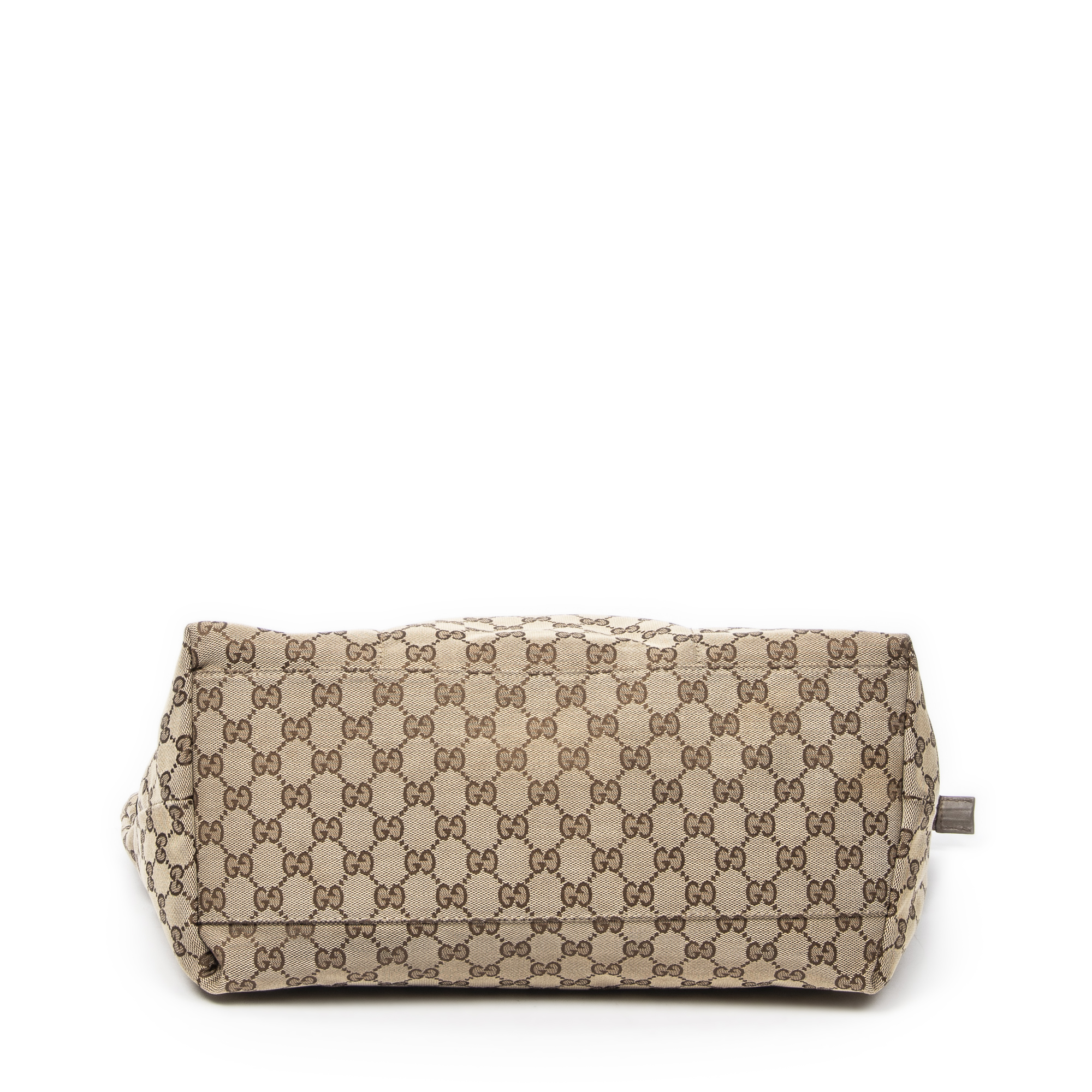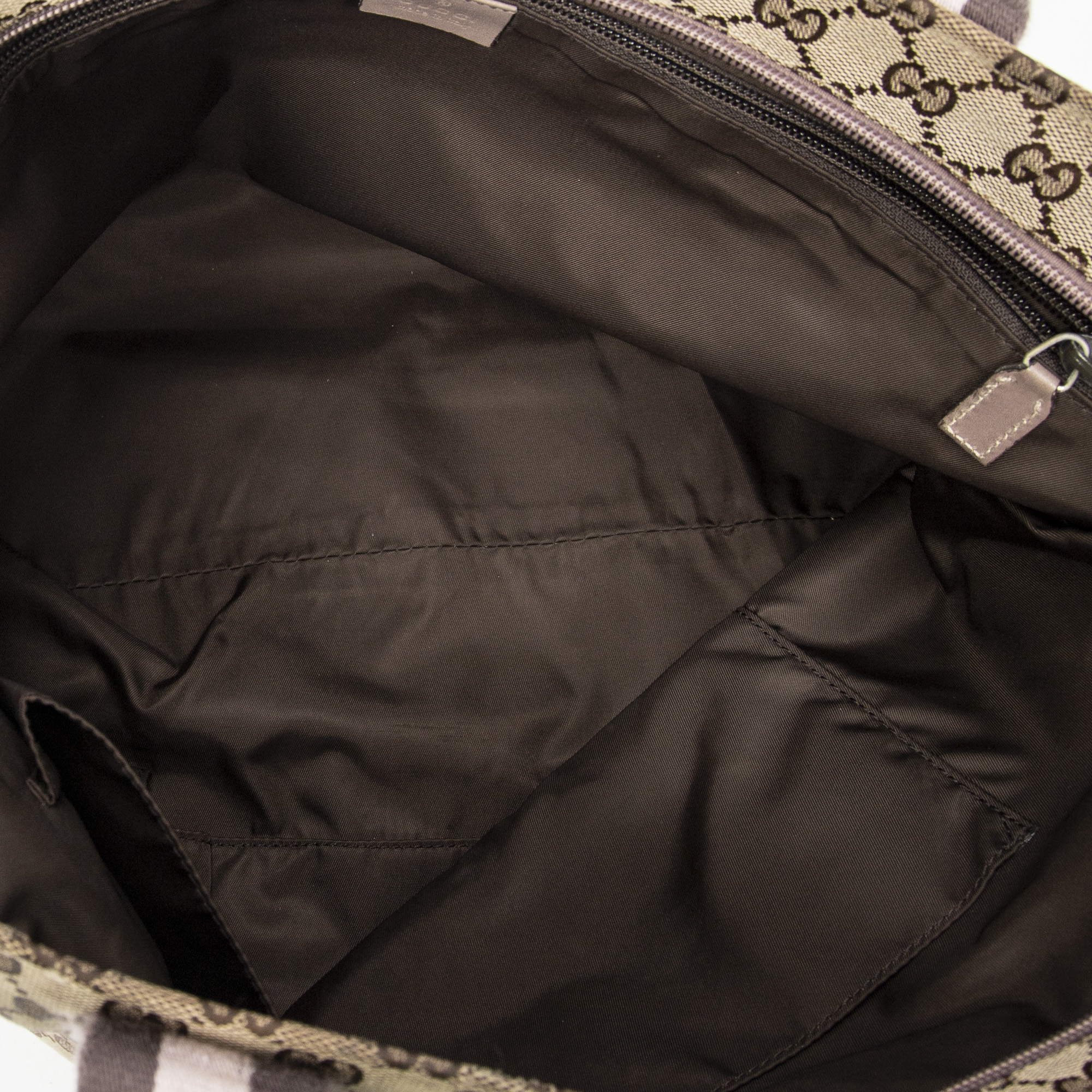 Gucci Sac à bandoulière Web Large Diaper Tote en Beige et Argent. Le produit est en Très Bon état (AB).