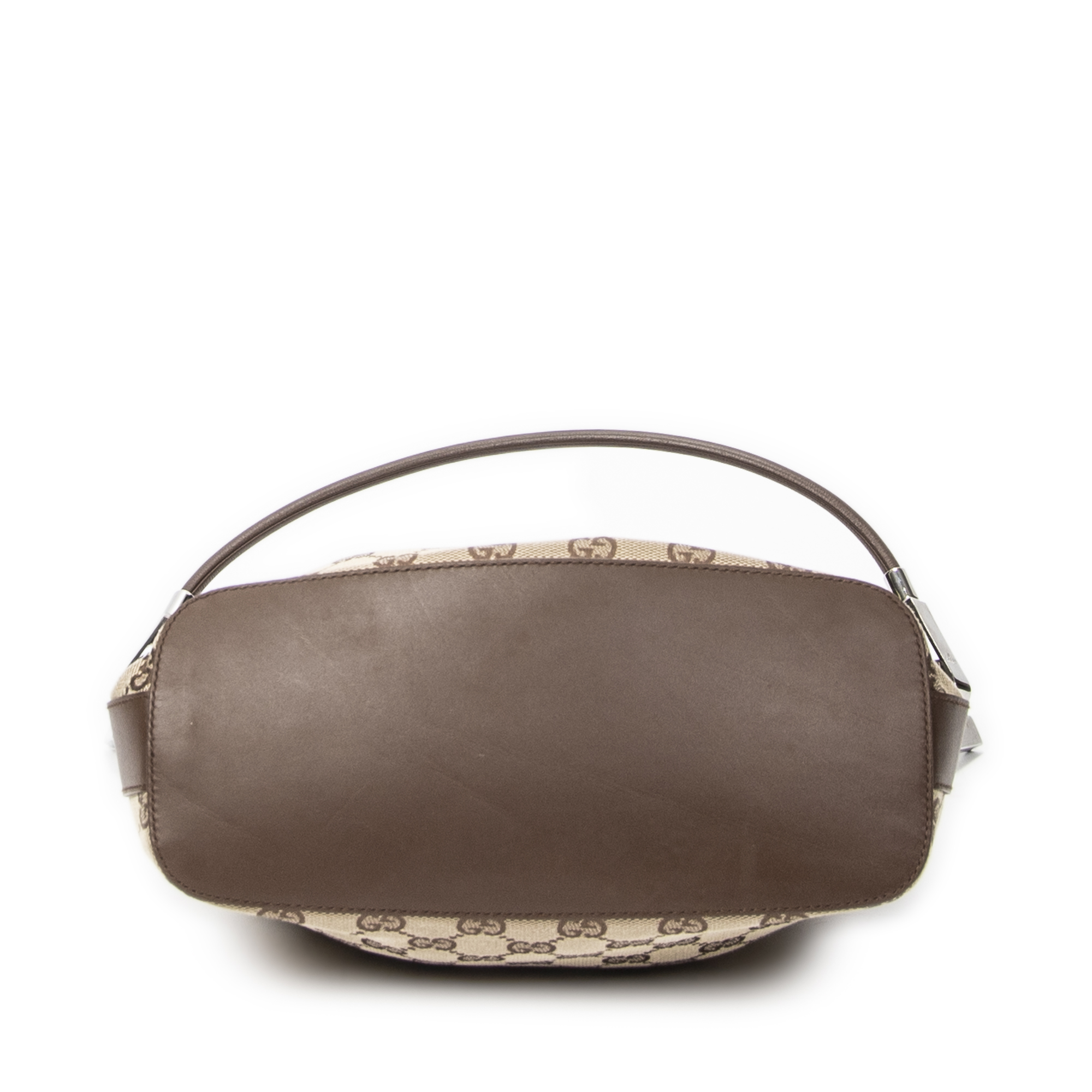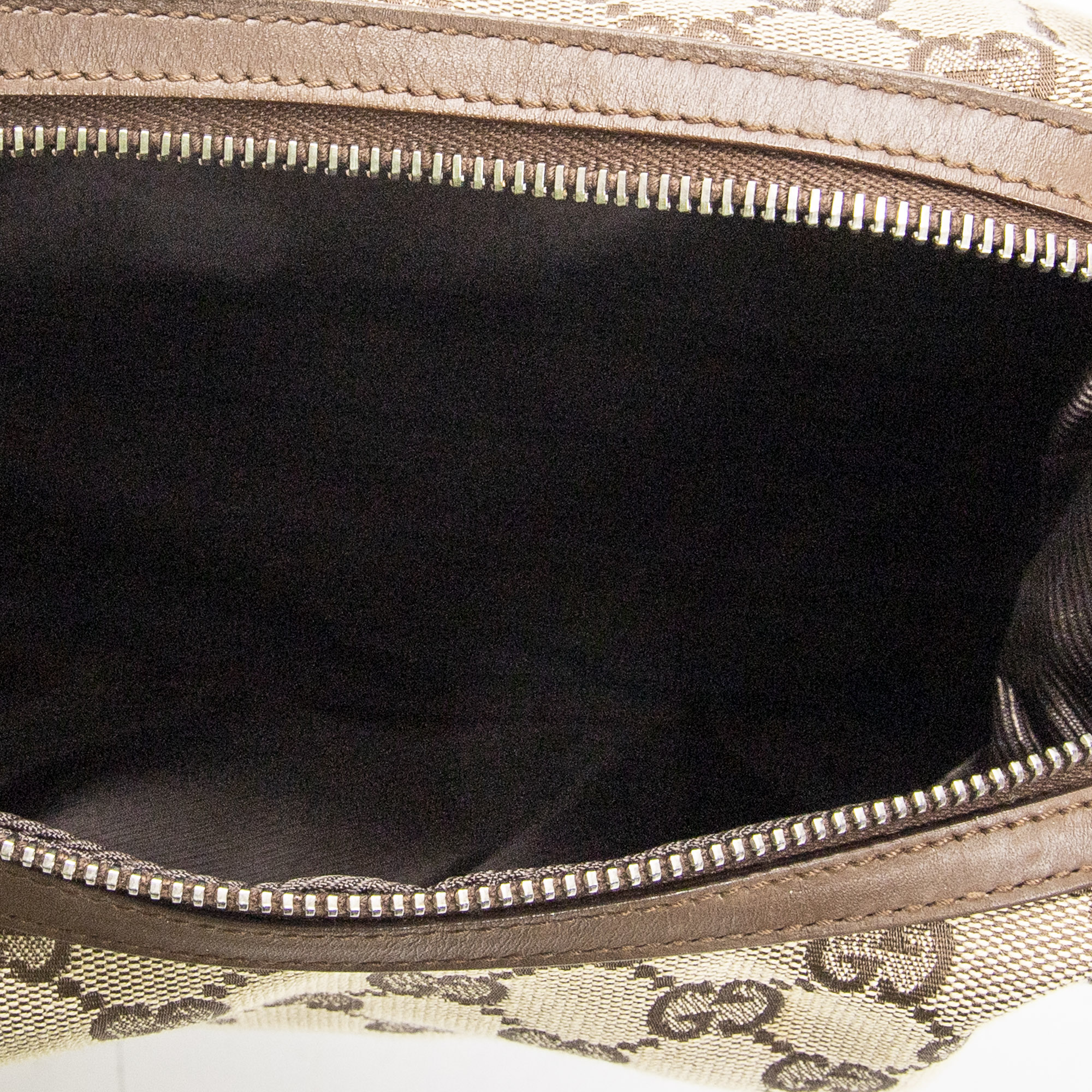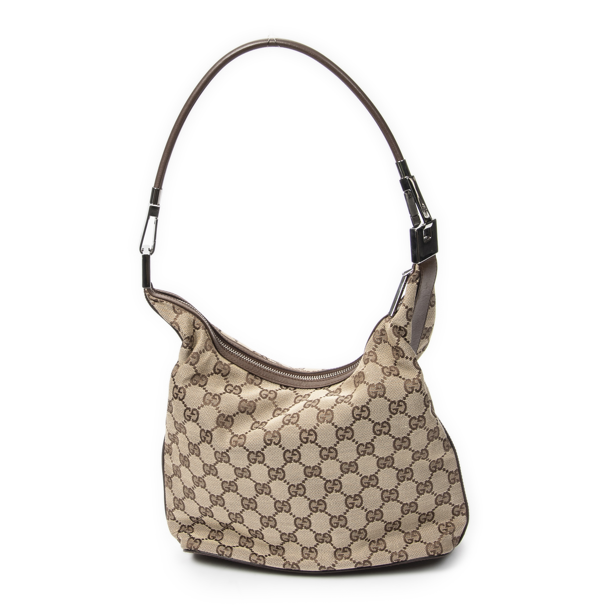Gucci Sac à bandoulière Zip Hobo en Marron/Beige et Argent. Le produit est en Excellent état (A).
