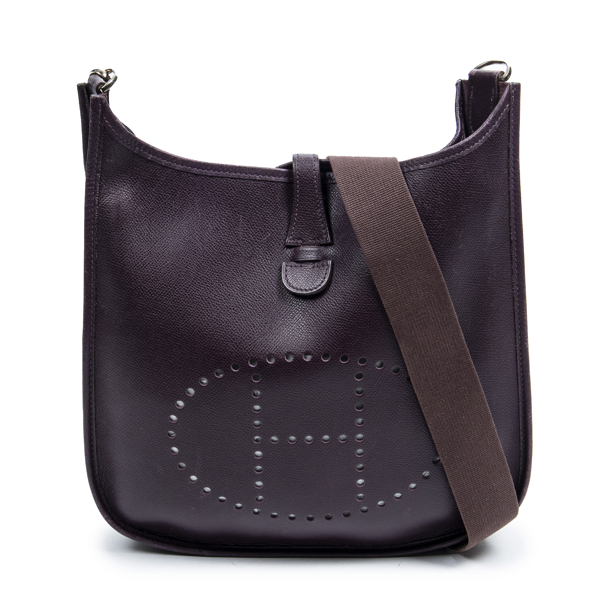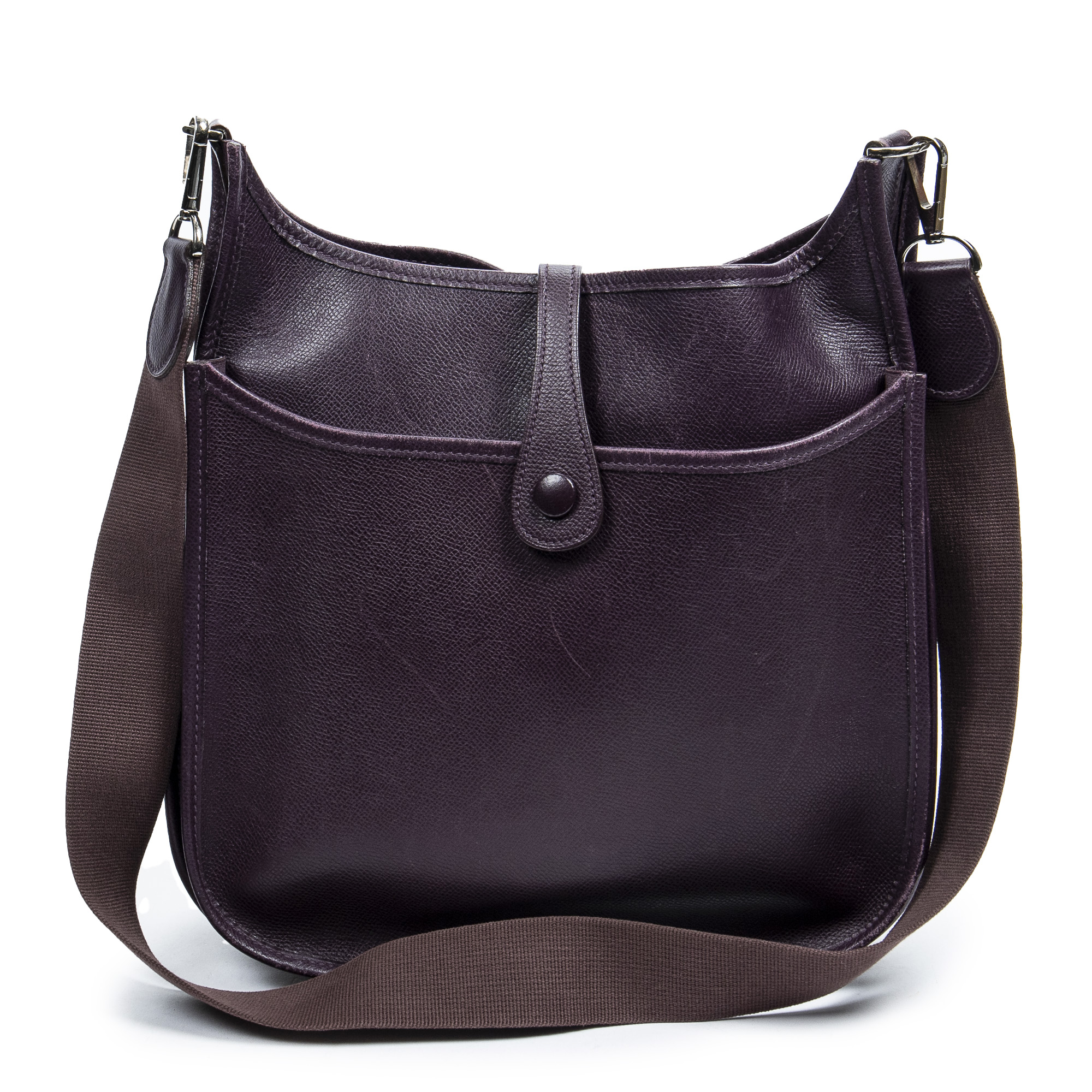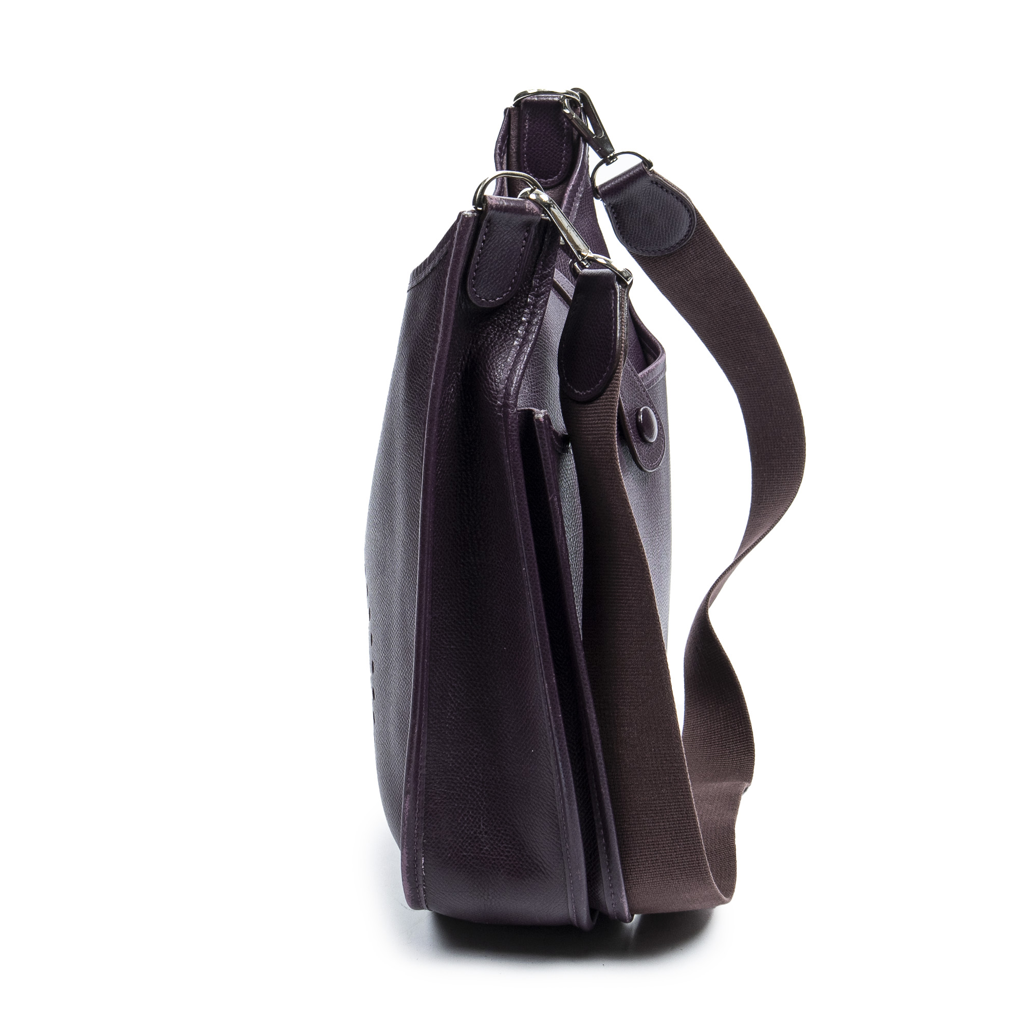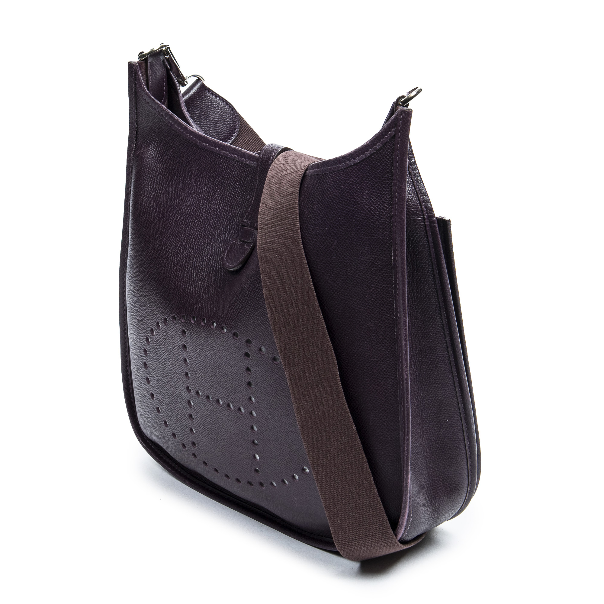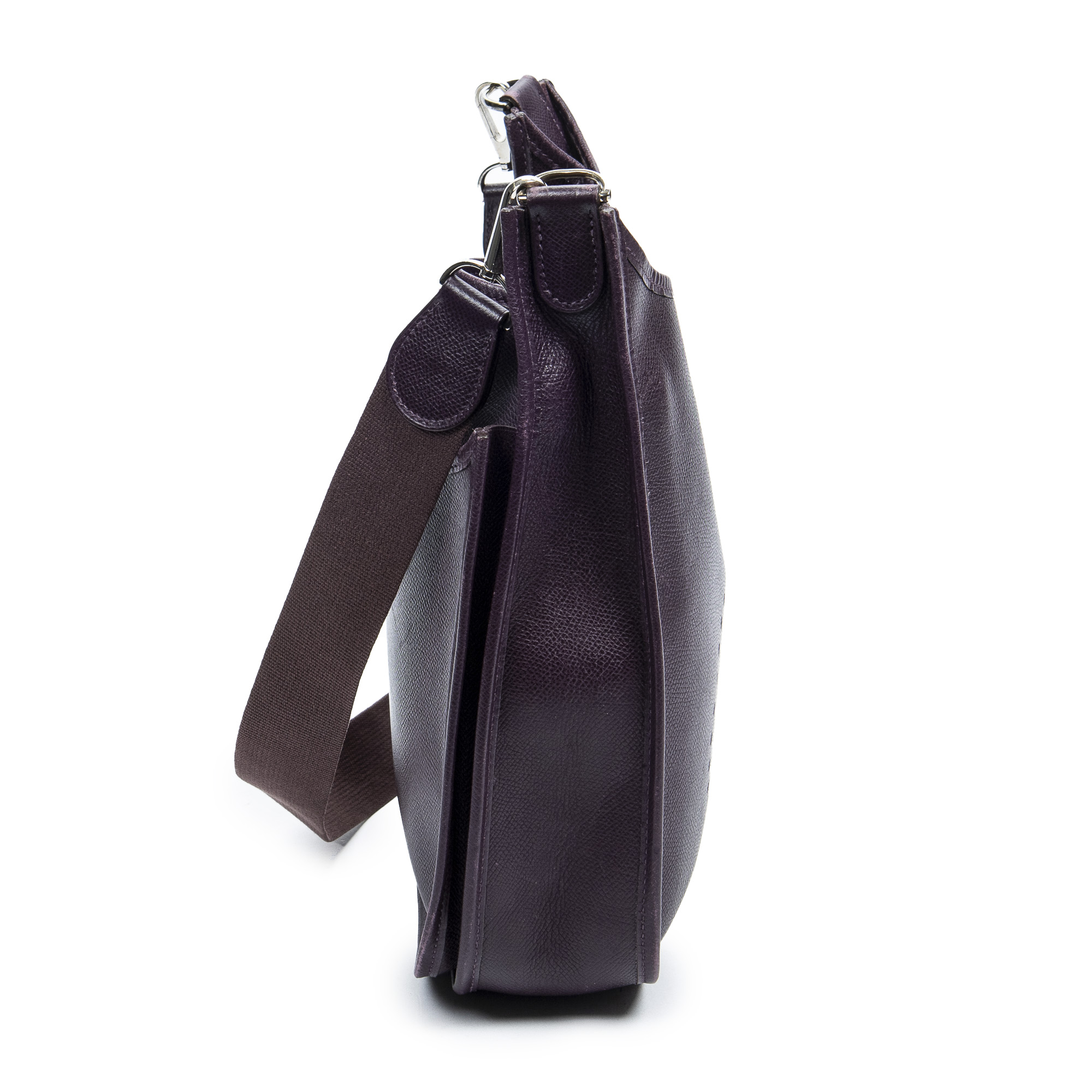 Hermès Sac à bandoulière Evelyne II PM en Violet et Argent. Le produit est en Très Bon état (AB).