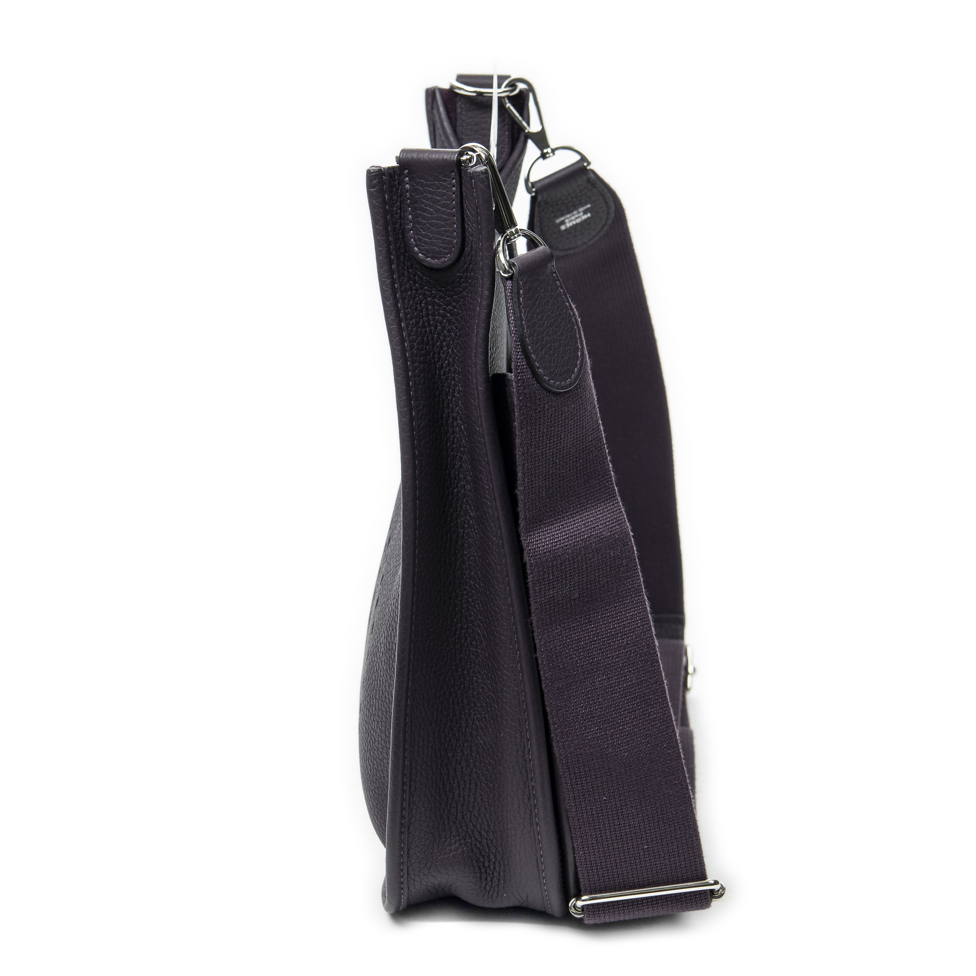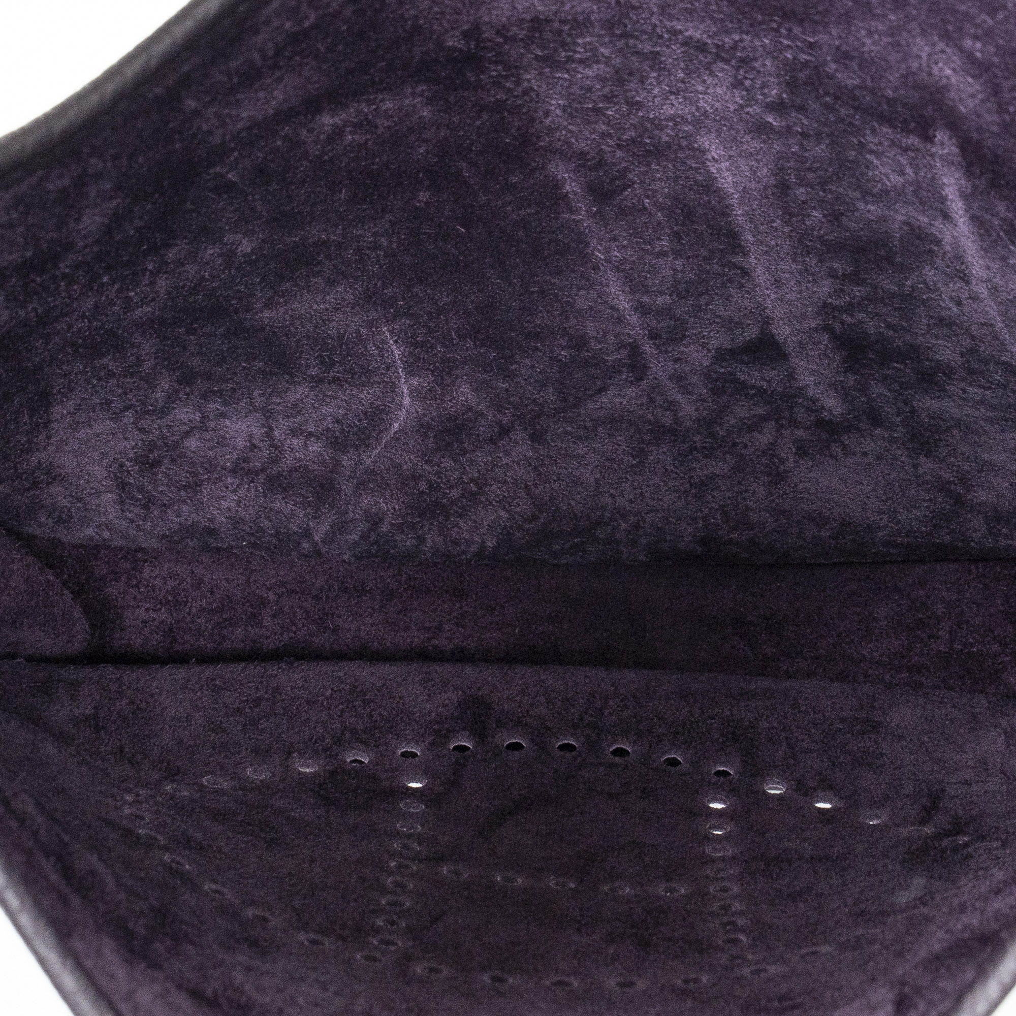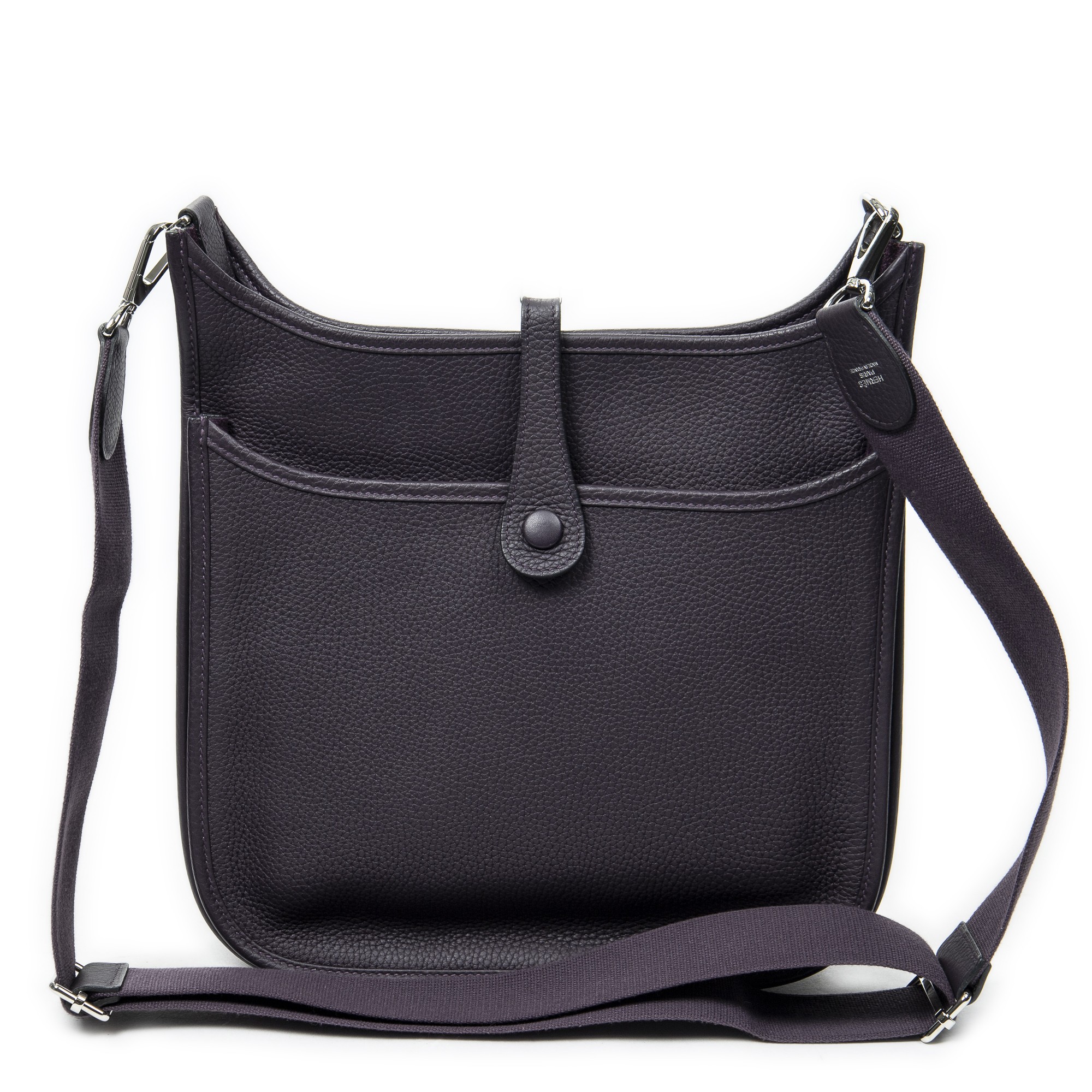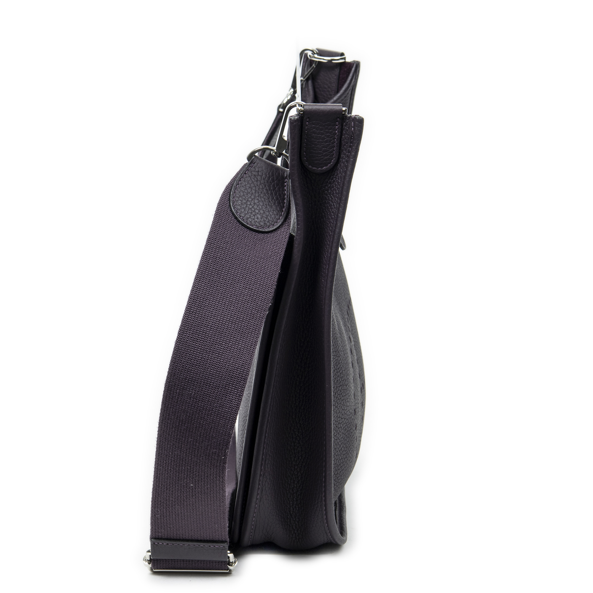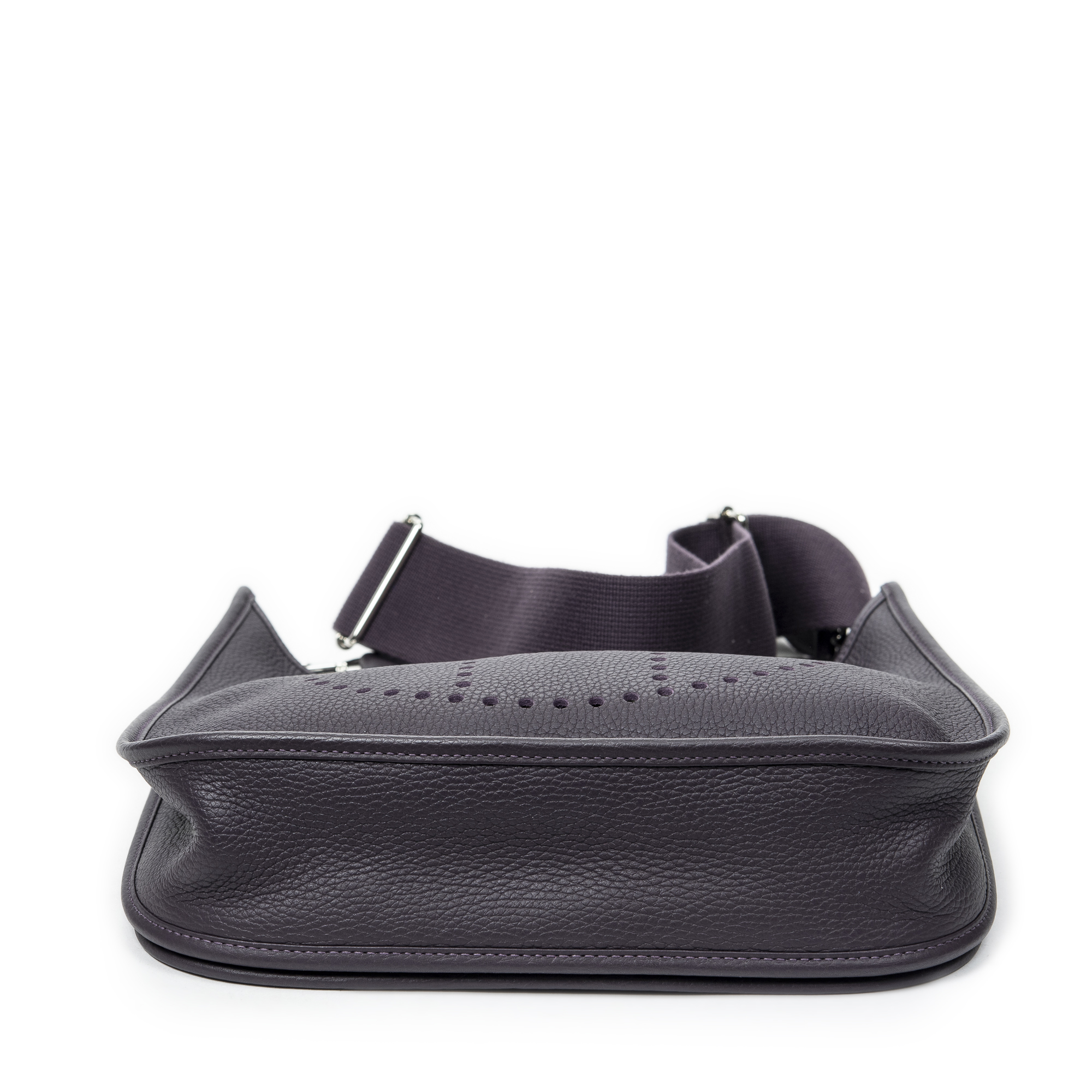 Hermès Sac à bandoulière Evelyne III PM en Raisin sec et Palladium. Le produit est en Parfait état (AA).