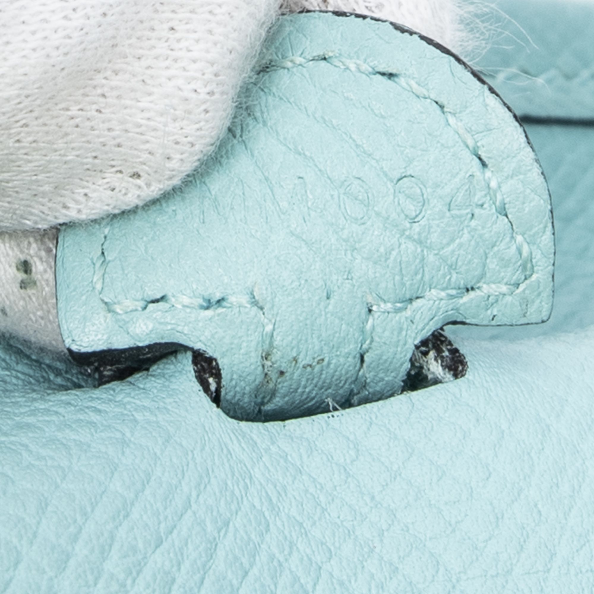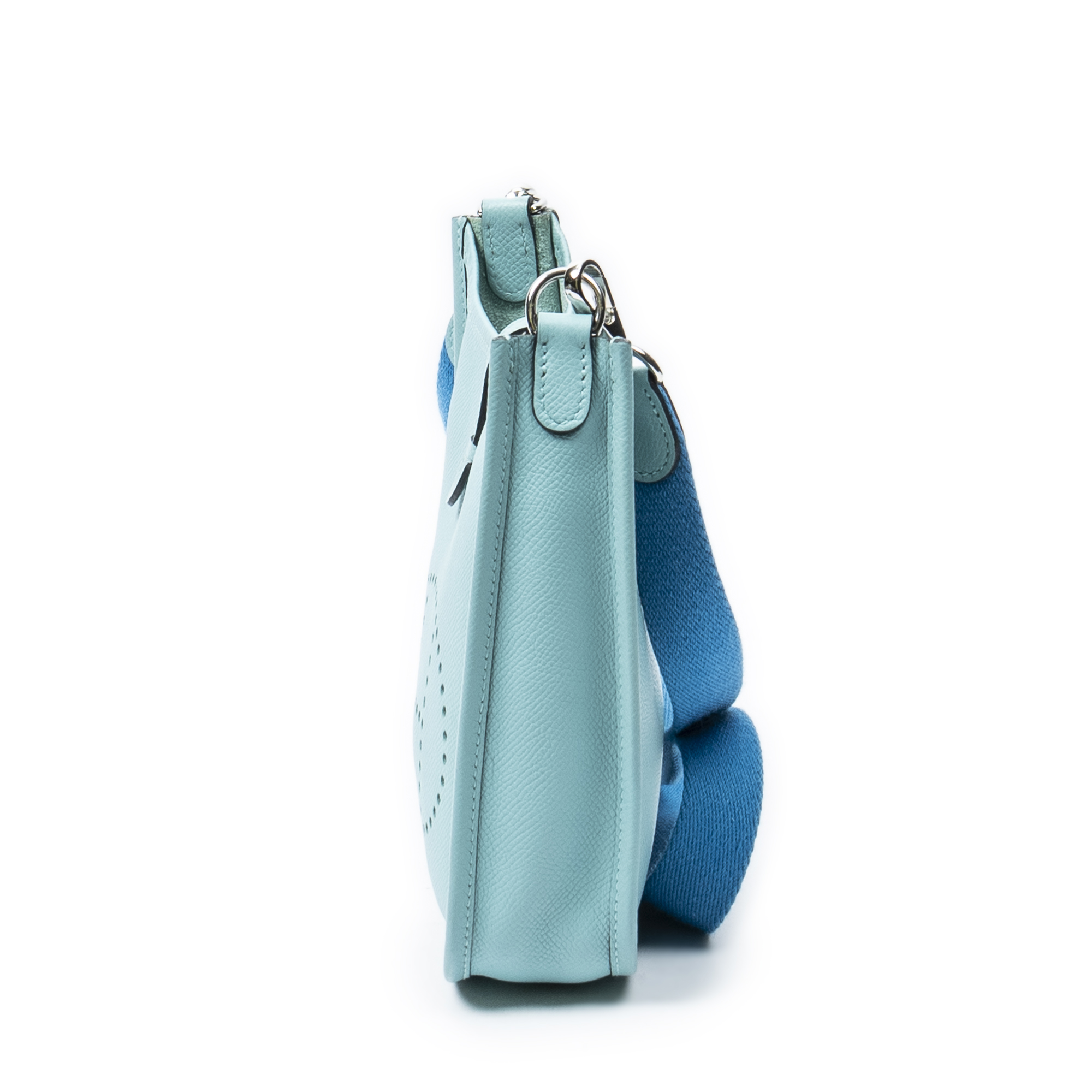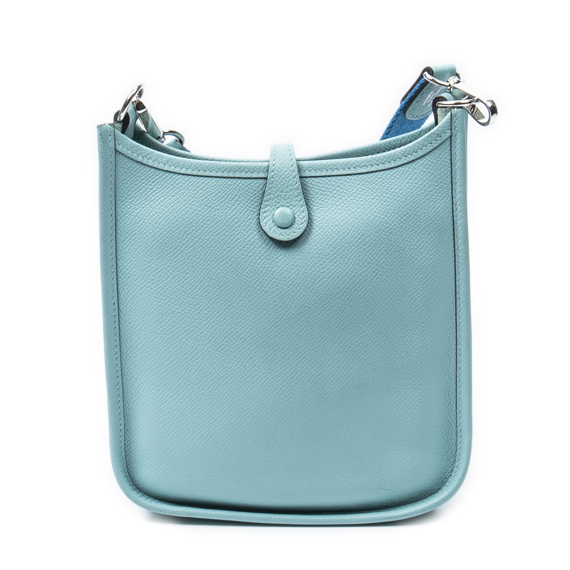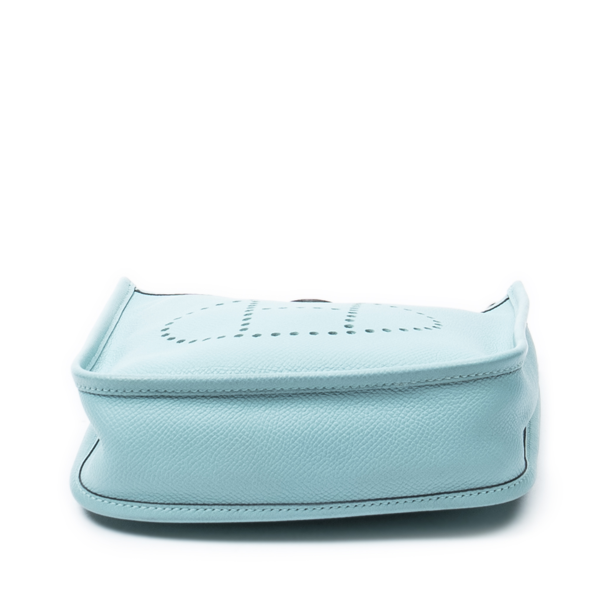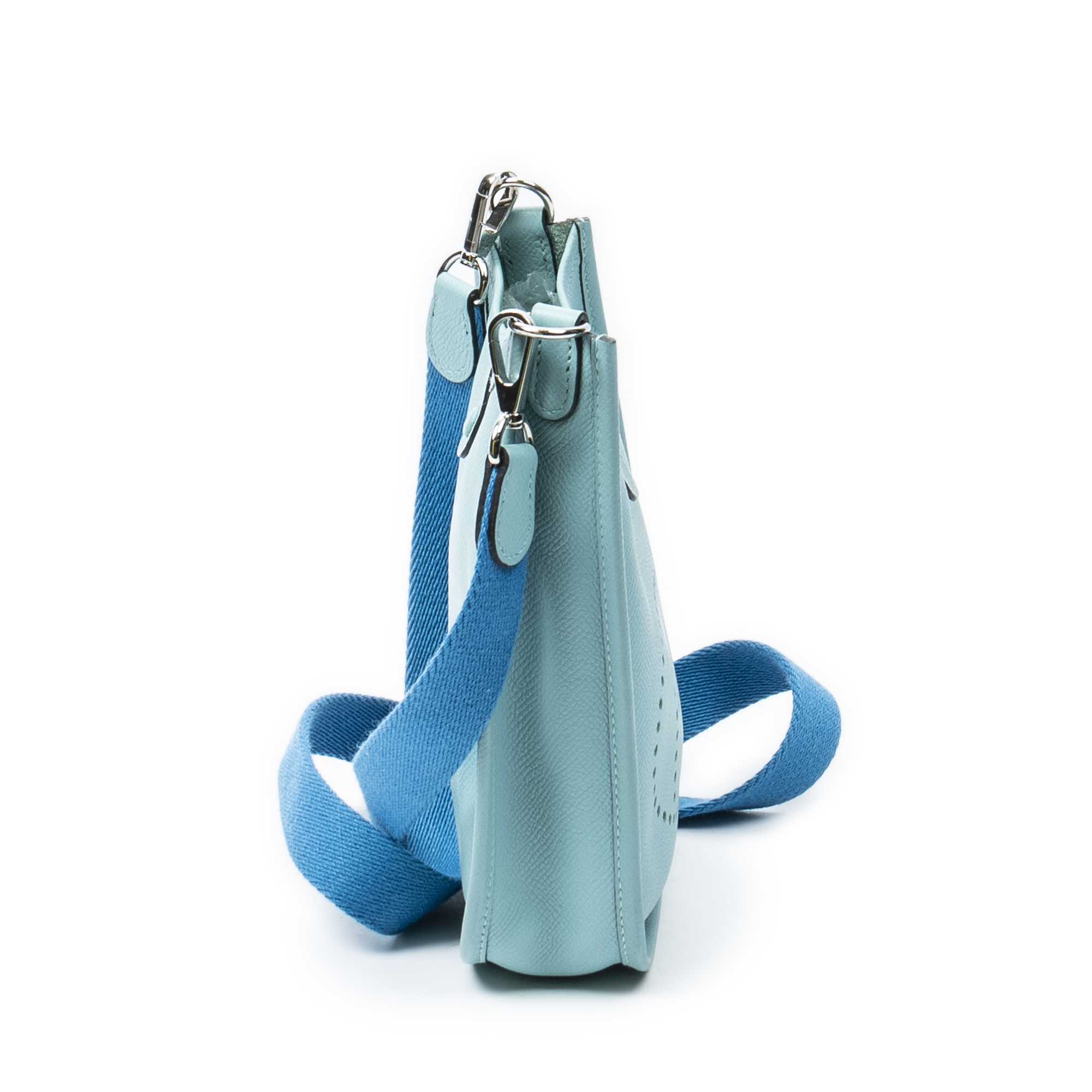 Hermès sac à bandoulière Evelyne TPM en sarcelle et pallade. Le produit est en Excellent état (A).