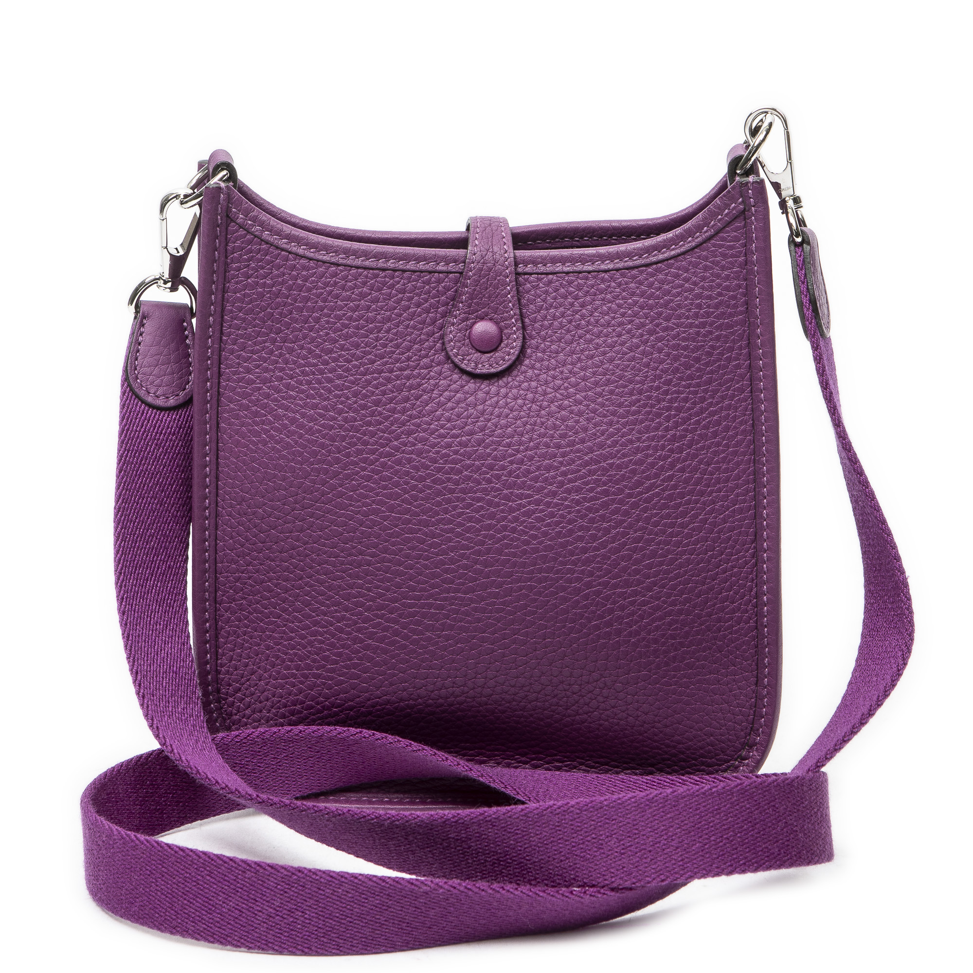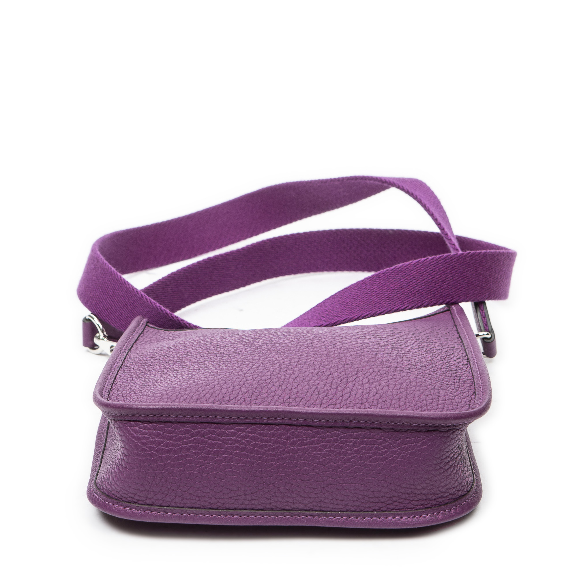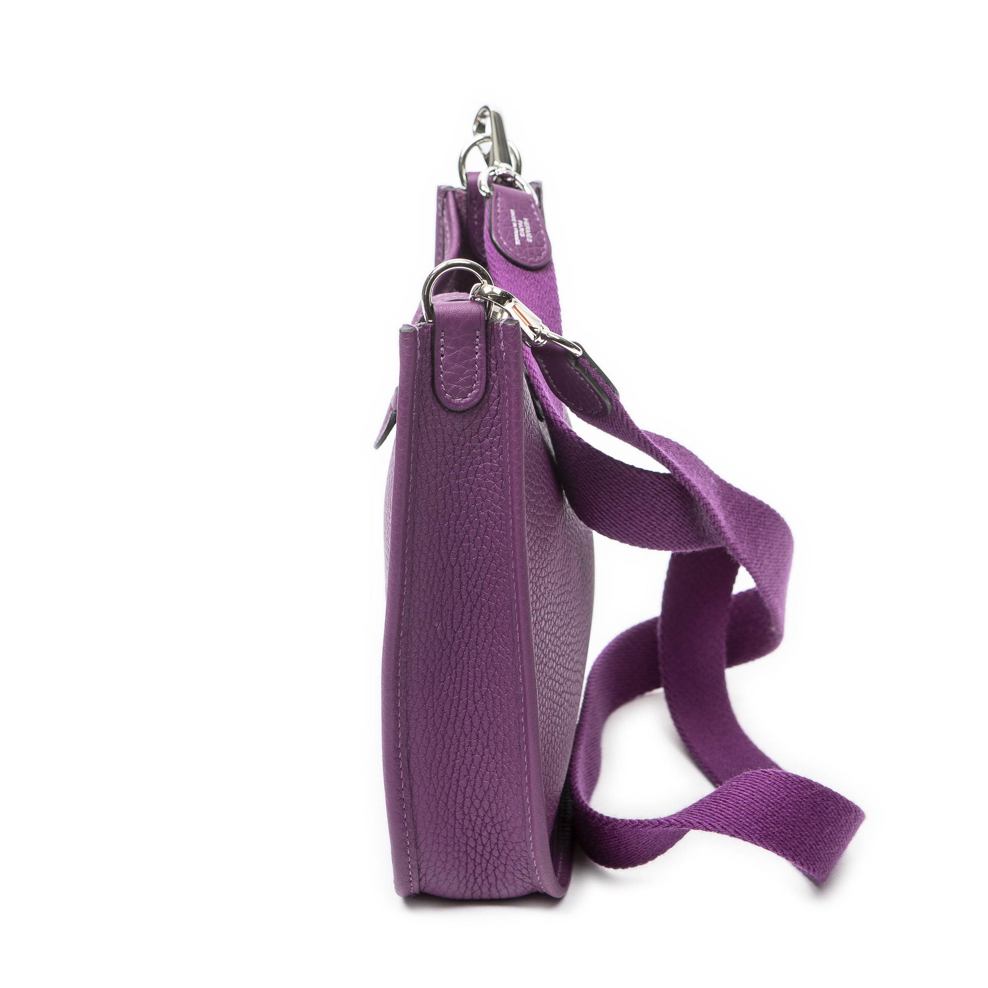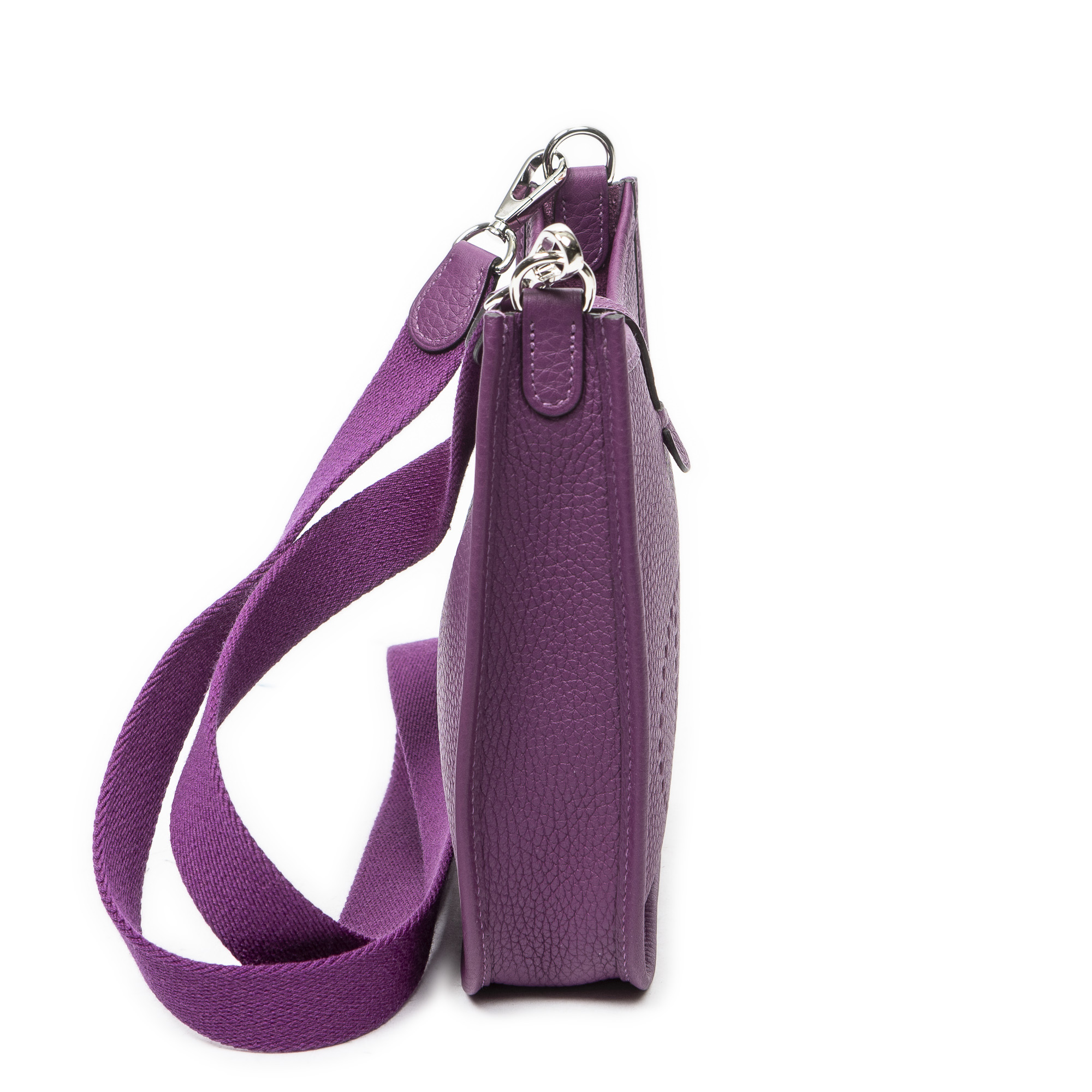 Hermès Sac à bandoulière Evelyne TPM en Violet et Palladium. Le produit est en Parfait état (AA).