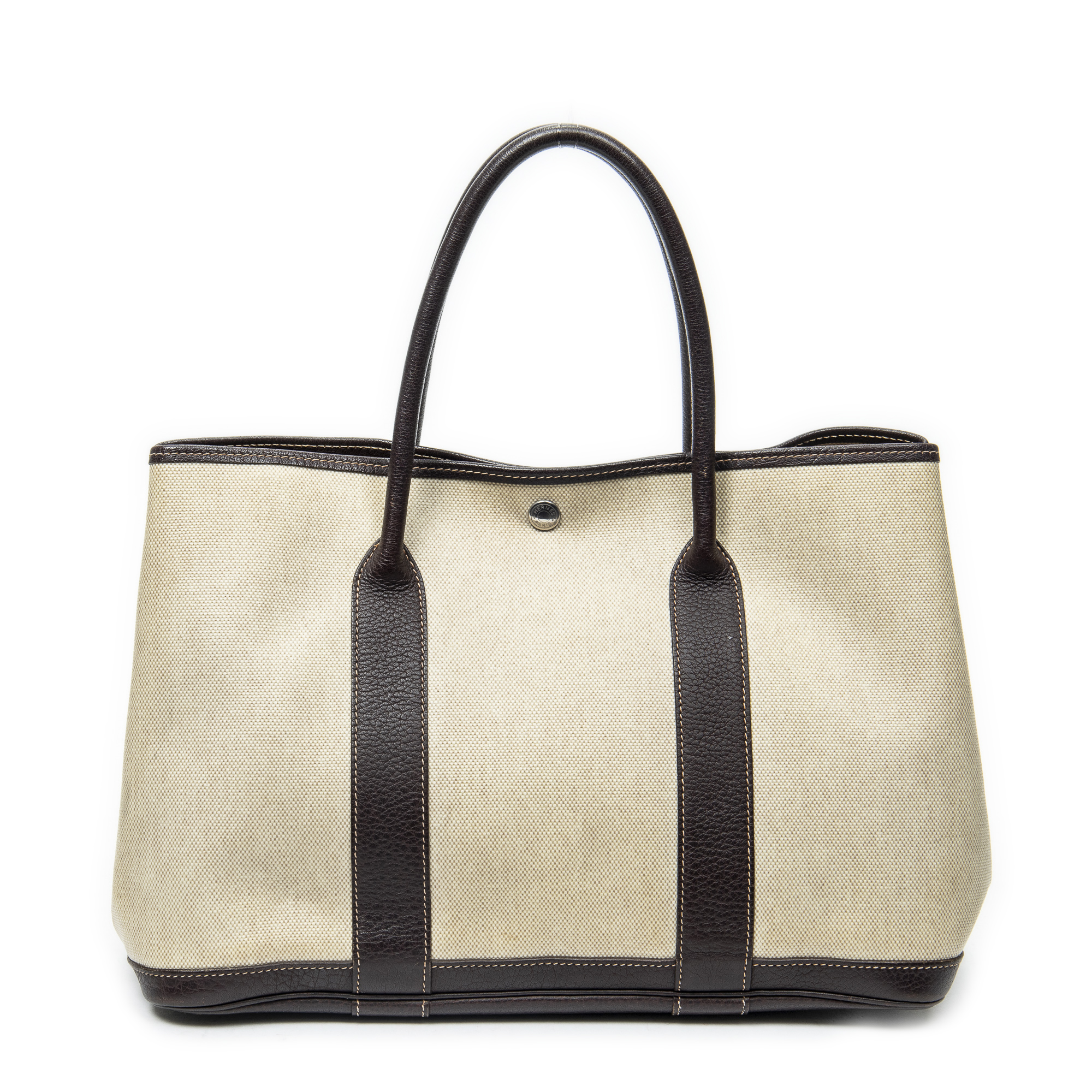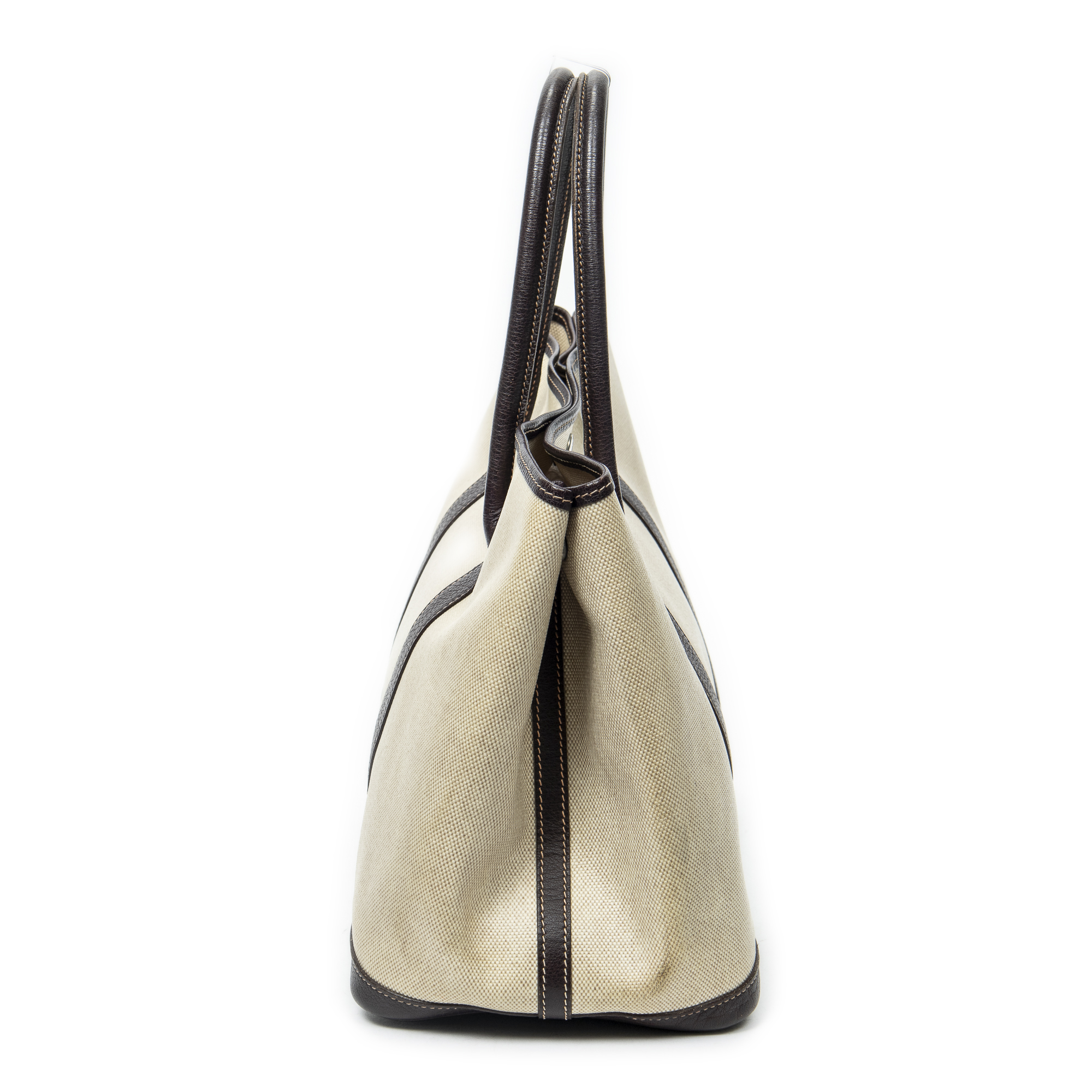 Hermès Sac à bandoulière Garden Party PM en Beige/Marron foncé et Palladium. Le produit est en Très Bon état (AB).