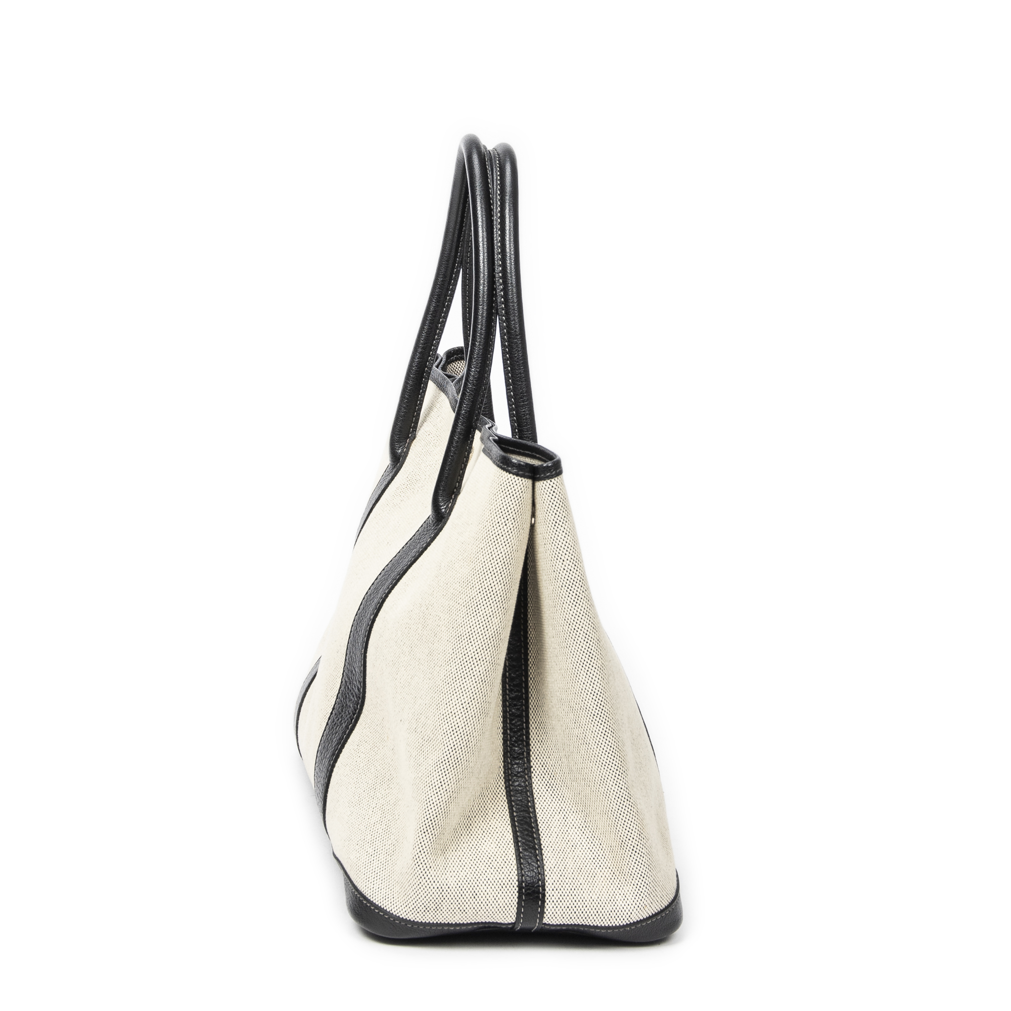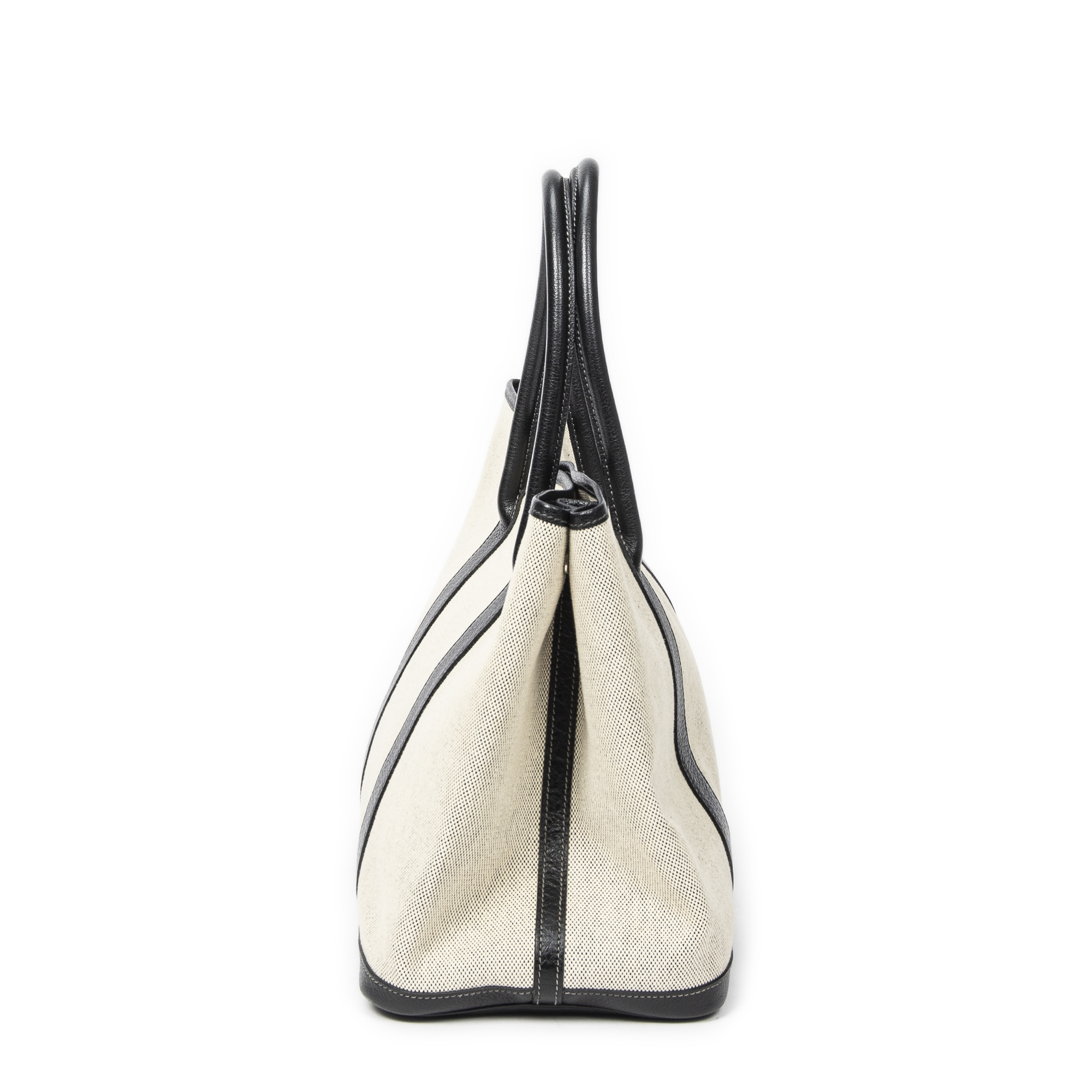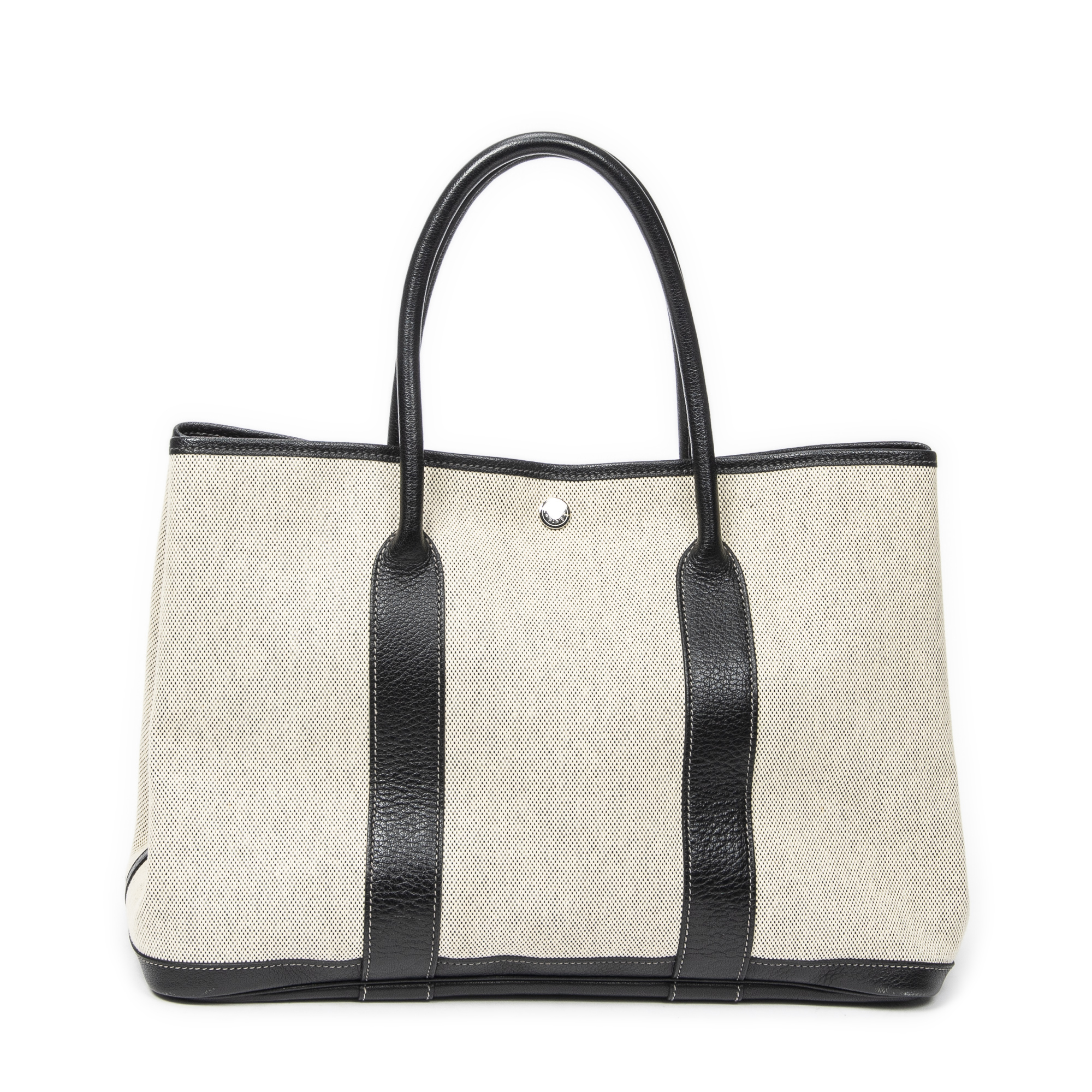 Hermès Sac à bandoulière Garden Party PM en Gris/Noir et Palladium. Le produit est en Excellent état (A).
