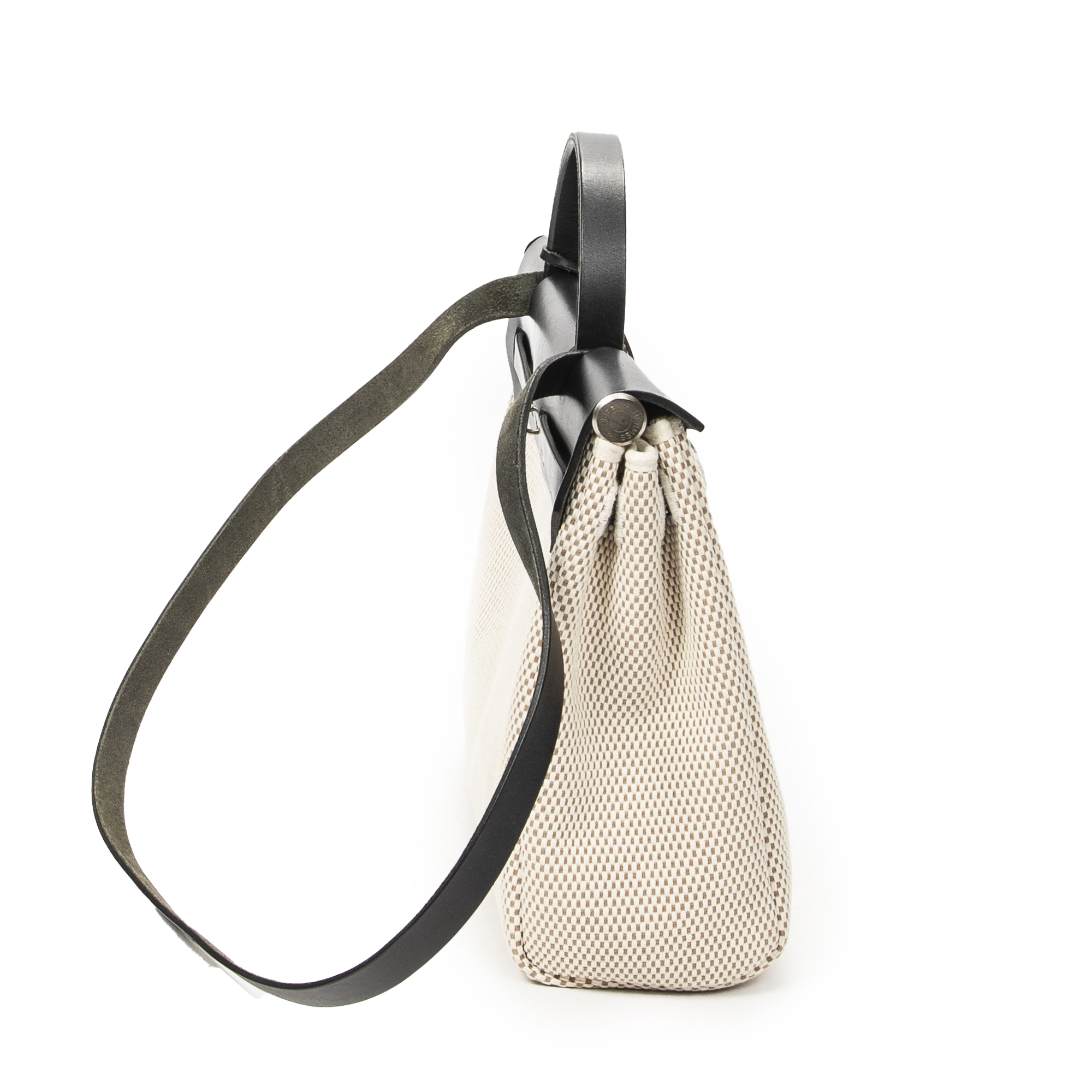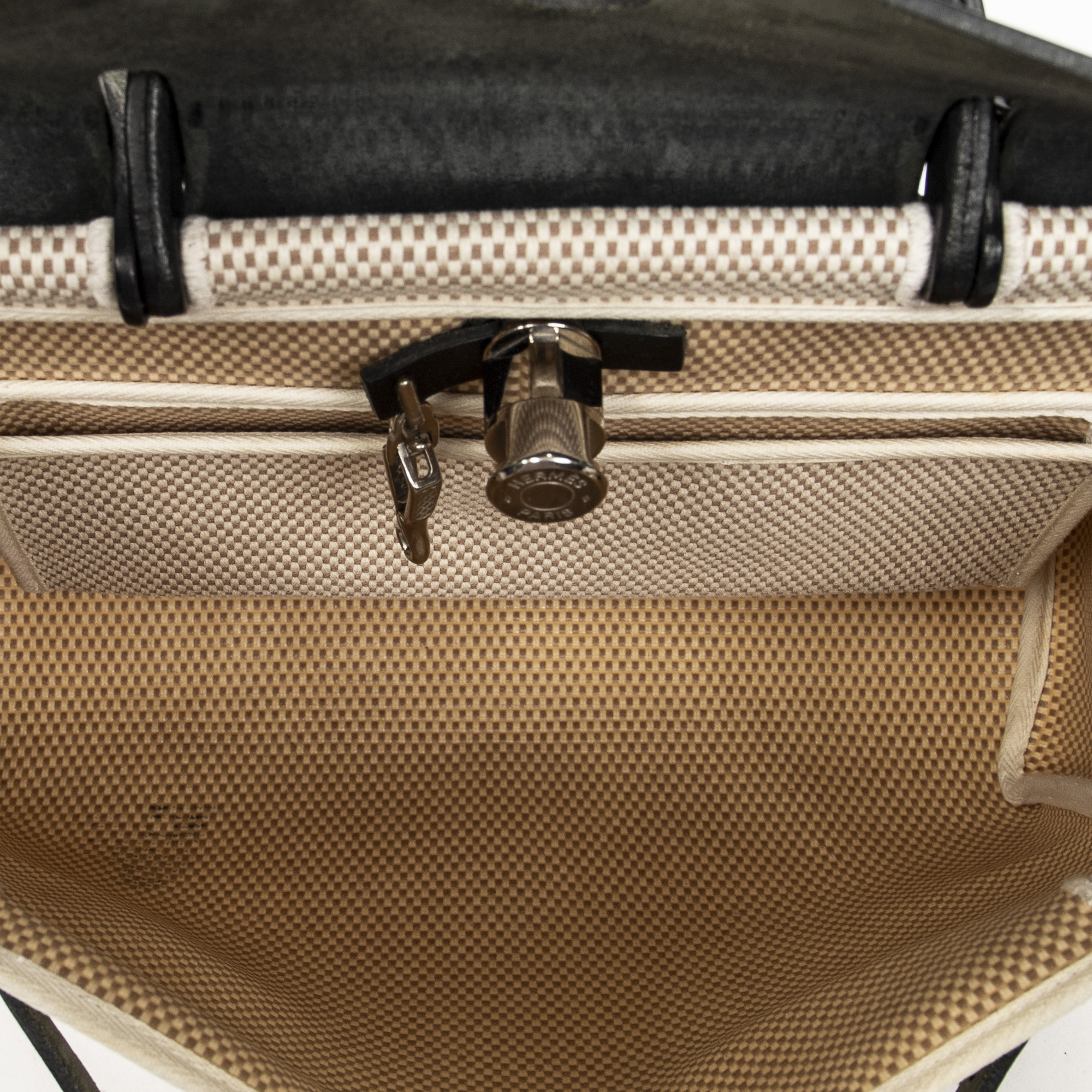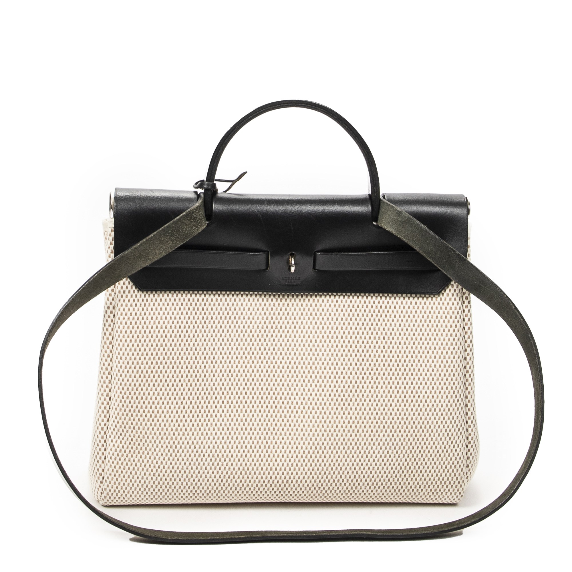 Hermès sac à bandoulière Herbag 2 in 1 PM en beige et Pallade. Le produit est en Excellent état (A).