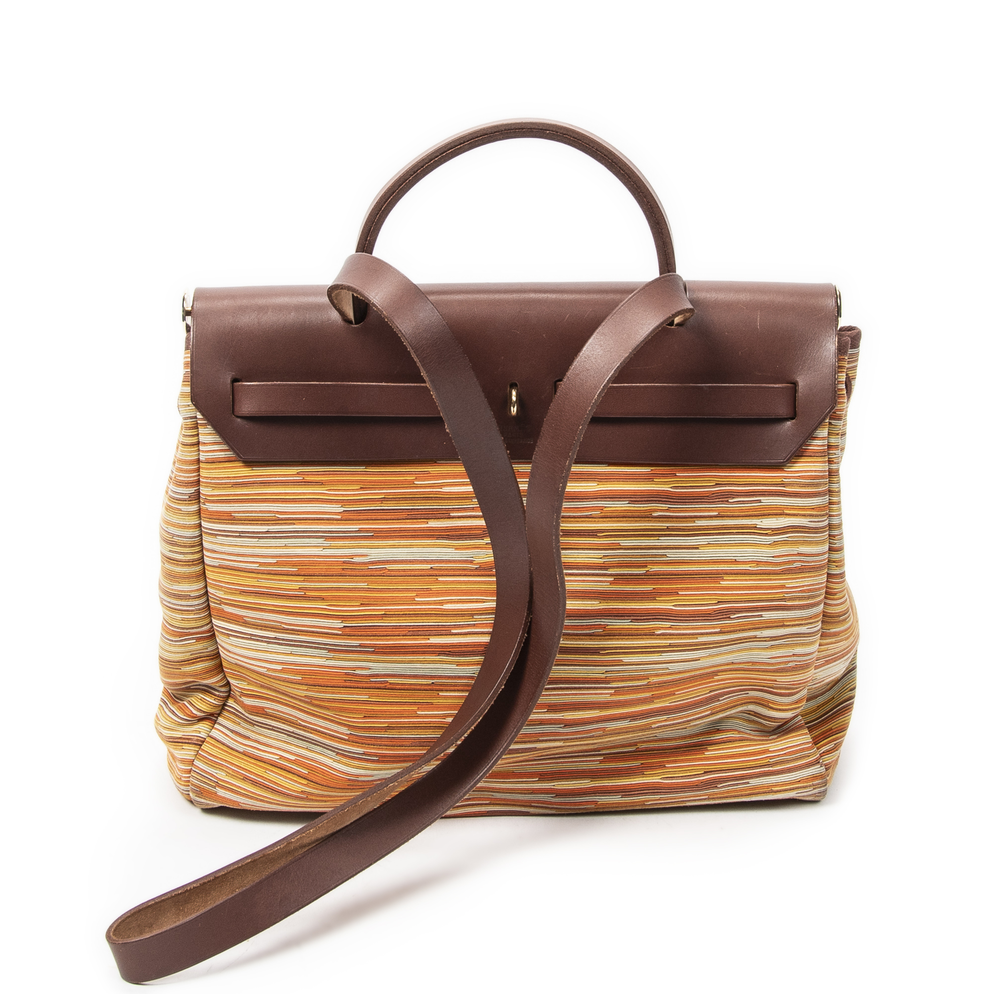 Hermès Sac à bandoulière Herbag 2 in 1 PM en Brown et Gold. Le produit est en Très Bon état (AB).