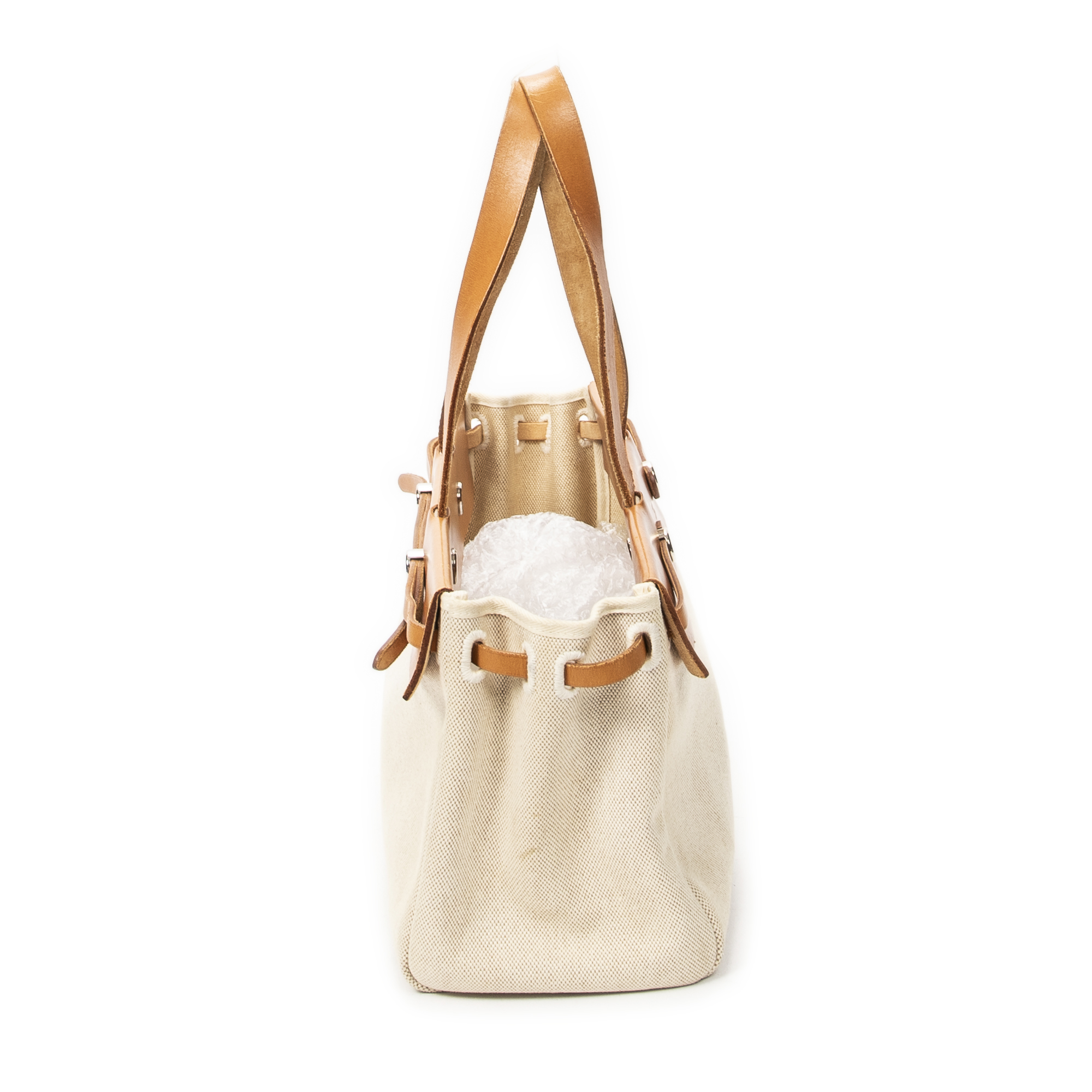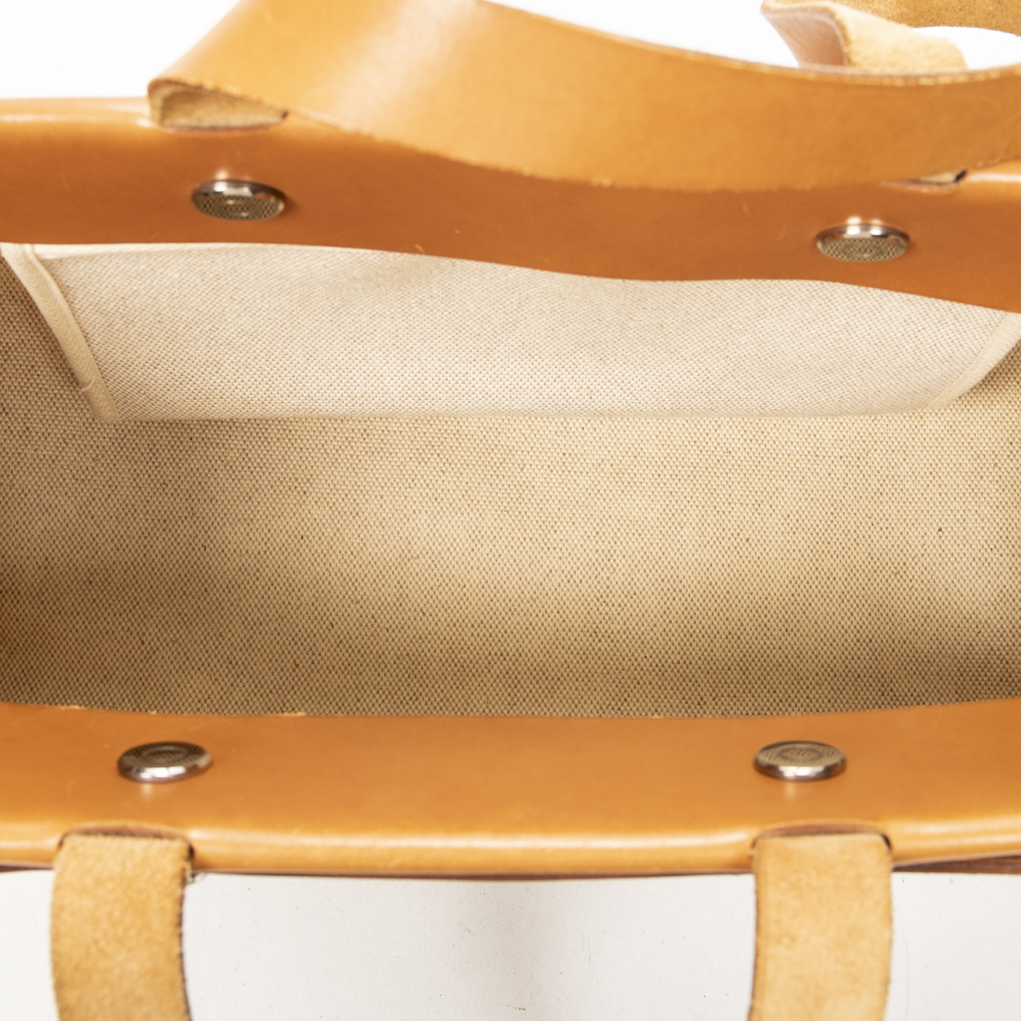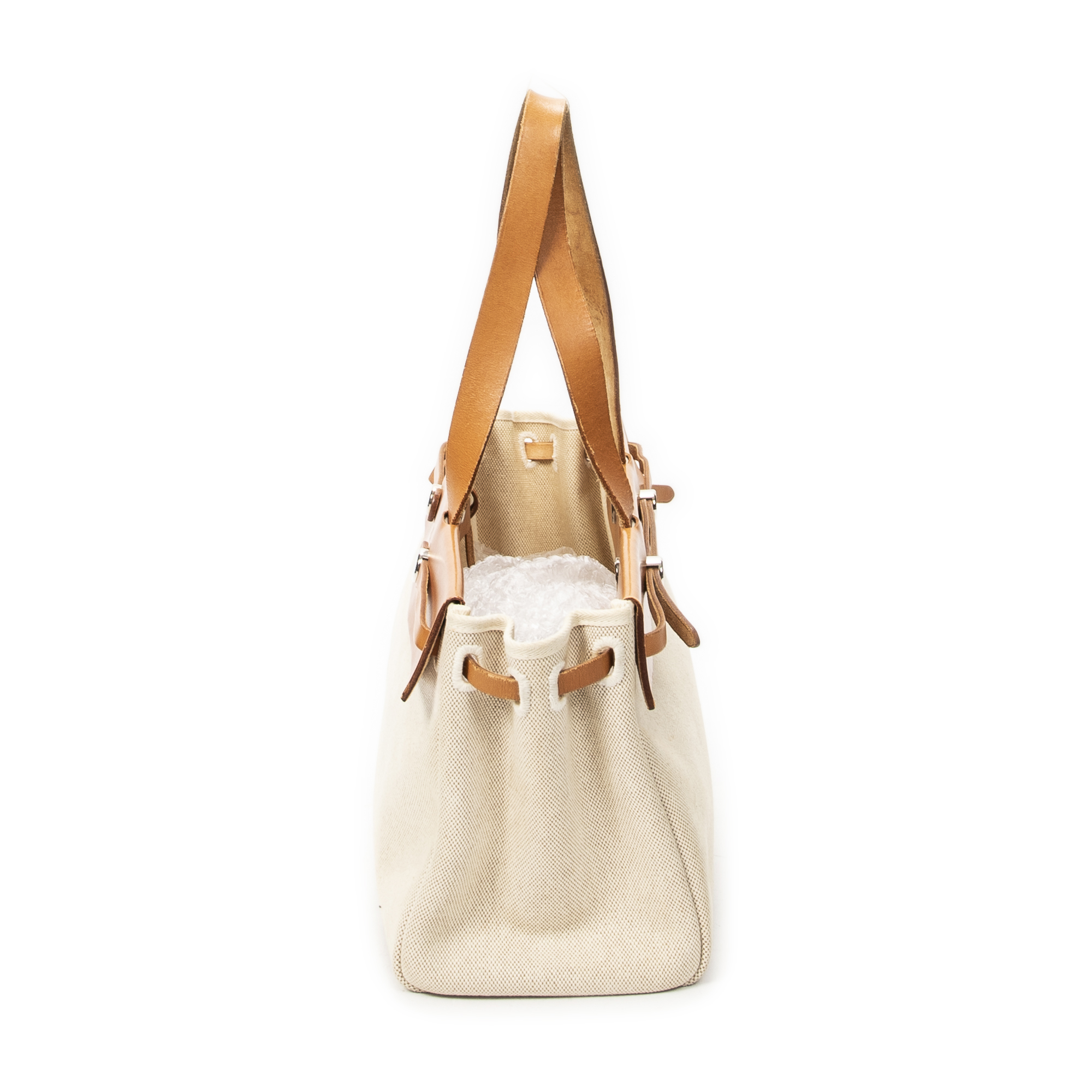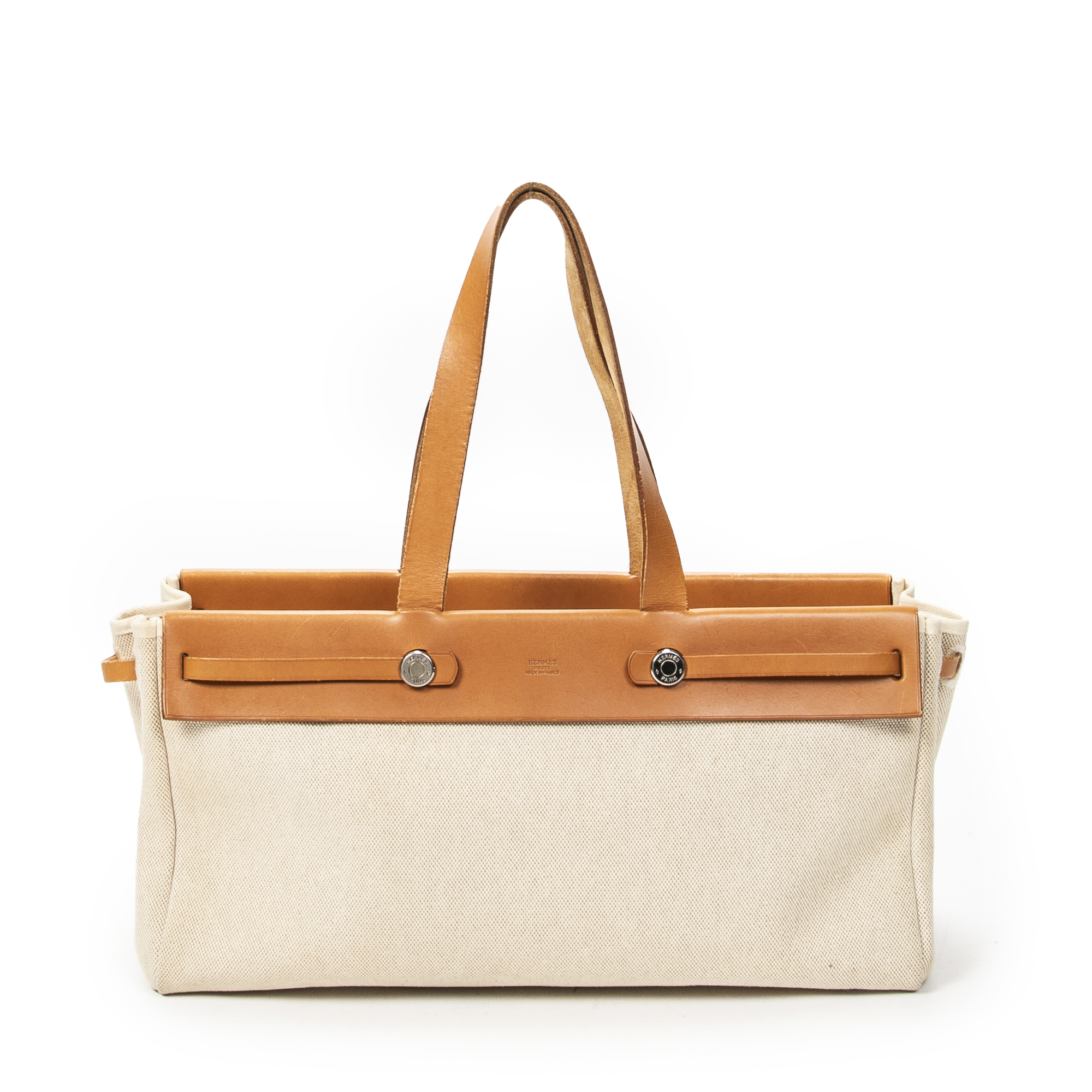 Hermès sac à bandoulière Herbag Cabas MM en beige et Pallade. Le produit est en Très Bon état (AB).