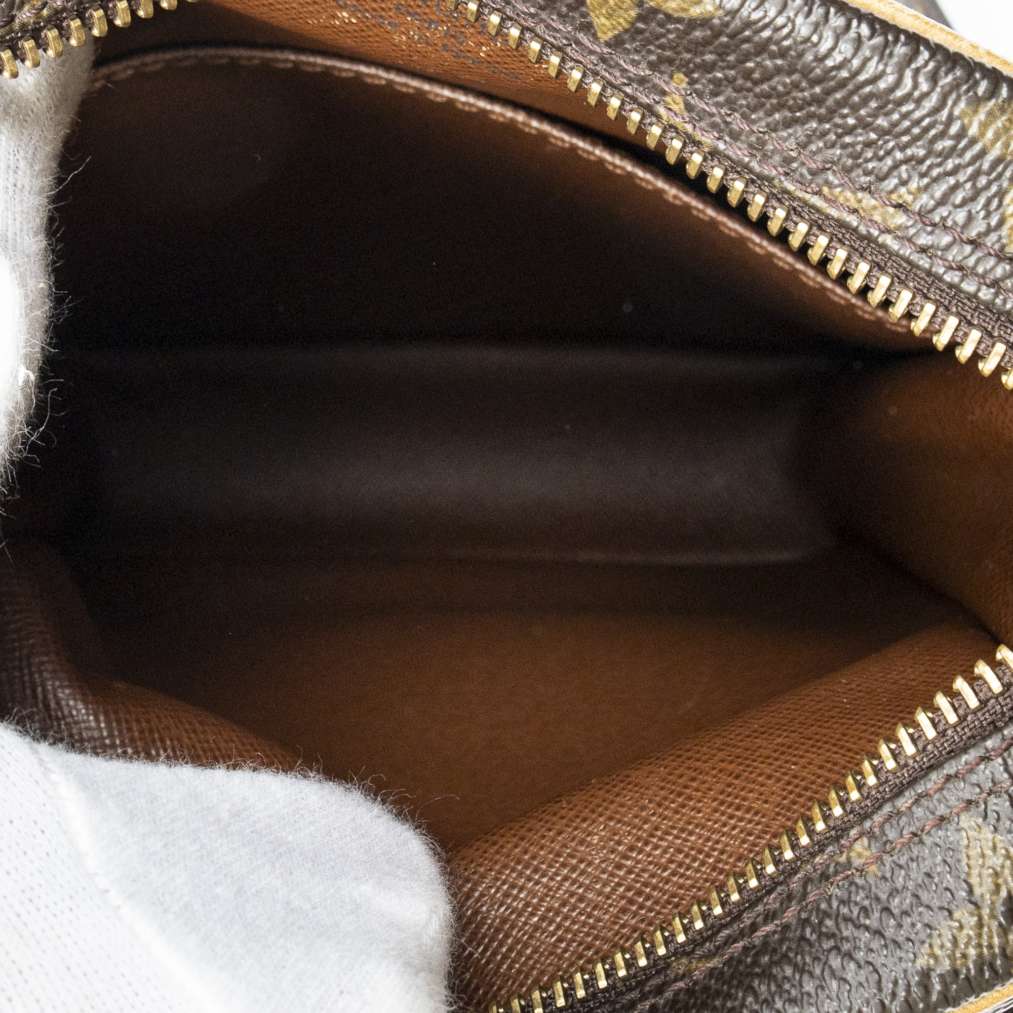 Louis Vuitton sac à bandoulière Amazone PM en brun et laiton doré. Le produit est en Excellent état (A).